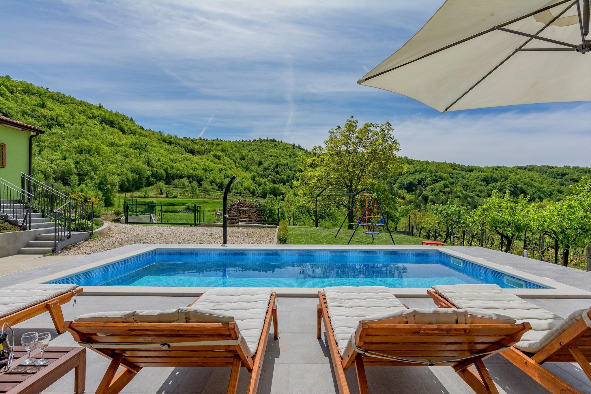 Dieses Apartment für sechs Gäste bietet einen ruhigen und haustierfreundlichen Rückzugsort in Cerovlje, umgeben von üppiger Landschaft und reichem Kulturerbe. Mit kostenlosem WLAN, einem Gemeinschaftspool und einem eingezäunten Garten ist dieser Aufenthalt ideal für Familien oder Gruppen, die Entspannung und Abenteuer suchen. Egal, ob Sie in der ruhigen Umgebung entspannen oder nahegelegene Sehenswürdigkeiten erkunden, dieses Zuhause garantiert ein komfortables und unvergessliches Erlebnis. Das Apartment verfügt über ein gemütliches Wohnzimmer mit Doppelschlafsofa, eine voll ausgestattete Küche mit Backofen, Mikrowelle und Geschirrspüler sowie zwei Schlafzimmer mit Doppelbetten. Das Badezimmer ist mit einer Waschmaschine ausgestattet und bietet somit Komfort für längere Aufenthalte. Klimaanlage, Grillplatz und Parkplätze am Haus machen das Apartment zur idealen Wahl für einen stressfreien Urlaub. Das nahe gelegene Dvorac Belaj bietet einen Einblick in Istriens aristokratische Vergangenheit, während Zarecki Krov, ein atemberaubender natürlicher Wasserfall, perfekt für Outdoor-Abenteuer ist. Für Abenteuerlustige bietet die Zip Line Pazinska Jama einen atemberaubenden Blick über Pazin. Zu den gastronomischen Einrichtungen gehören die Konoba Peron, bekannt für mediterrane Aromen, und die Konoba-Pizzeria Capo, die köstliche italienische Küche bietet. Ob Sie Geschichte erkunden oder lokale Köstlichkeiten genießen möchten – dieses Apartment ist der perfekte Rückzugsort.