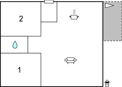 Badezimmer 5m2 (nr. 1) - WC. Warmes und kaltes Wasser. Dusche