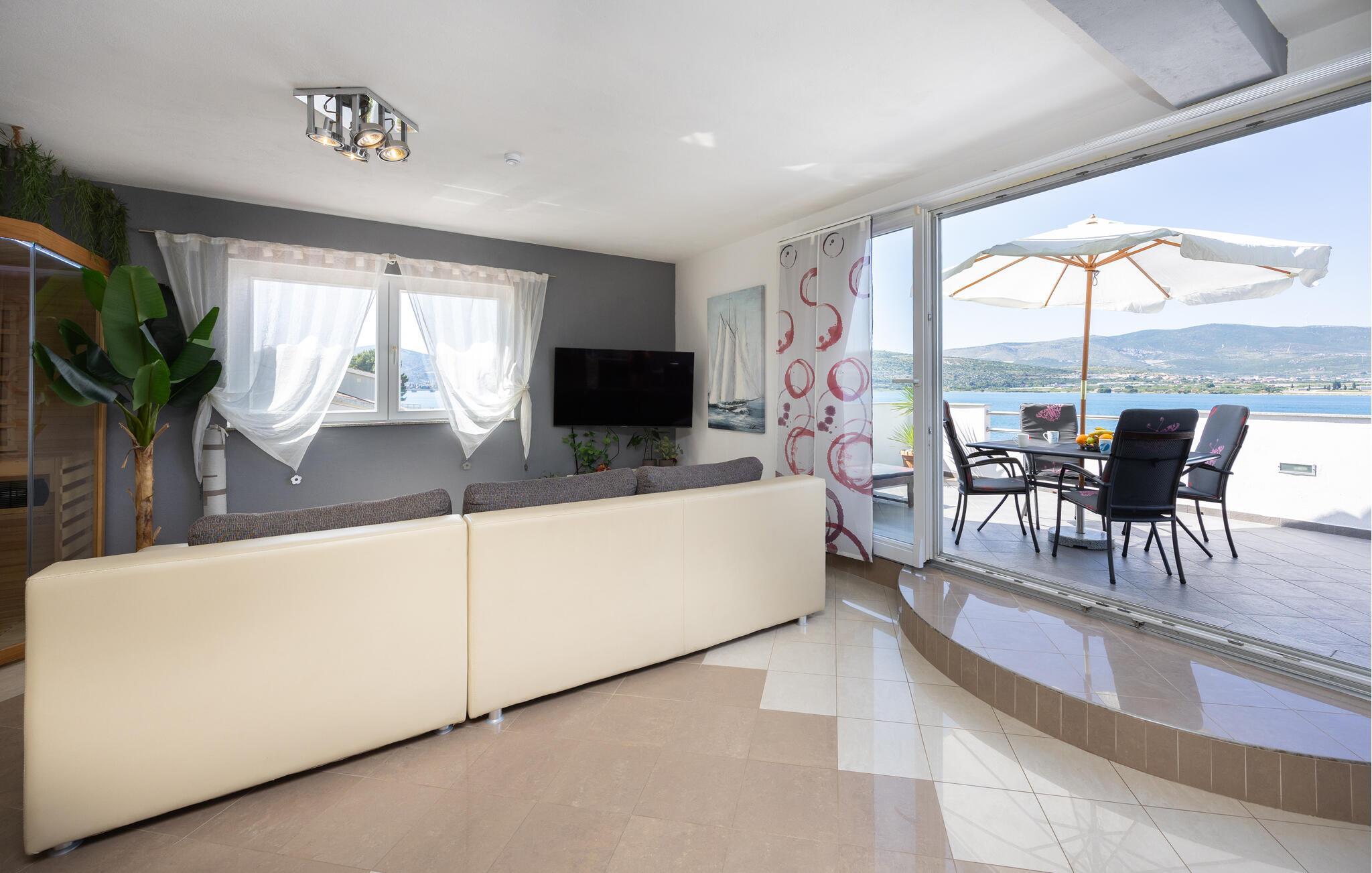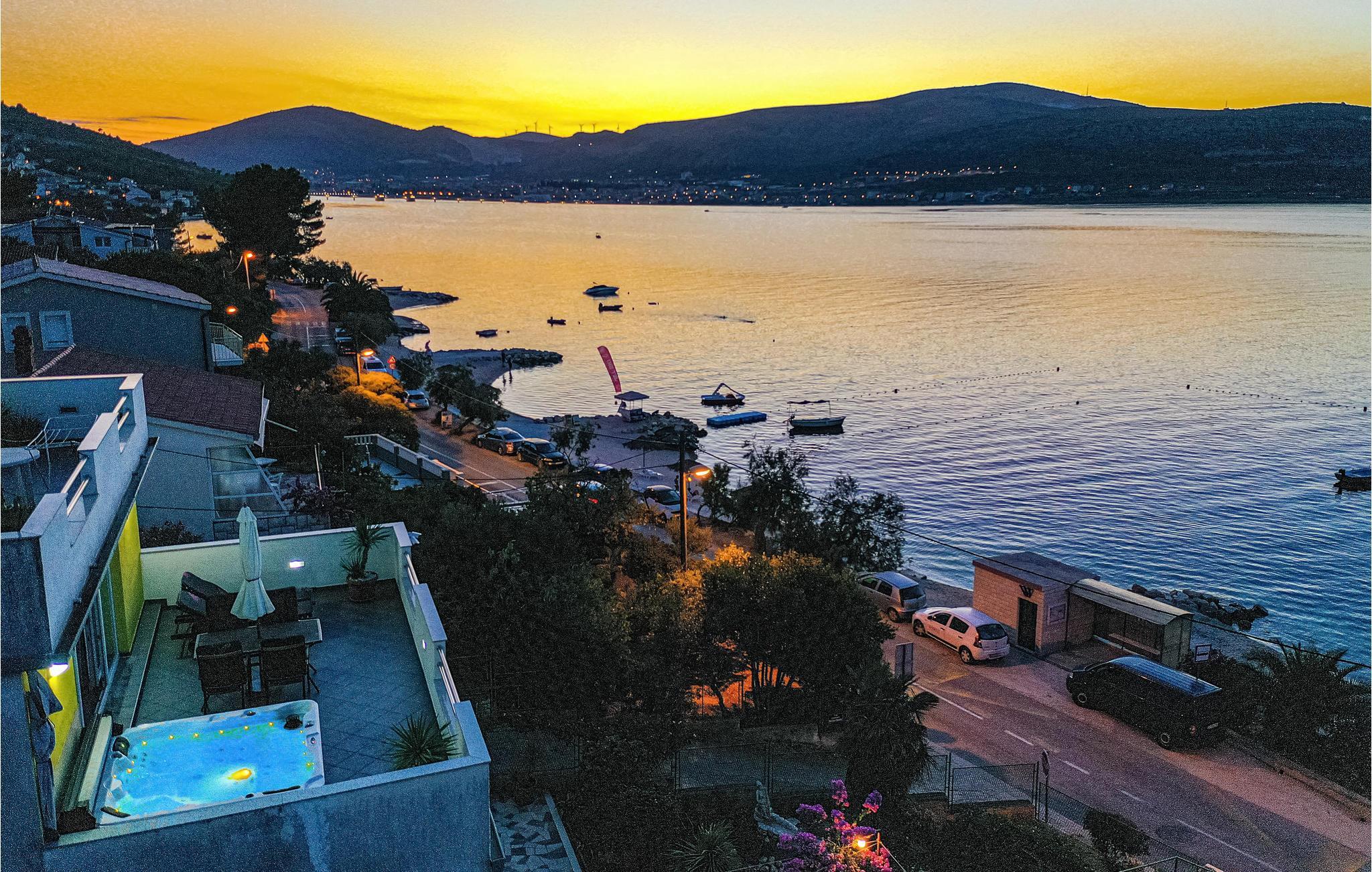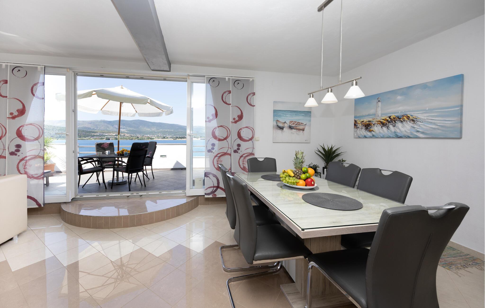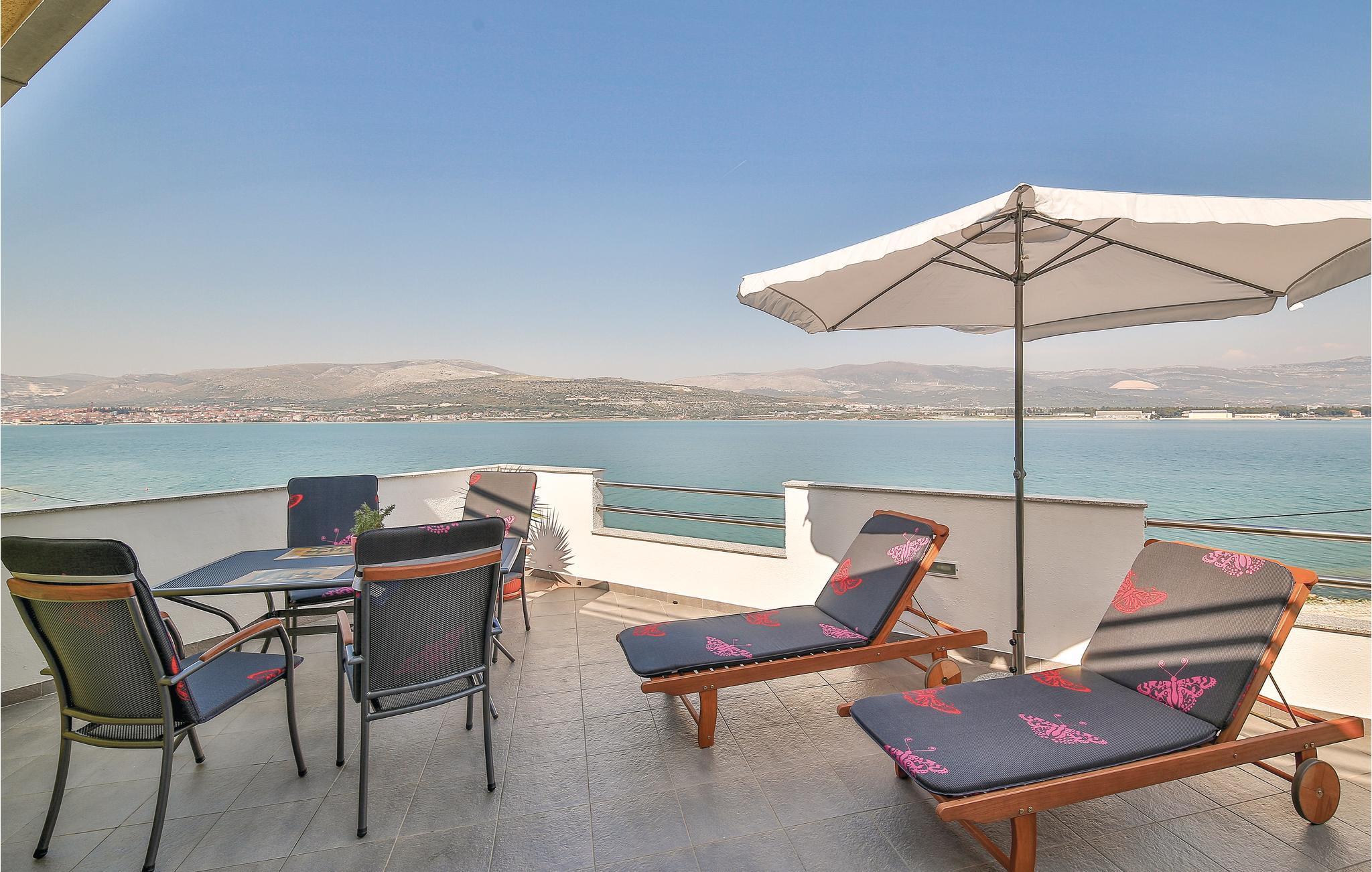 Verbringen Sie einen erholsamen Urlaub in dieser Ferienwohnung. Die Ferienwohnung befindet sich im zweiten Stock eines Mehrfamilienhauses und ist die einzige, die an Gäste vermietet wird. Die Wohnung ist modern eingerichtet und für bis zu vier Personen geeignet. Bereits, wenn Sie die Lokalstraße überqueren, sind Sie am Meer. Auf der großen Terrasse können Sie sich auf zwei Liegestühlen in absoluter Privatsphäre sonnen. Die Kulturstadt Trogir, wo auch das Nachtleben stattfindet, ist nur drei Kilometer entfernt und dort werden Sie auf jeden Fall eine Vielzahl von Aktivitäten für die ganze Familie finden.