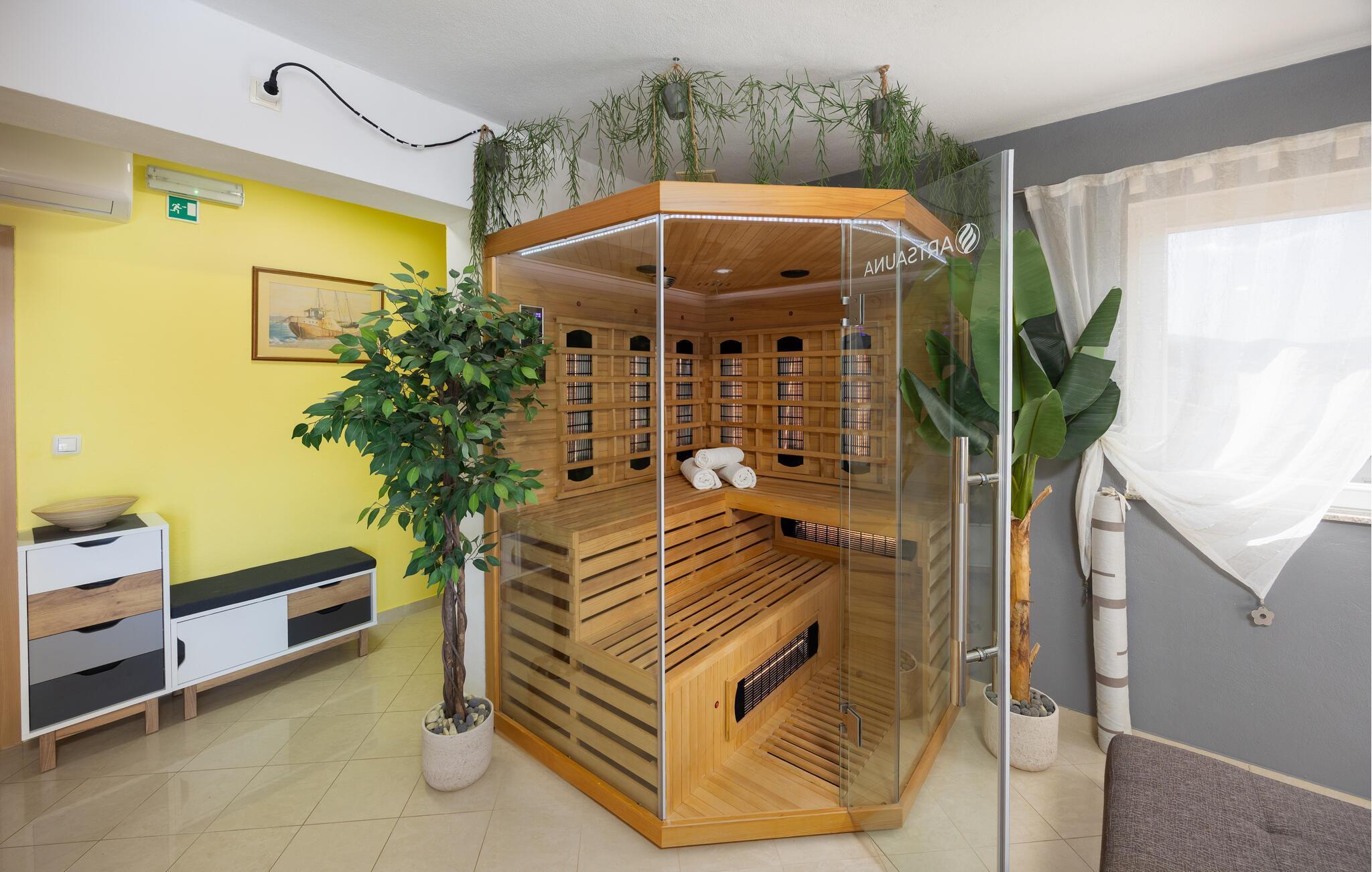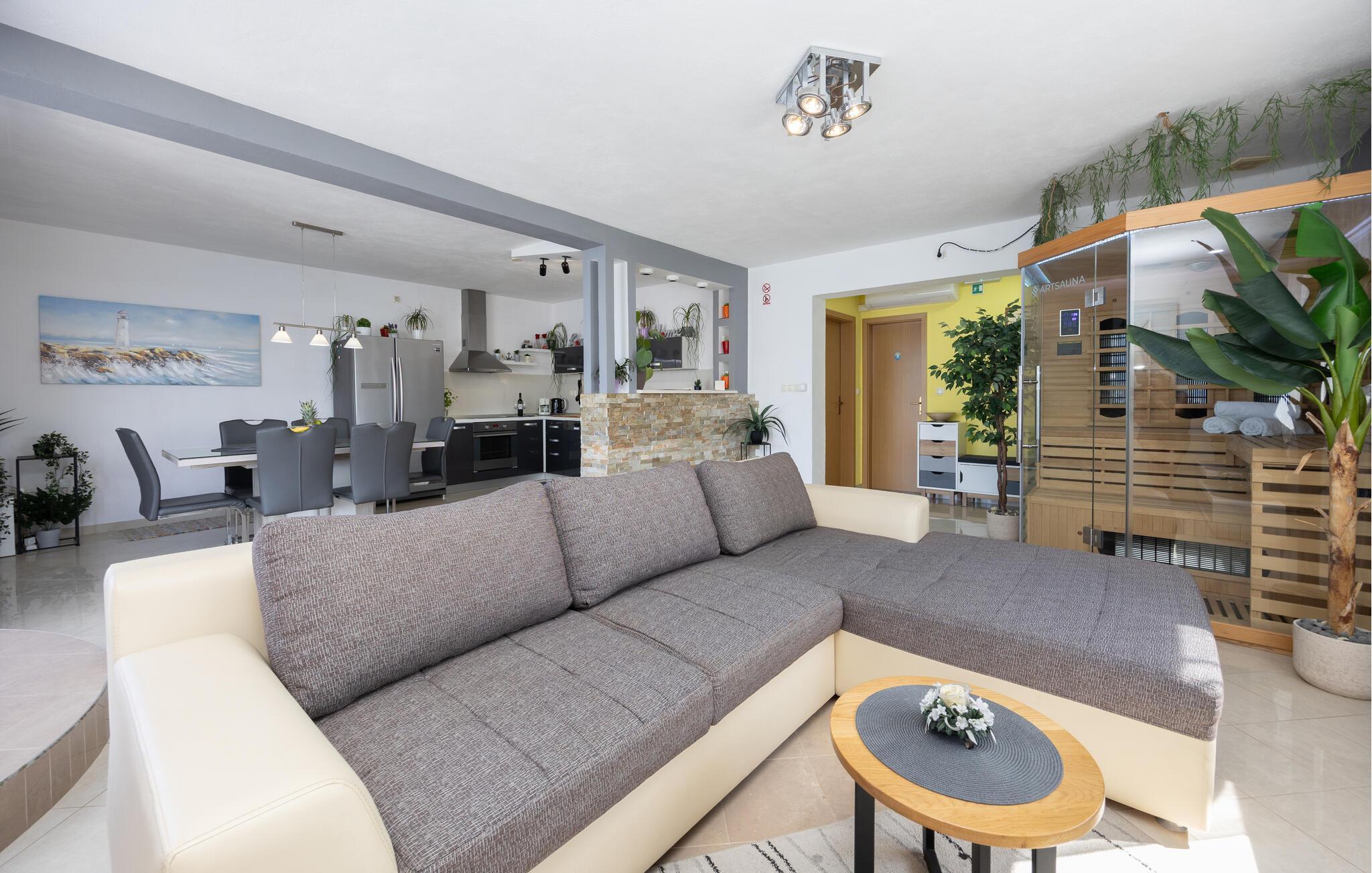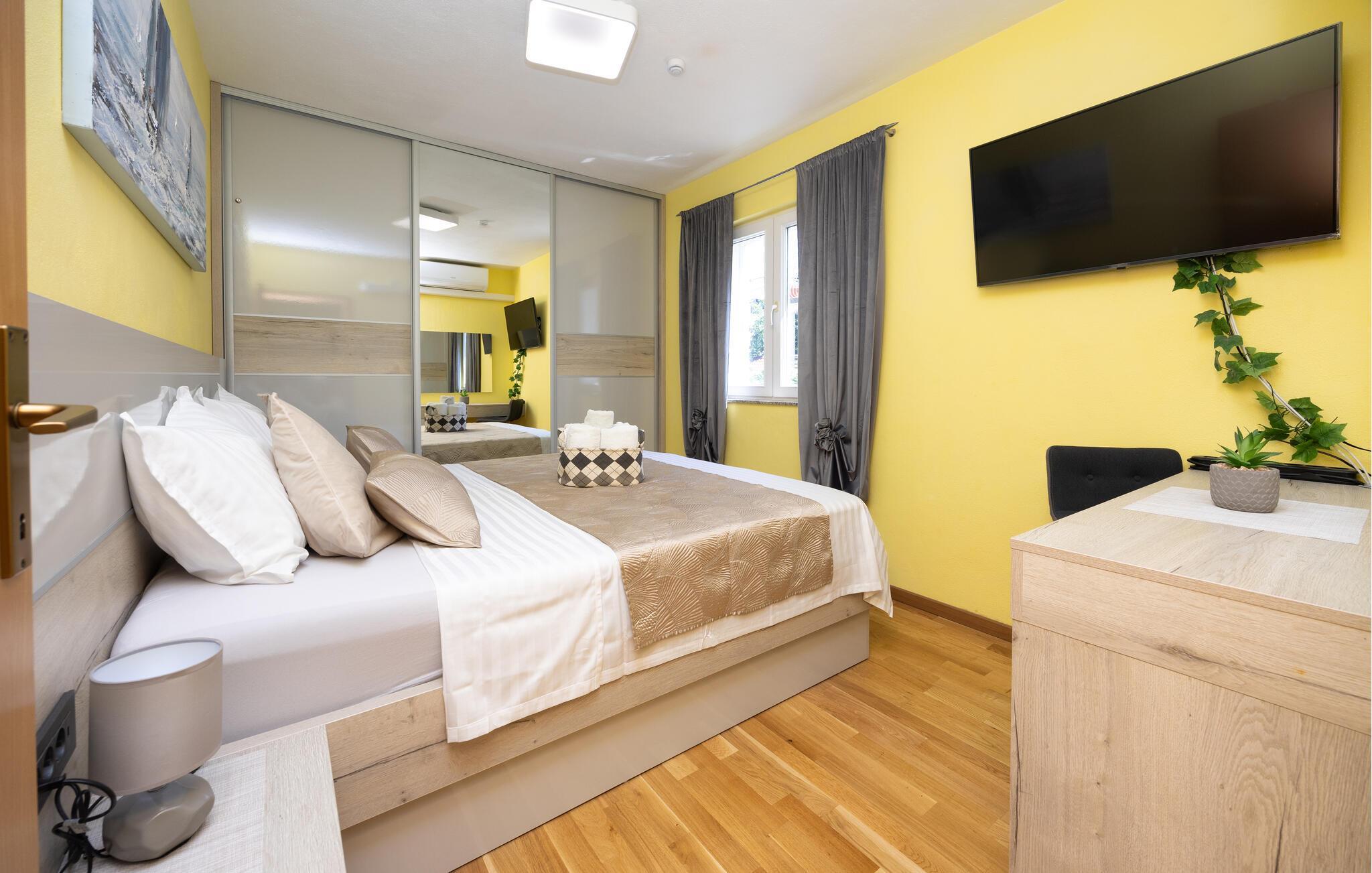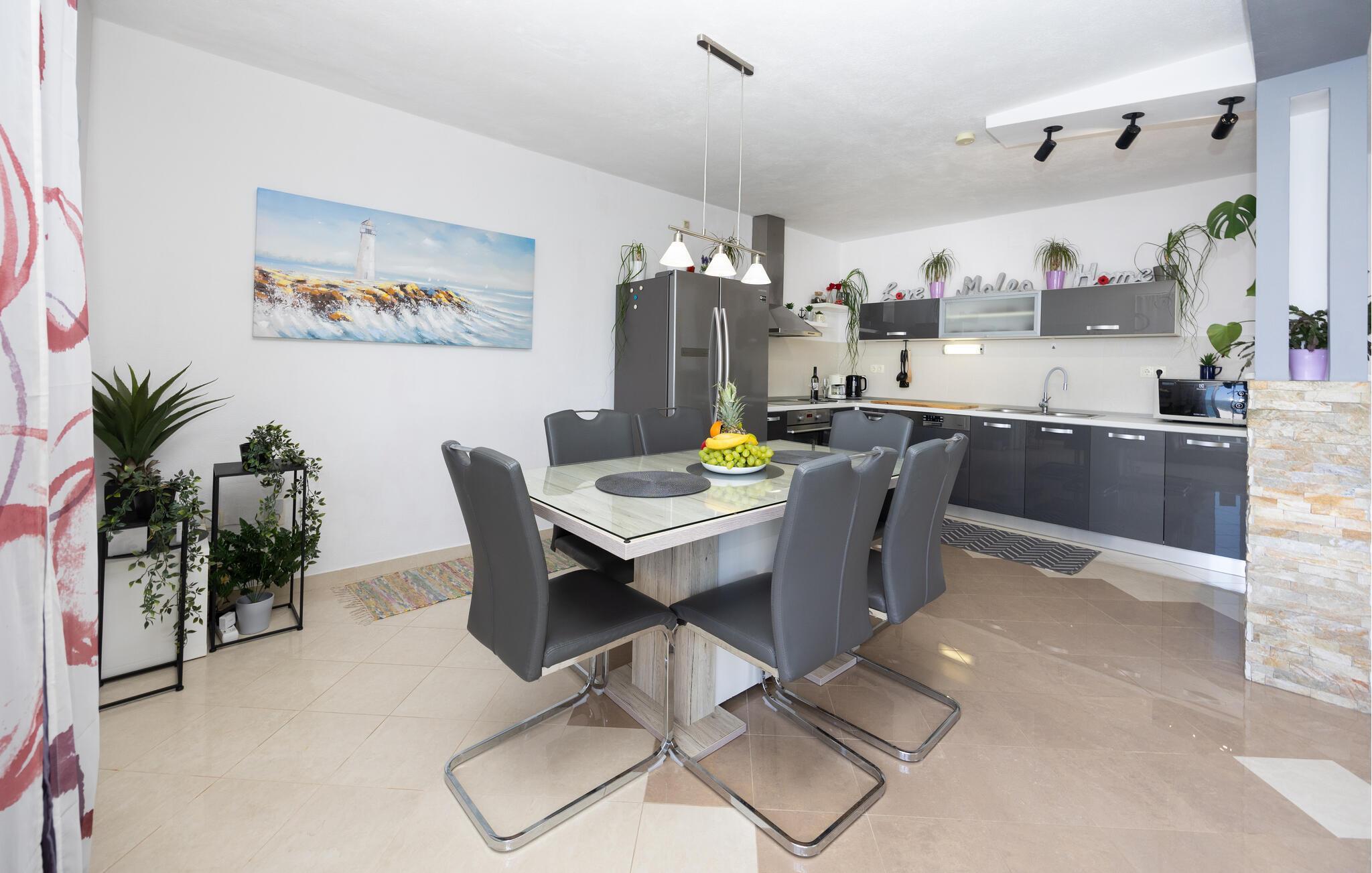 Verbringen Sie einen erholsamen Urlaub in dieser Ferienwohnung. Die Ferienwohnung befindet sich im zweiten Stock eines Mehrfamilienhauses und ist die einzige, die an Gäste vermietet wird. Die Wohnung ist modern eingerichtet und für bis zu vier Personen geeignet. Bereits, wenn Sie die Lokalstraße überqueren, sind Sie am Meer. Auf der großen Terrasse können Sie sich auf zwei Liegestühlen in absoluter Privatsphäre sonnen. Die Kulturstadt Trogir, wo auch das Nachtleben stattfindet, ist nur drei Kilometer entfernt und dort werden Sie auf jeden Fall eine Vielzahl von Aktivitäten für die ganze Familie finden.