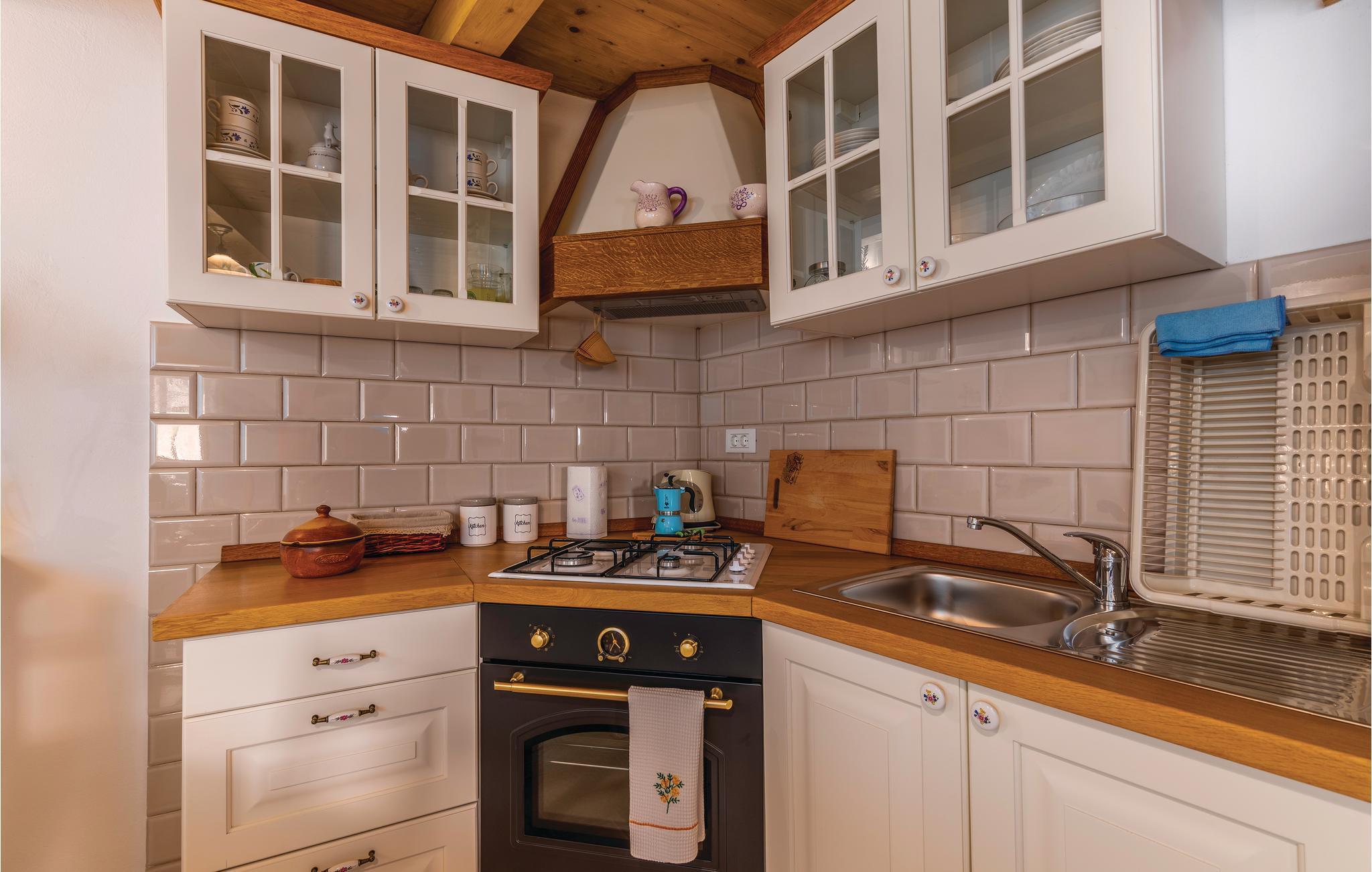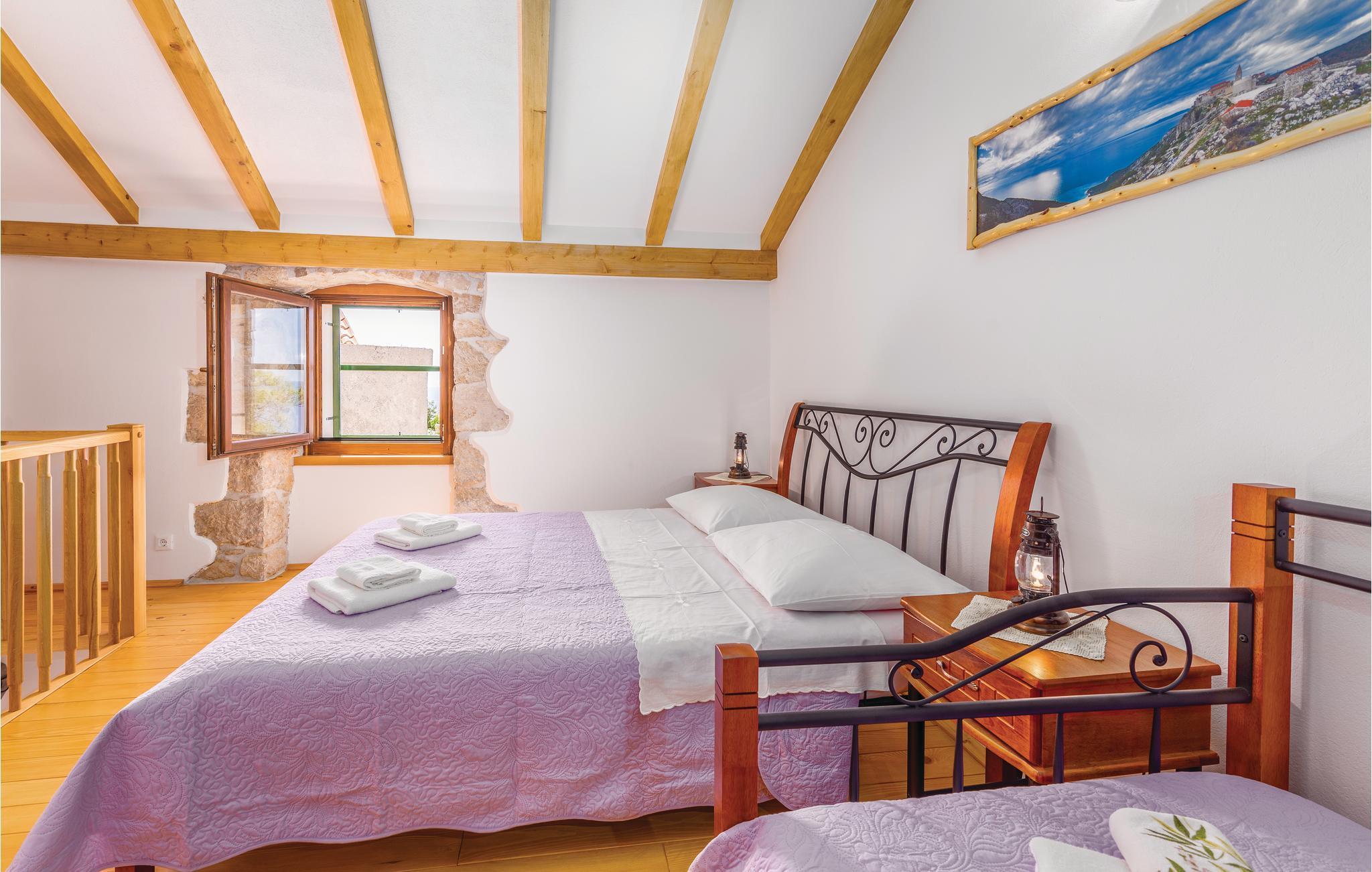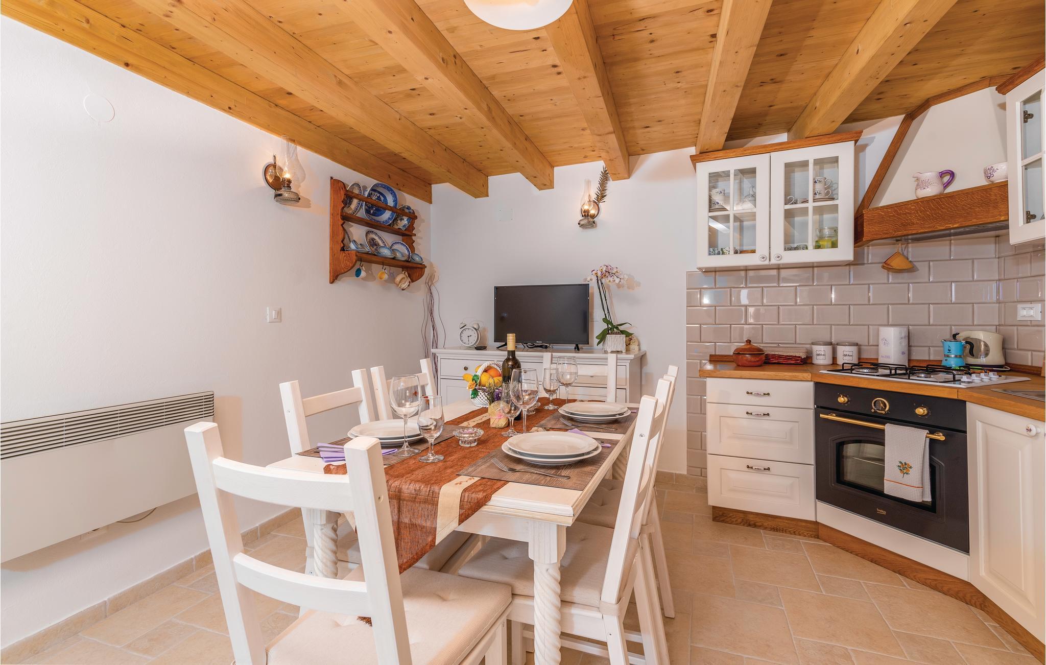 Das zauberhafte Dorf Lubenice auf Insel Cres liegt auf einer Anhöhe von 378 Metern über dem Meer. Dieses traditionell und liebevoll eingerichtete Reihenhaus mit Panoramaaussicht auf das Meer erstreckt sich vom Erdgeschoss zum Dachgeschoss mit offenem Schlafboden, wo sich ein Einzelbett und ein Doppelbett befinden. Dieses Ferienhaus eignet sich perfekt für Aktivurlauber und Naturliebhaber, da die Umgebung natürlich und vielfältig ist. An der Küste können Sie den Sveti Ivan Kiesstrand sehen, der sehr berühmt ist, jedoch schwer erreichbar. Sie können Ihn zu Fuß über einen steilen Pfad erreichen aber einfacher geht es mit einem Boot von der Meerseite. Die Mindesthöhe der Decke im Schlafzimmer im Obergeschoss beträgt ca.100 cm.