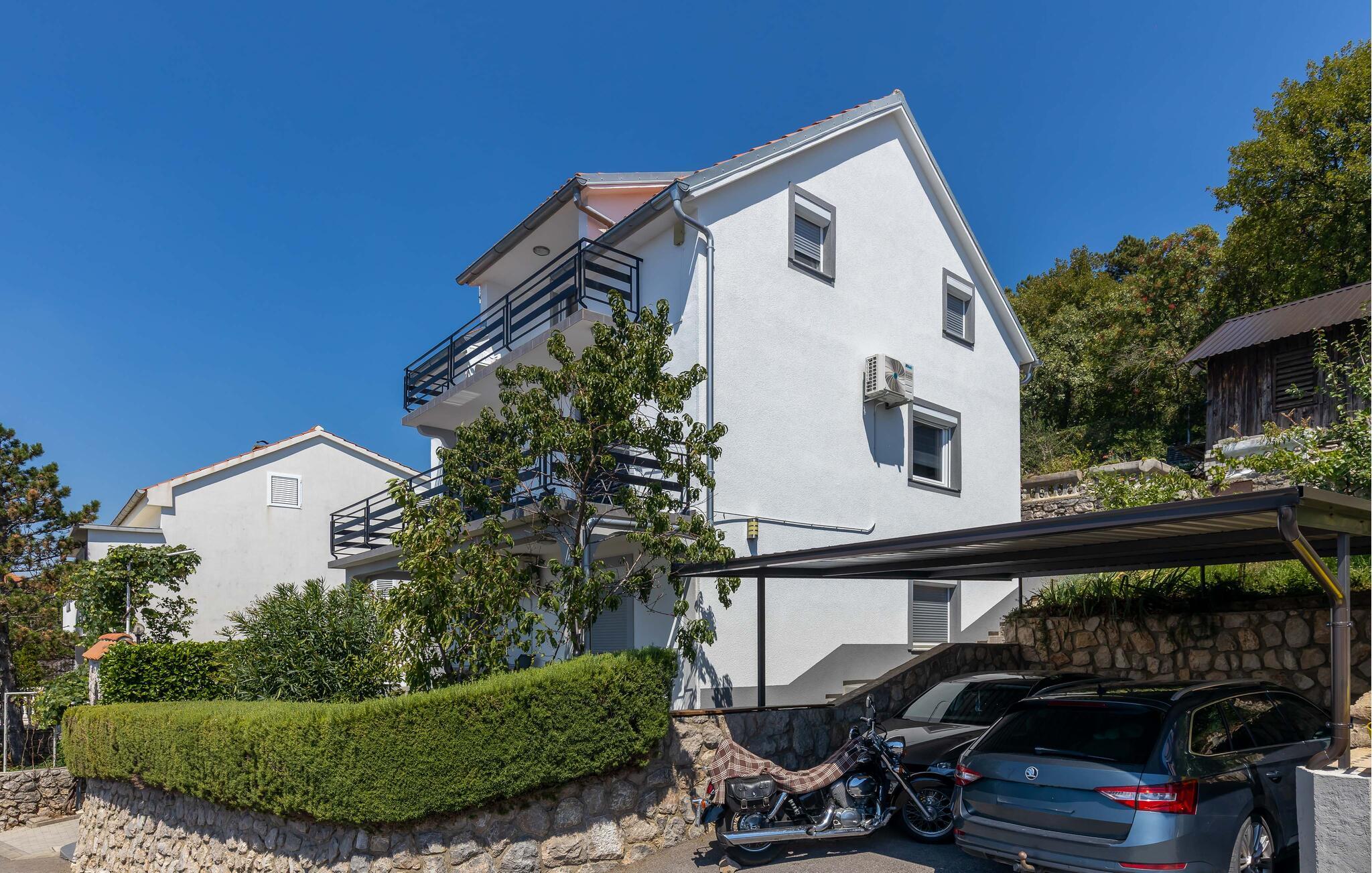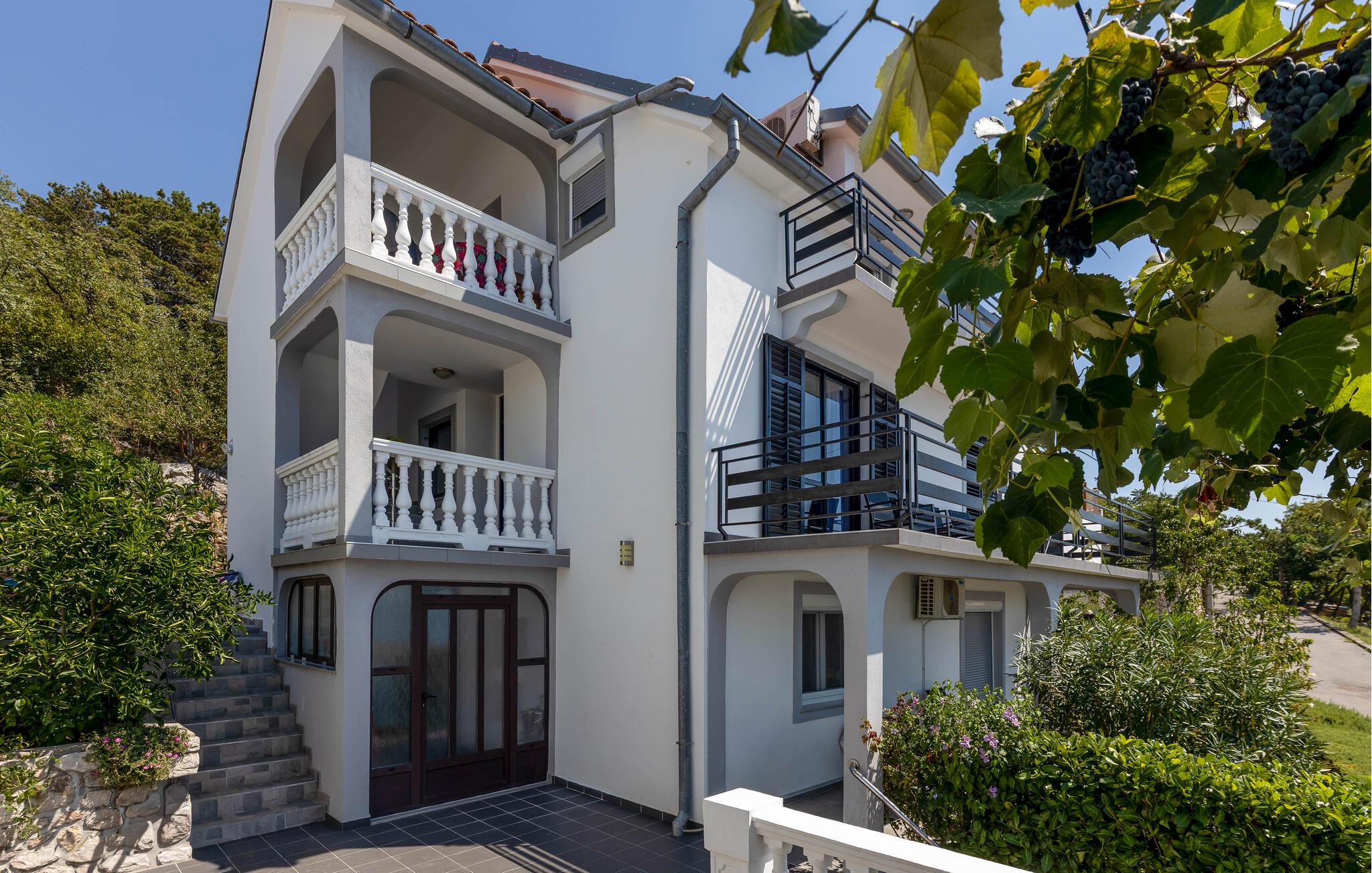 Diese zwei Ferienwohnungen befinden sich in der kleinen Ortschaft Dramalj, welche an der Riviera von Crikvenica liegt. Im Haus, in dem auch der Hauseigentümer wohnt, befindet sich auf jeder Etage eine Wohnung. Die Ferienwohnung im 1. Stock hat eine schöne Aussicht, die Erdgeschoßwohnung ist umgeben vom Garten. Besuchen Sie in der Nähe den Sandstrand Crikvenicas, wo viele Freizeitmöglichkeiten für einen angenehmen Urlaub sorgen. Wir empfehlen Ihnen Ausflüge auf die Insel Krk und Novi Vinodolski. Naturliebhaber werden sicherlich die Nationalparks Risnjak und Plitwitzer Seen besuchen.