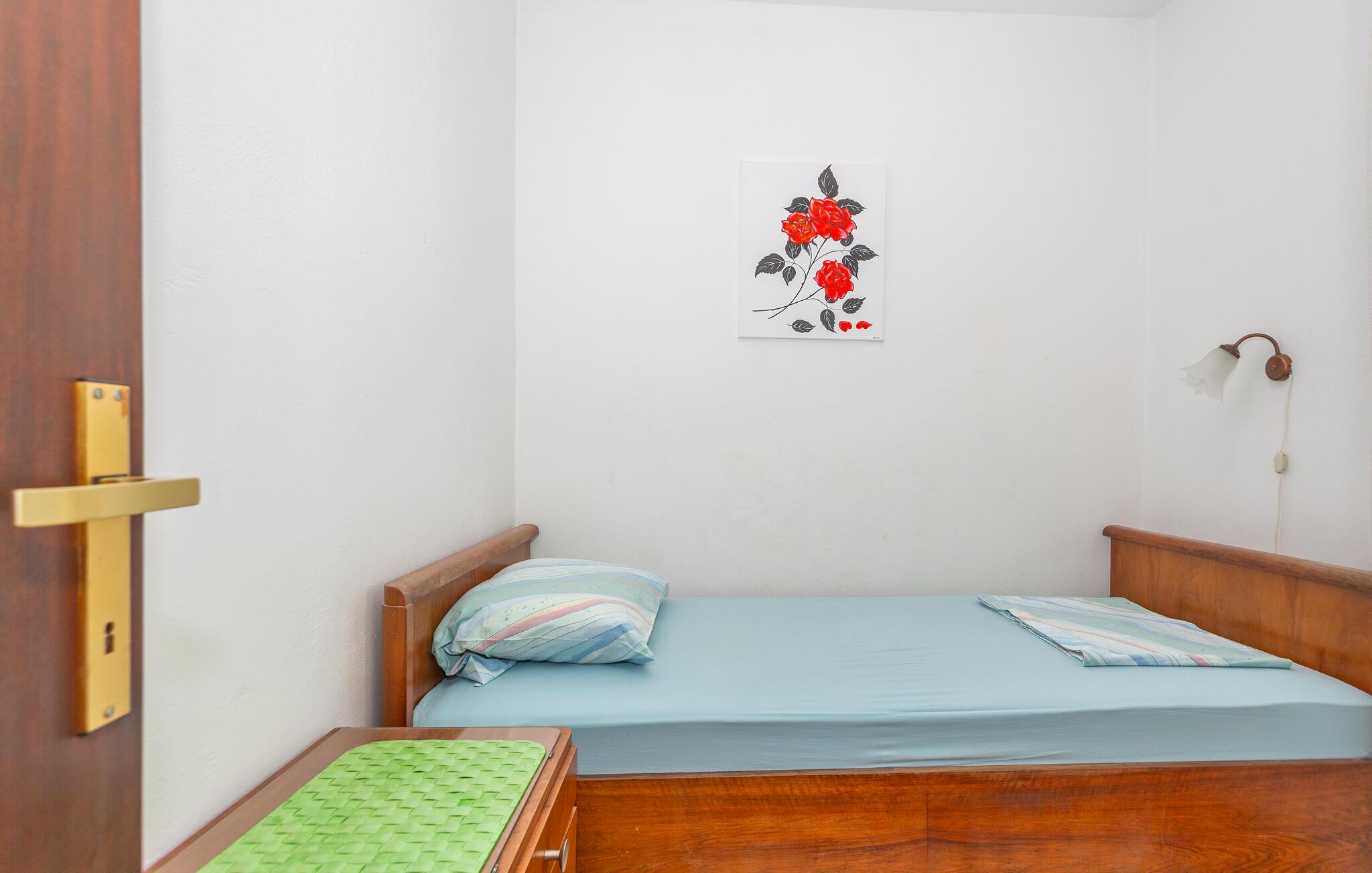In einem kleinen Apartmenthaus mit mehreren Ferienwohnungen empfängt Sie diese praktische Ferienwohnung. Die Wohnungen bieten Platz für Paare sowie große und kleine Familien. Ebenso finden Sie hier alles vor, was Sie zum Entspannen und Wohlfühlen brauchen. Einfacher Komfort und ein schöner Balkon, mit Blick auf die Kvarner Bucht schaffen einen gelungenen Rahmen. Sie können auch im Gemeinschaftsgarten auf der Terrasse entspannen und sich sonnen und mit anderen Gästen ins Gespräch kommen.