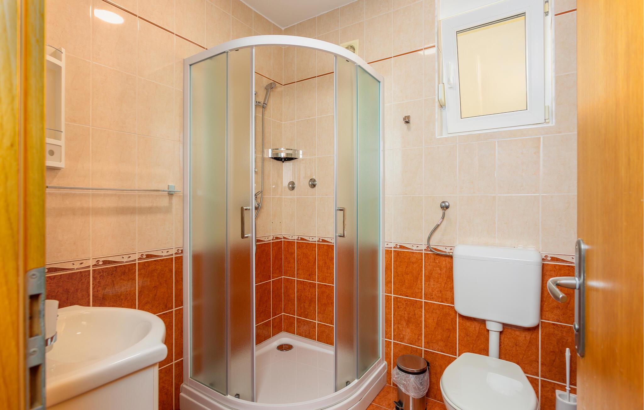 - WC mit warmem und kaltem Wasser, Dusche