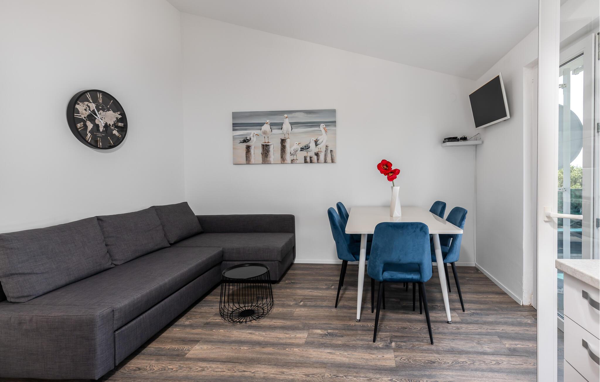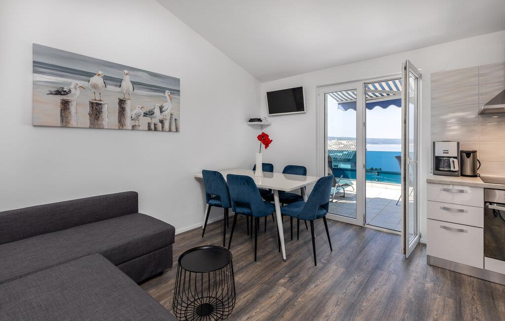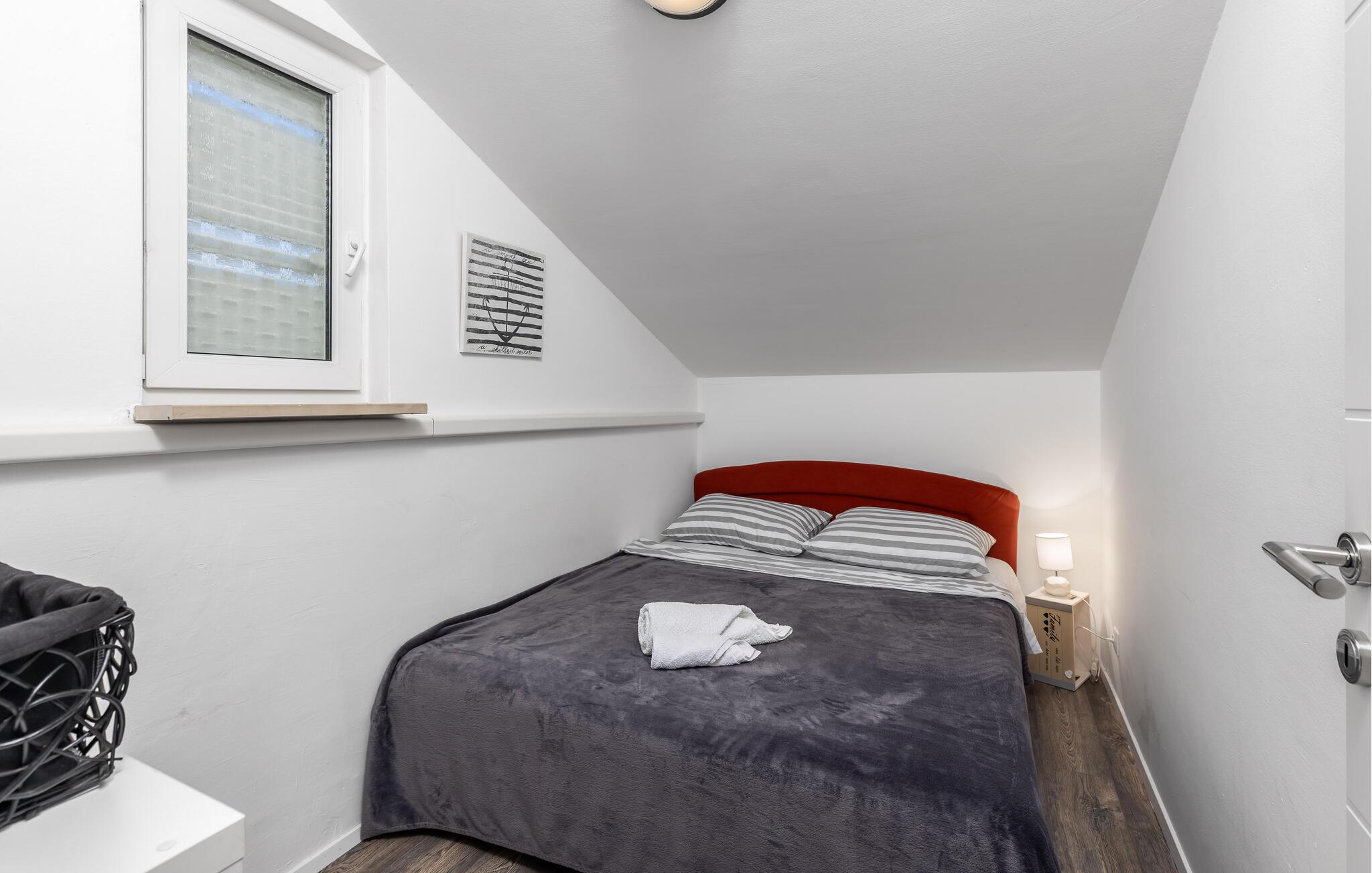 Im charmanten Ort Dramalj in der Nähe von Crikvenica, der durch eine schöne Promenade am Meer entlang mit dem Nachbarort verbunden ist, liegt diese schöne Ferienwohnung im 2. Stock. Die Dachschräge geht bis auf 140 cm. Genießen Sie den Panoramablick aufs Meer vom großen Balkon aus und relaxen Sie auf der hinteren Terrasse. Der nette Hauseigentümer wird Ihnen die Strände, Supermärkte und Restaurants in der Nähe zeigen. Die Riviera von Crikvenica bietet Ihnen zahlreiche Gelegenheiten Ihren Urlaub mit Sport und Unterhaltung zu füllen, auch Geschichte können Sie hier entdecken.