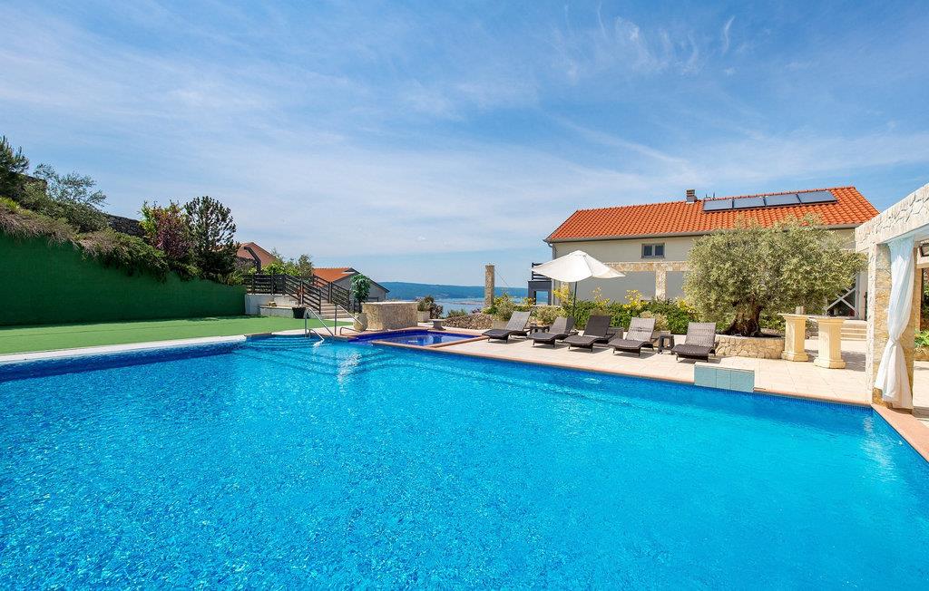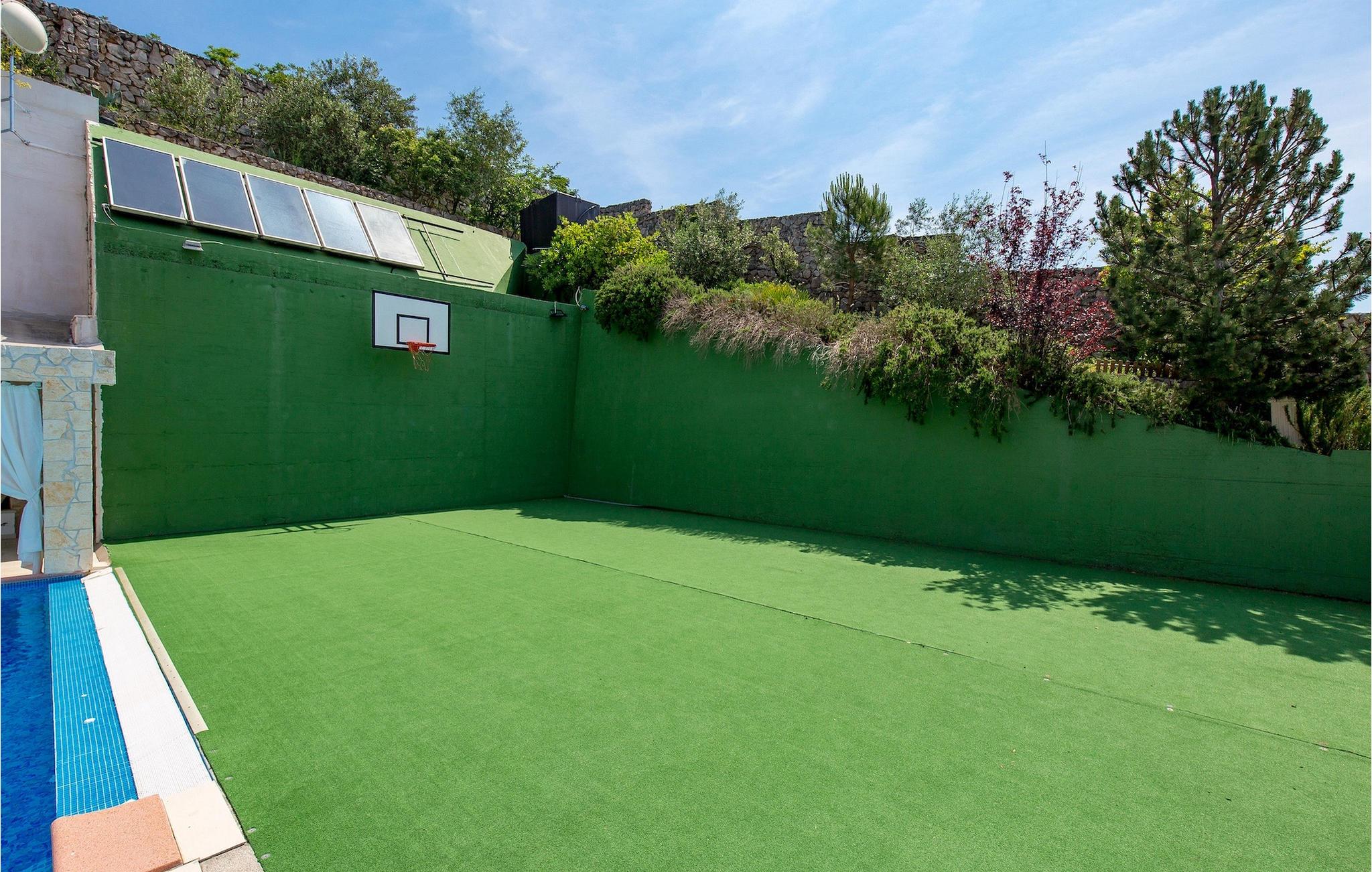 Diese luxuriöse Villa ist zur Unterbringung von 18 Personen geeignet, mit insgesamt 9 Schlafzimmern, 4 Badezimmern und 4 komplett ausgestatteten Küchen, was sie zur idealen Wahl für große Familien und Gruppen von Freunden macht. Es ist fast unmöglich, in dieser luxuriösen Villa nicht einen Raum nach eigenem Geschmack zu finden. Im Innenraum kombinierte man minimalistische und moderne Einrichtung mit bunten Details und gemütlicher und warmer Familienatmosphäre. Der große und sorgfältig gepflegte Garten ist mit einem einladenden privaten Pool und 10 Liegestühlen ausgestattet, wo Sie Ihren entspannenden Urlaub verbringen können. Die Villa ist perfekt für diejenigen, die einen prächtigen Lebensstil bevorzugen, weswegen Sie auch einen Jacuzzi im Garten nutzen können. Der Pool ist teilweise von einer geräumigen Terrasse mit Grill und einem Essbereich für 22 Personen umgeben. Für Sportbegeisterte gibt es einen Basketballplatz. Kochservice, sowie Massageservice sind auf Anfrage gegen Aufpreis verfügbar. Die Eigentümer der Villa bieten ihren Gästen kostenlose erste Zahnarzttermine in ihrer Praxis und VIP-Schönheitstermine in ihren Schönheitssalons an - für alle Einzelheiten wenden Sie sich bitte vor Ihrer Ankunft an die Eigentümer.
