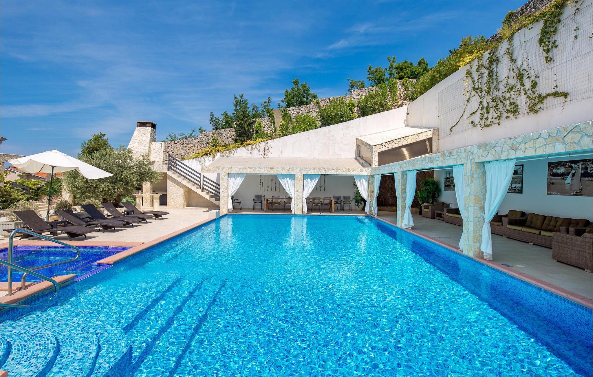 Lassen Sie sich von der Villa Kalmar verwöhnen und verbringen Sie einen wunderbaren Urlaub in Kroatien.Dramalj ist ein kleines Dorf an der kroatischen Küste in der Kvarner Bucht. Es ist nur eine kurze Autofahrt vom bekannten touristischen Ferienort Crikvenica entfernt. Einer der größten mitteleuropäischen Häfen, sowie die drittgrößte kroatische Stadt Rijeka liegt nur 30 km von Dramalj entfernt. Die Stadt Rijeka ist bekannt für ihr langes historisches und kulturelles Erbe, zahlreiche Restaurants, Cafés, Clubs, Bars und Veranstaltungen. Erleben Sie die Stimmung der Stadt bei einem Spaziergang entlang dem Korzo, erkunden Sie die Altstadt und besuchen Sie die Wallfahrtskirche in Trsat auf einem Hügel über der Stadt. Sie sollten auf jeden Fall dem Karneval in Rijeka, dem fünftgrößten Karneval weltweit, einen Besuch abstatten! Der Flughafen Rijeka befindet sich auf der Insel Krk, nur eine kurze Autofahrt von Dramalj. Der nächste Strand ist zu Fuß von der Villa zu erreichen.