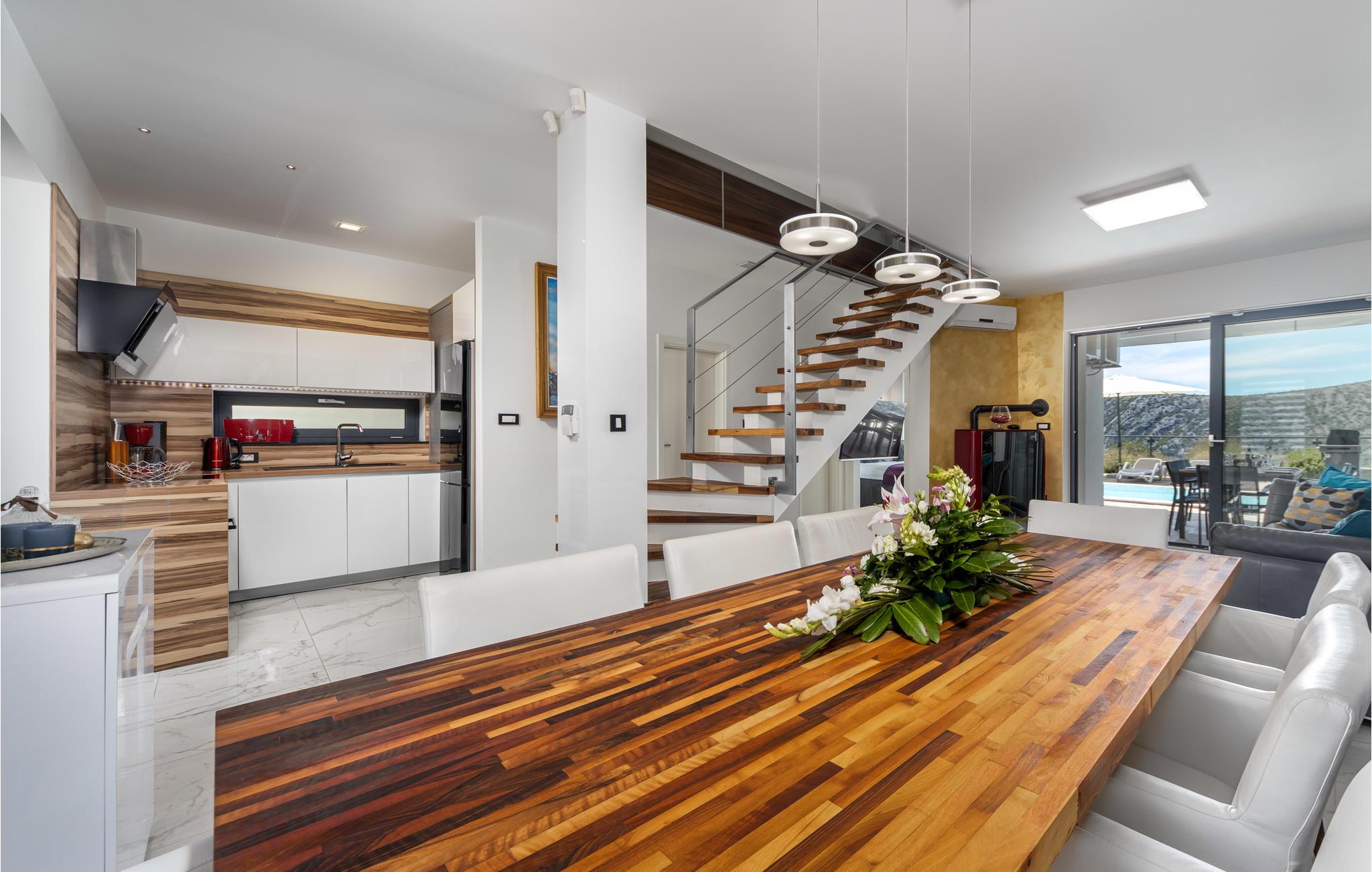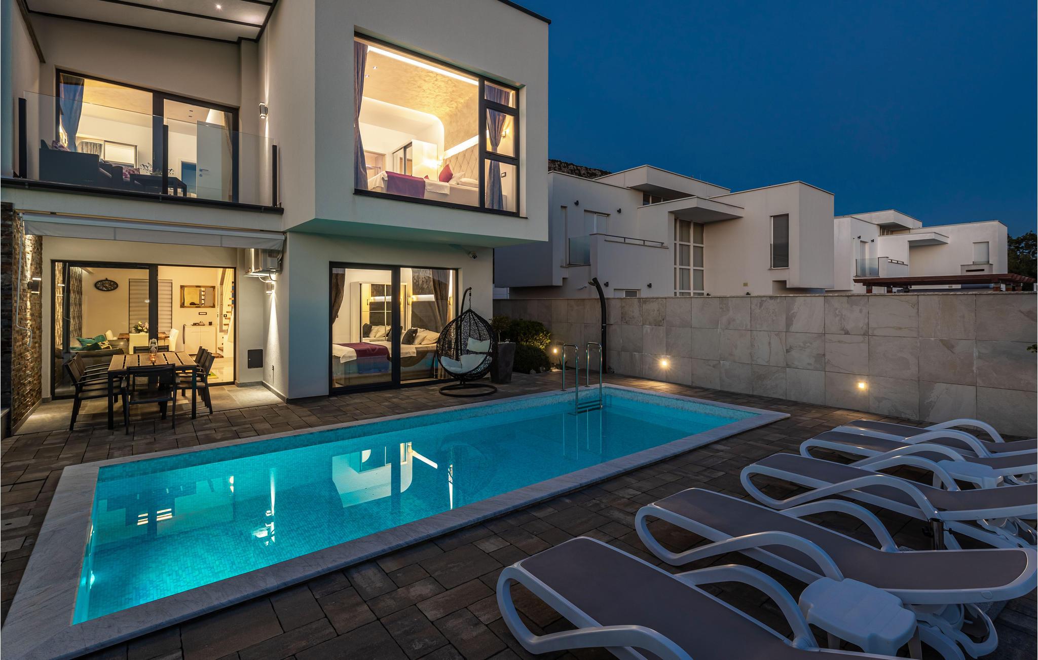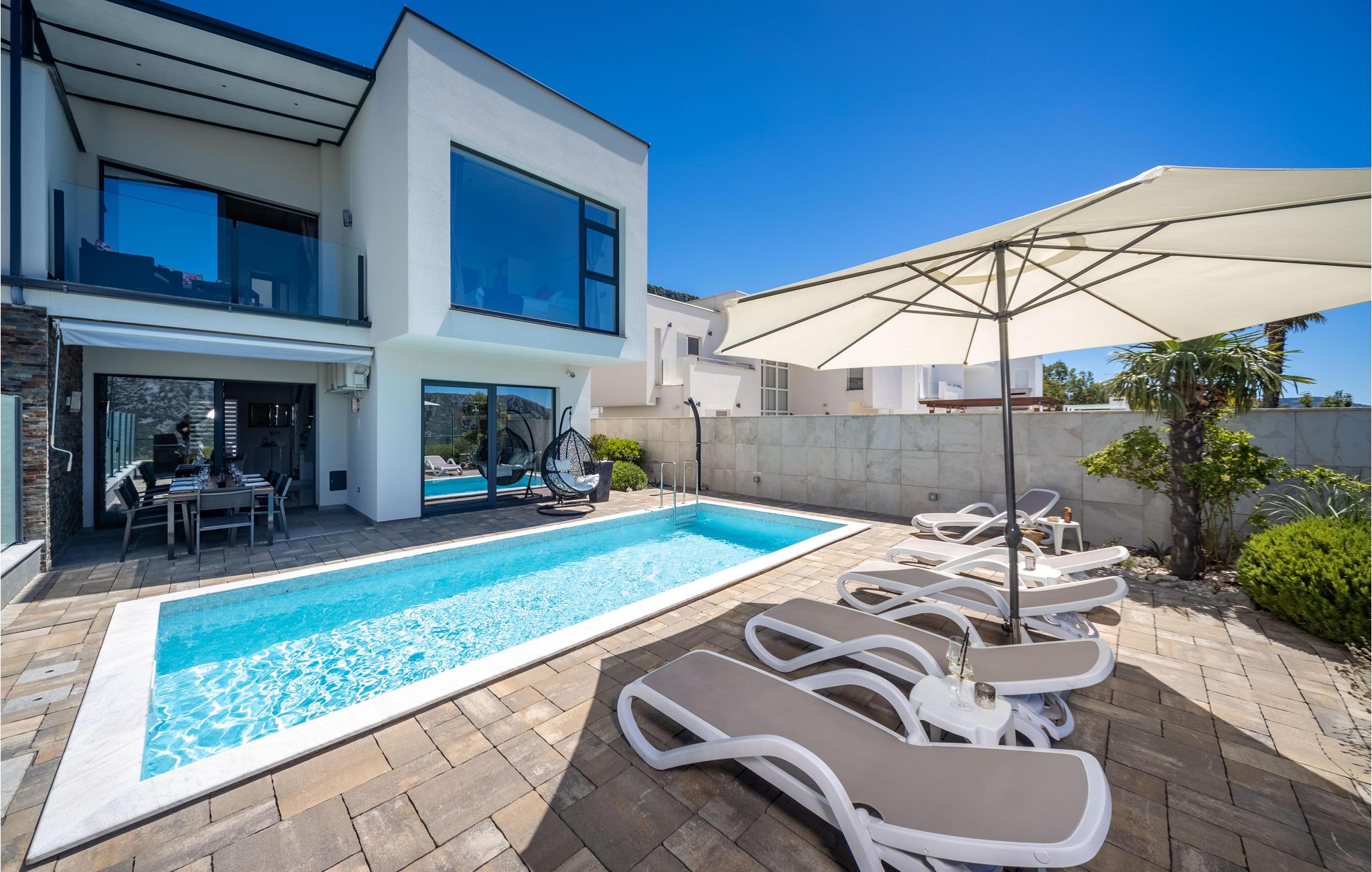 Exklusives Wohndesign, in ruhiger Lage des Hinterlandes von Crikvenica. Entspannen Sie sich im modern und funktionell eingerichteten Ferienhaus. Im Obergeschoss sind drei Schlafzimmer mit eigenem Badezimmer und Terrassen. Im Erdgeschoss gibt es noch ein Schlafzimmer mit Bad und der dominierend Wohnbereich mit Ausgang zur Terrasse. Erfrischen Sie sich im Pool und genießen Sie den Blick auf die Landschaft. In wenigen Minuten Autofahrt erreichen Sie die wunderschönen Sandstrände von Crikvenica. Erkunden Sie die Sehenswürdigkeiten dieser Gegend sowie die vielfältigen Sommerveranstaltungen. Abenteuersuchenden stehen verschiedene Sportmöglichkeiten wie Radfahren, Wandern, Bergsteigen und Gleitschirmfliegen zur Auswahl.