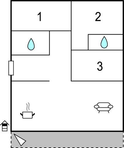 Badezimmer 4m2 (nr. 2) - WC. Warmes und kaltes Wasser. Dusche