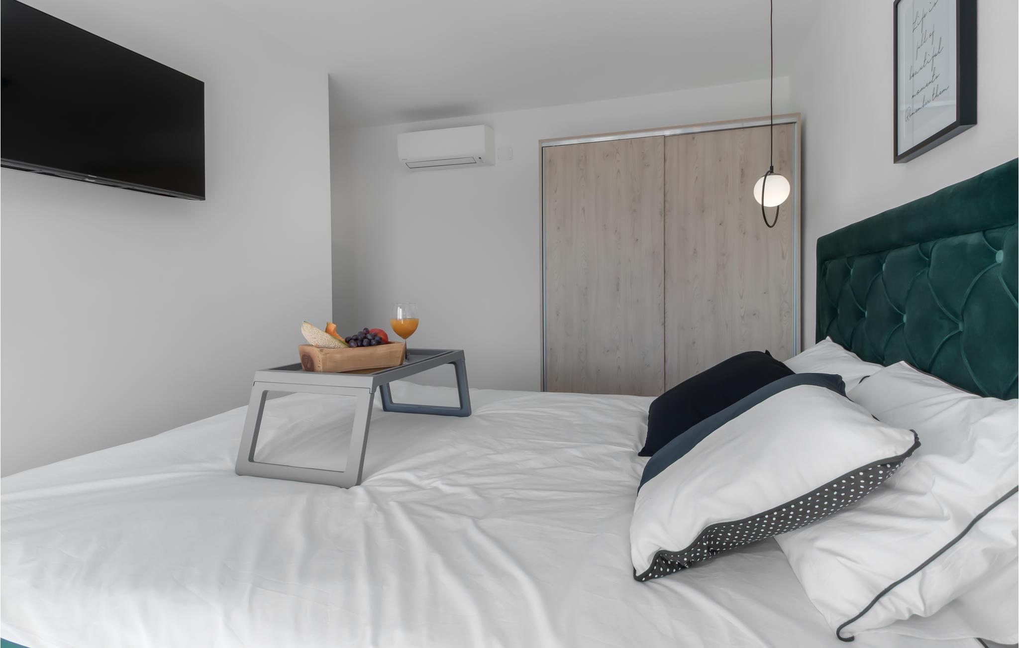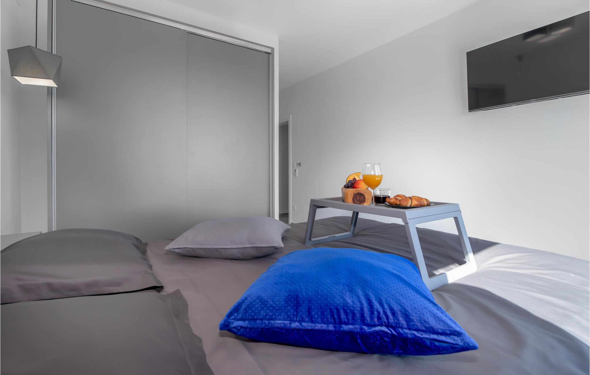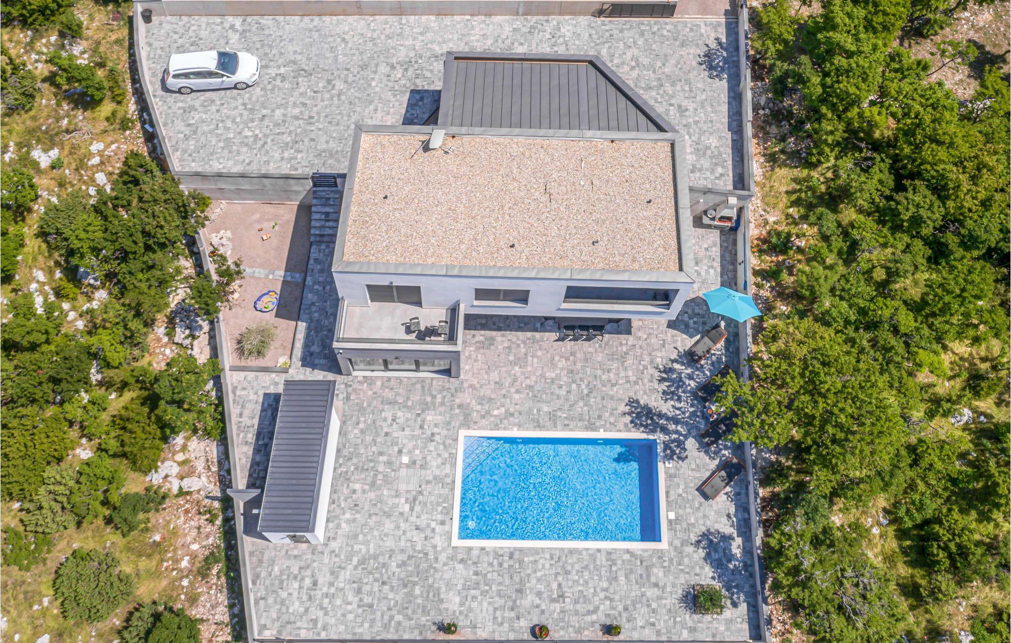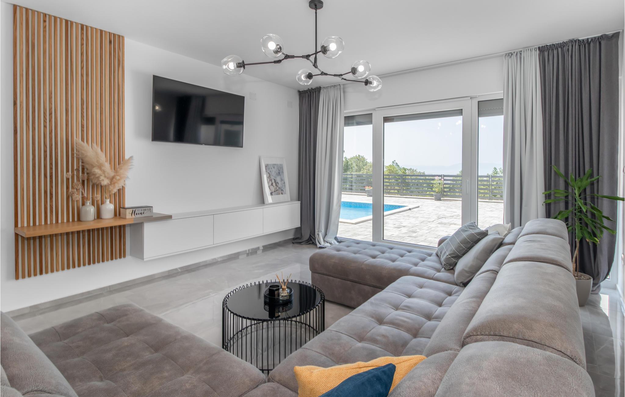 Draußen lädt die große Terrasse mit Pool zum Entspannen in der Sonne ein. Von einem der Balkone bietet sich Ihnen ein spektakulärer Blick auf die Insel Krk und die Kvarner-Bucht - ideal, um den Alltag hinter sich zu lassen.