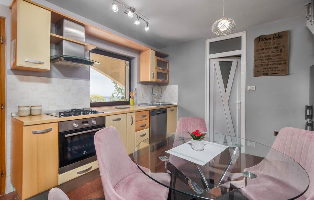 Verbringen Sie Ihren Urlaub mit Familie oder Freunden im kleinen Dorf Zoricici, auf einem Hügel im Hinterland von Crikvenica, wo sich dieses wunderschön eingerichtete Ferienhaus befindet. Im Erdgeschoss sind die Küche und das Wohnzimmer, während sich im ersten Stock die Schlafzimmer befinden. Aus den Schlafzimmern gelangen Sie auf eine Terrasse, von der sich ein Panoramablick auf das Meer und die Stadt Crikvenica bietet. Das Ferienhaus liegt auf einem großen Grundstück mit viel Grün, wo Sie sich im Schatten der Bäume entspannen können. Die Riviera von Crikvenica ist reich an schönen Sand- und Kiesstränden sowie vielen Unterhaltungsangeboten.
