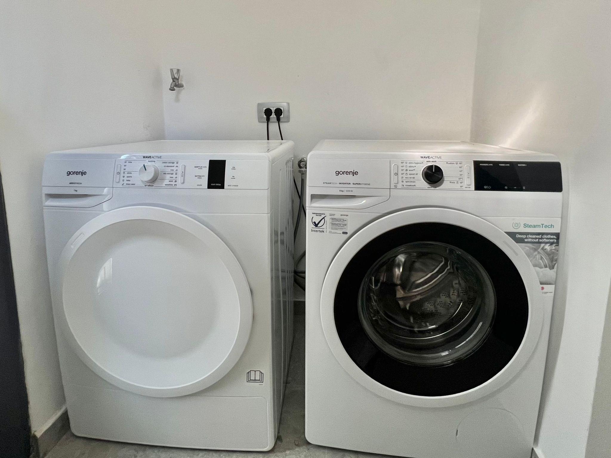 Im Inneren dieser freundlichen Ferienwohnung erwartet Sie eine wohl durchdachte Ausstattung, die Ihren Aufenthalt komfortabel gestaltet. Von der effizienten Klimaanlage, die in allen Räumen für angenehme Temperaturen sorgt, bis hin zur privaten Waschmaschine und Spülmaschine, ist hier alles vorhanden, was Sie für einen sorgenfreien Urlaub benötigen. Der Hot Tub verspricht entspannte Stunden, während ein Wasserkocher für den schnellen Teegenuss bereitsteht.