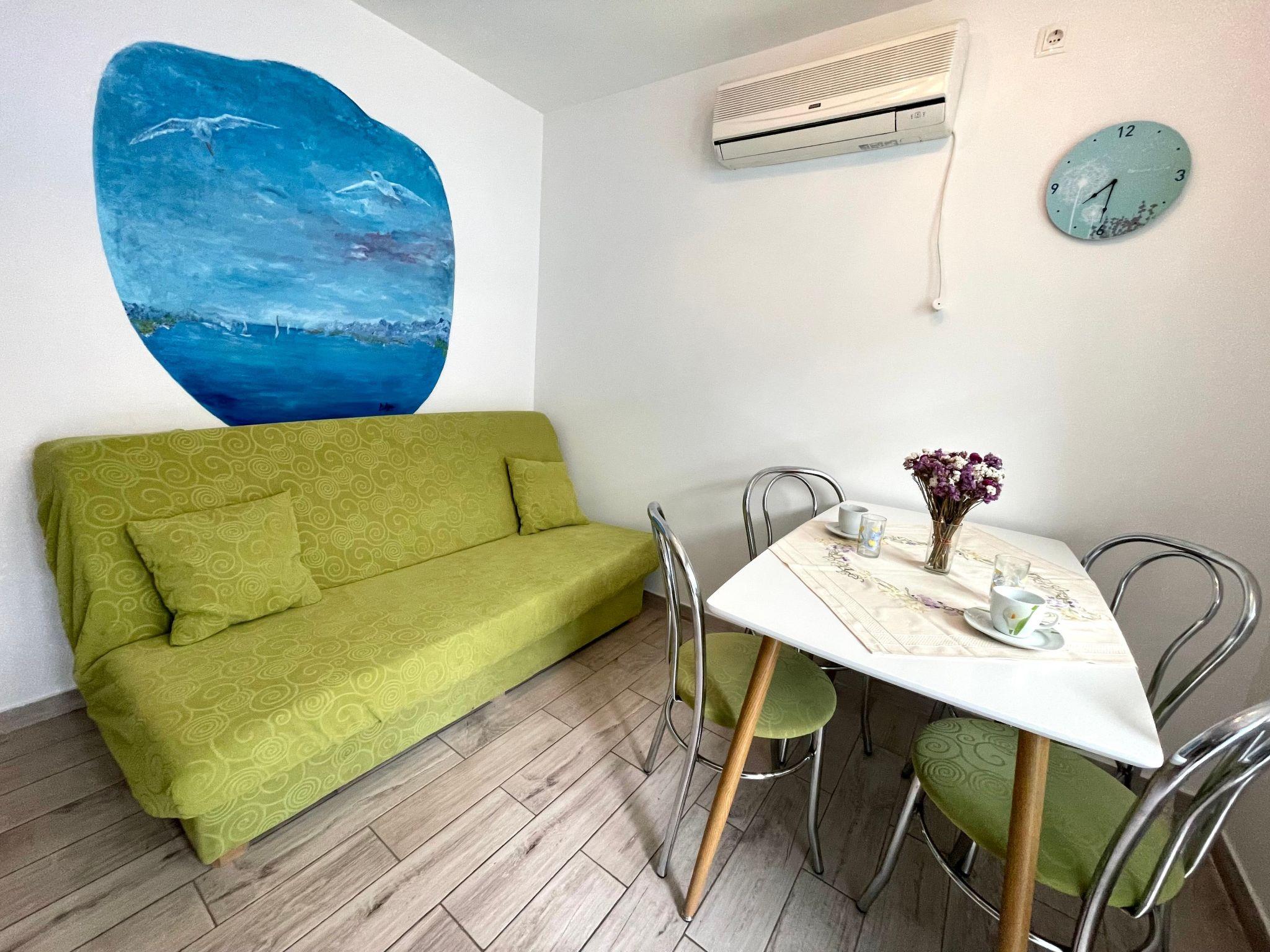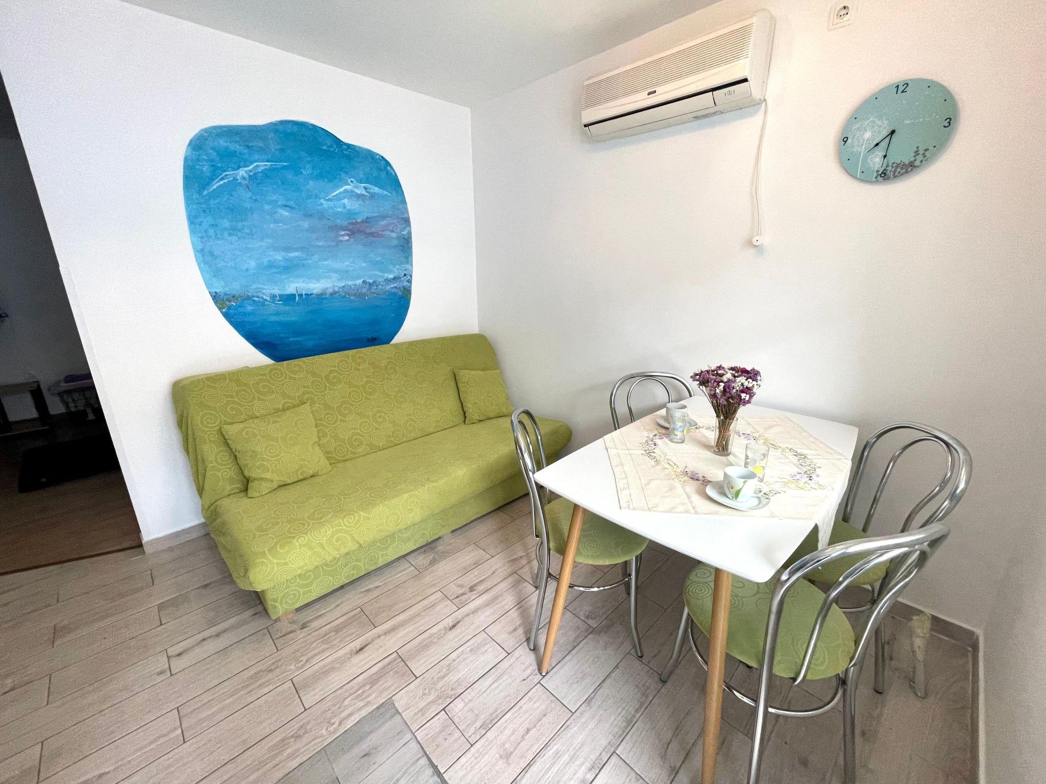 Es besteht aus 1 Schlafzimmer mit einem Doppelbett und einem Wohnzimmer mit einem Schlafsofa (für ein Kind). Haustiere sind erlaubt.(nur kleine, vorzugsweise bis 30 cm). Die Wohnung ist mit Klimaanlage, Heizung, WiFi-Verbindung und Parkplatz auf der Straße ausgestattet. Die maximale Kapazität beträgt 2 Erwachsene und 1 Kind. Es ist nur 300 Meter vom Meer entfernt.