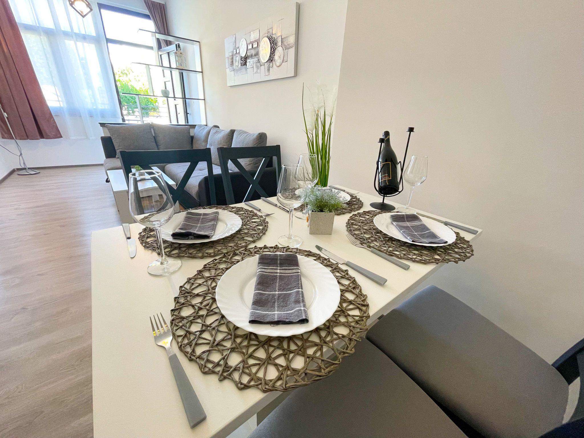 Im Inneren erwartet Sie eine freundlich gestaltete Wohnung, die mit zwei gemütlichen Schlafzimmern ausgestattet ist. Obwohl Küche und Badezimmer von der Beschreibung ausgeschlossen sind, können Sie sicher sein, dass die Wohnung alles bietet, was Sie für einen angenehmen Aufenthalt benötigen. Die teilweise vorhandene Klimaanlage sorgt auch an wärmeren Tagen für ein angenehmes Raumklima.
