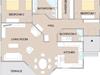 Das helle Ferienhaus ist farbenfroh eingerichtet. Es bietet auf 130 m² allen modernen Komfort mit funktionalem Design für fünf Personen. Es verfügt über zwei farblich harmonisch gestaltete Schlafzimmer mit einem Doppelbett im ersten und einem Doppel- sowie einem Einzelbett im zweiten Zimmer. Zwischen den beiden Räumen befindet sich ein Schrank. Eines der zwei Badezimmer ist mit Dusche, WC und Waschmaschine ausgestattet. Im zweiten Bad gibt es eine Hydromassagewanne, ein Doppelwaschbecken mit Stauraum sowie ein WC und ein Bidet. Der geräumige, klimatisierte Wohnraum bekommt durch die großen Fenster viel Helligkeit. Er besteht aus dem Sitzbereich mit Sofalandschaft vor dem Fernseher, dem modernen Essplatz mit Glastisch und der offenen Küche, die komplett mit allen modernen Geräten ausgestattet ist.