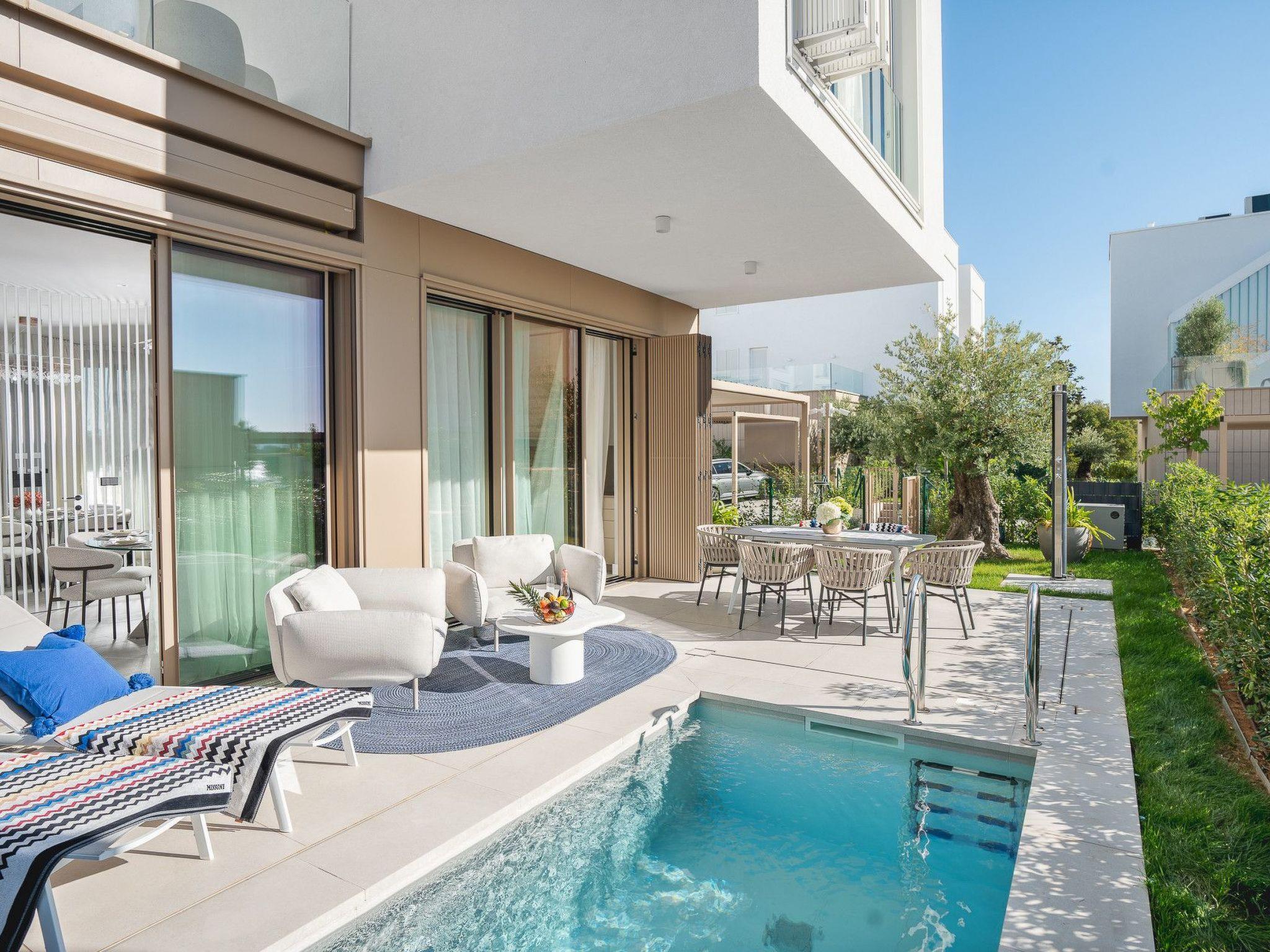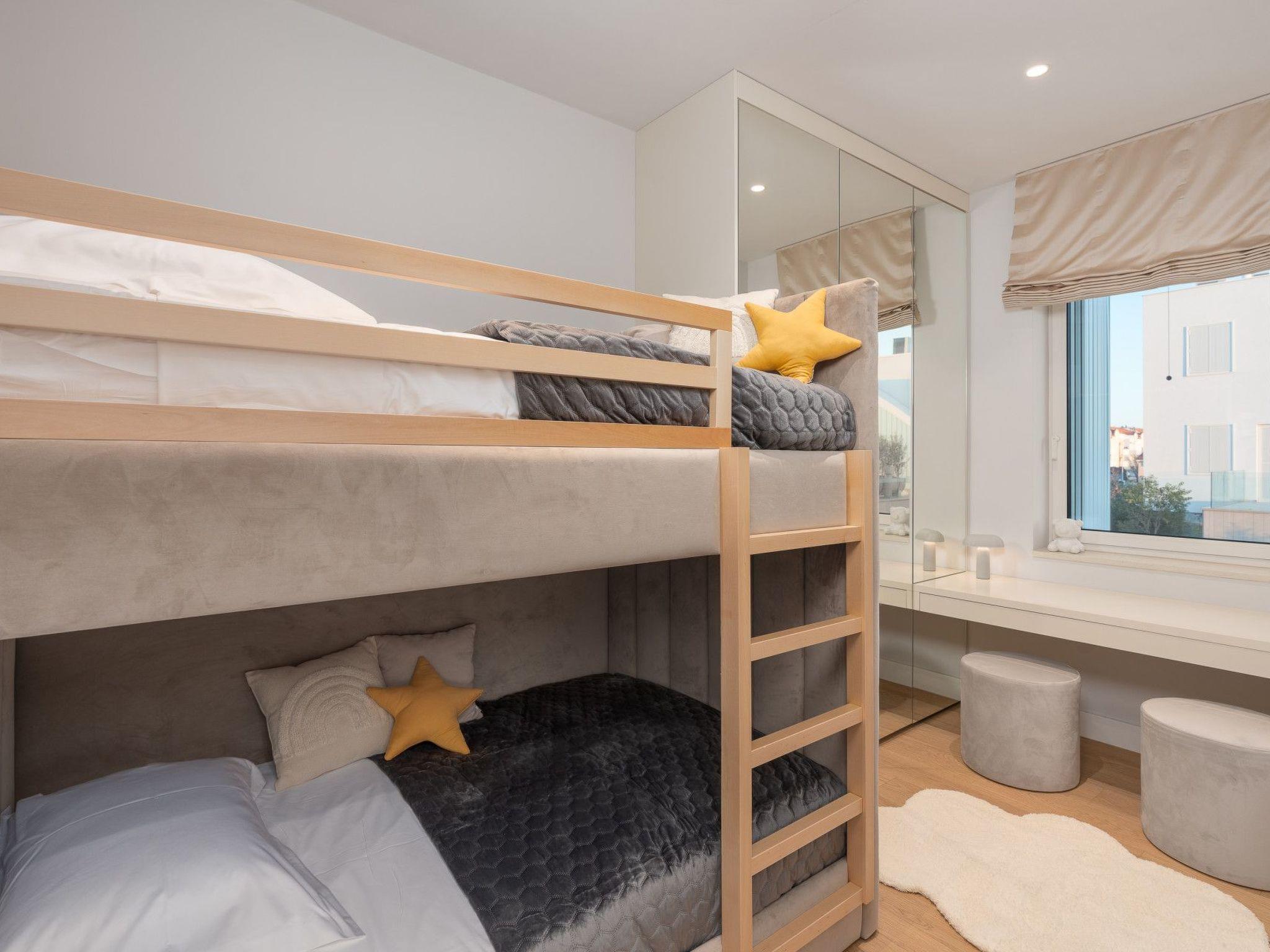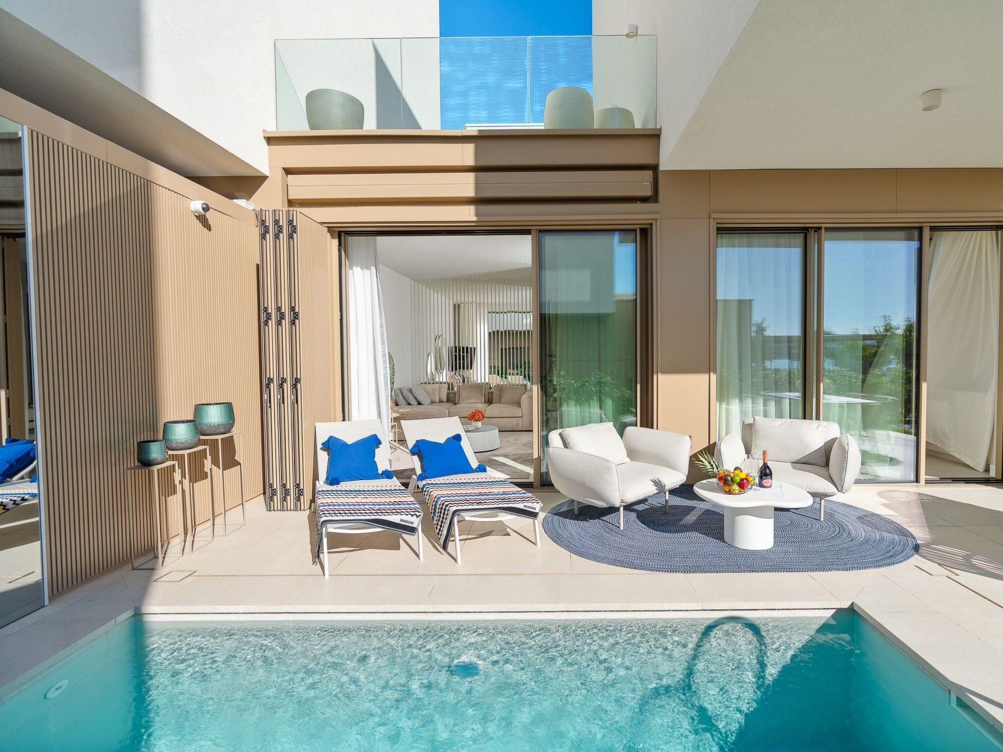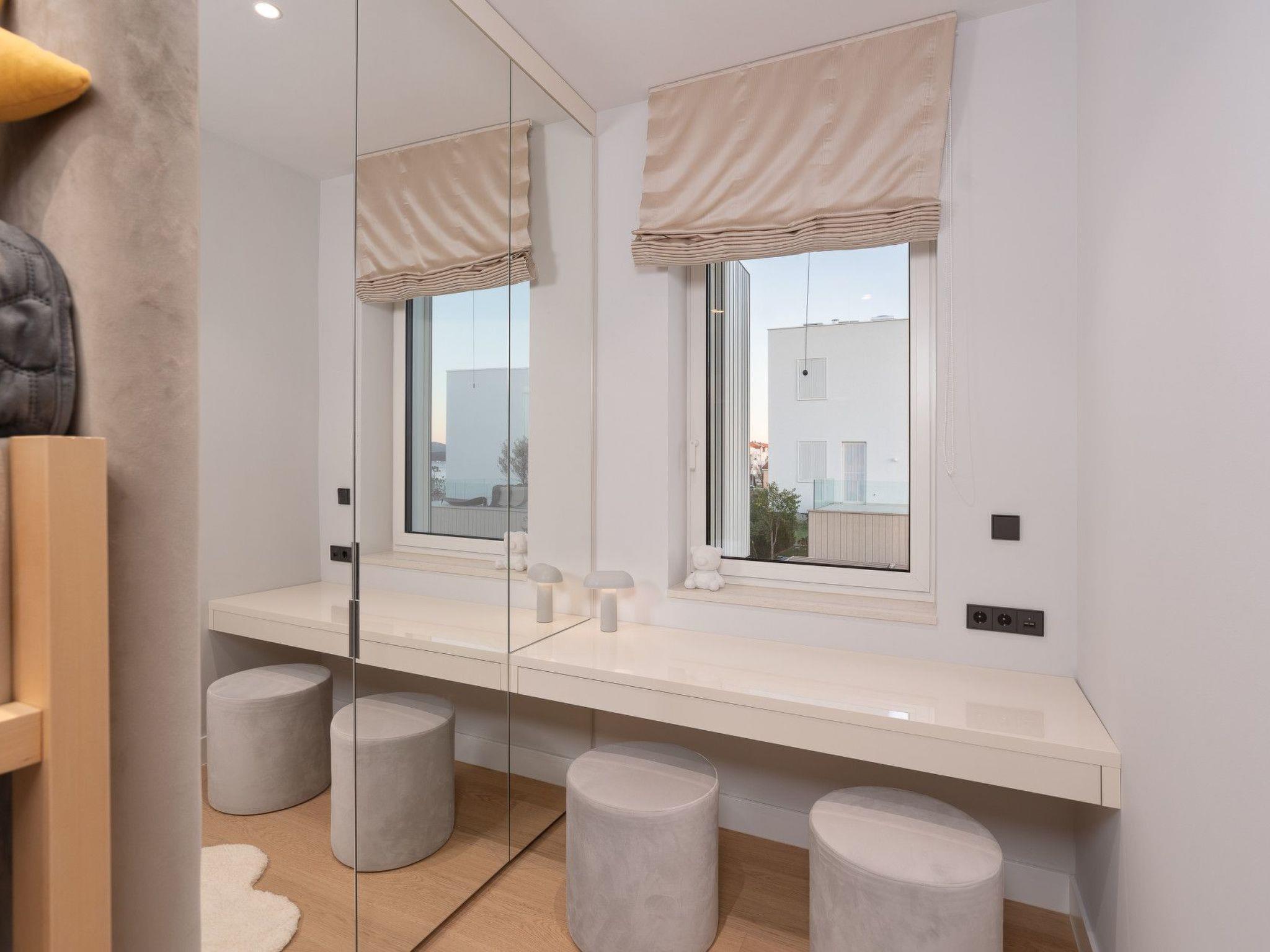 Im ersten und zweiten Stock des Hauses sorgen vier Designer-Schlafzimmer und zwei Badezimmer für maximalen Komfort. Im ersten Stock gibt es eine großzügige Lounge-Terrasse mit einem Heimkino.