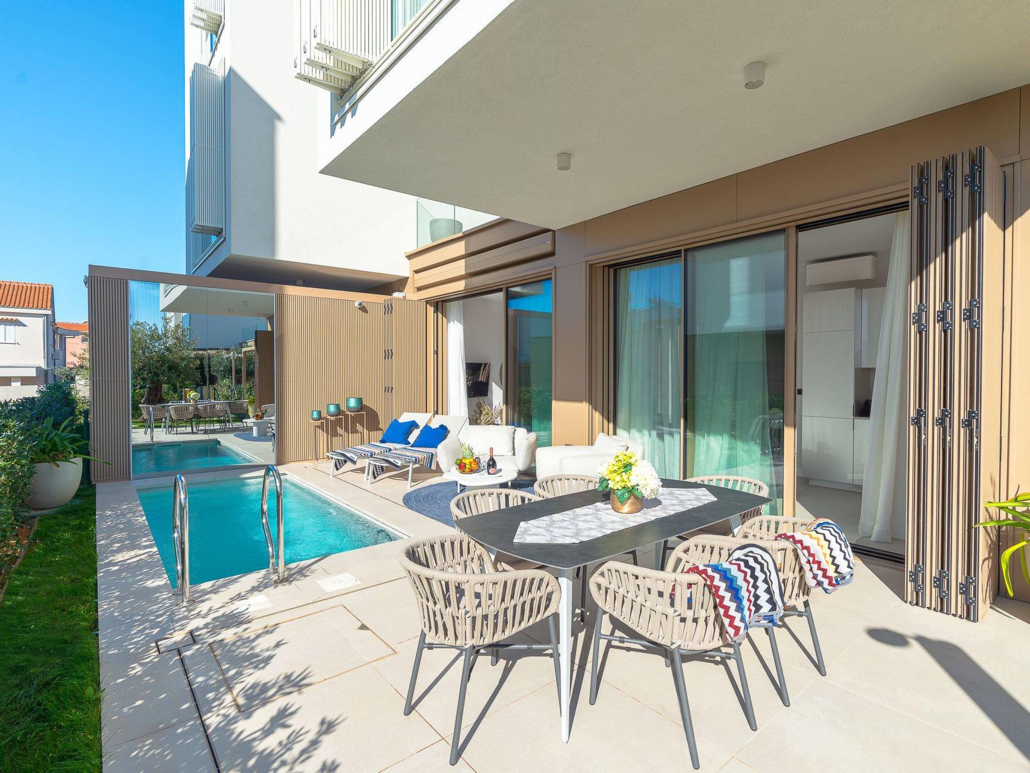 Die moderne Villa Valea besticht durch ihre einzigartige Einrichtung, die vom preisgekrönten kroatischen Architekten Ante Vrban entworfen wurde. Sie befindet sich in einer vollständig umzäunten, schönen Wohnanlage, nur wenige Schritte vom Strand entfernt.
