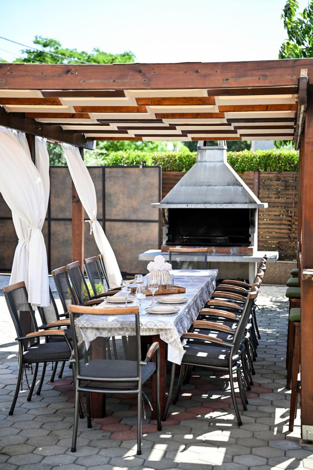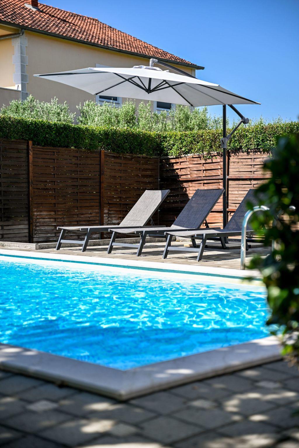 Entspannen können Sie im 25 m² großen Pool, umgeben von viel Grün und dalmatinischen Pflanzen. Es gibt auch Aktivitäten für Kinder im Garten (Kinderspielplatz mit Schaukel) und einen Grill. Auf der überdachten Terrasse können Sie Tischtennis spielen. Fitnessgeräte, WLAN, Pilatesball und Tischfußballtisch stehen im Ferienhaus zur Verfügung. Das Schwimmbad ist von Mai bis Ende September geöffnet.