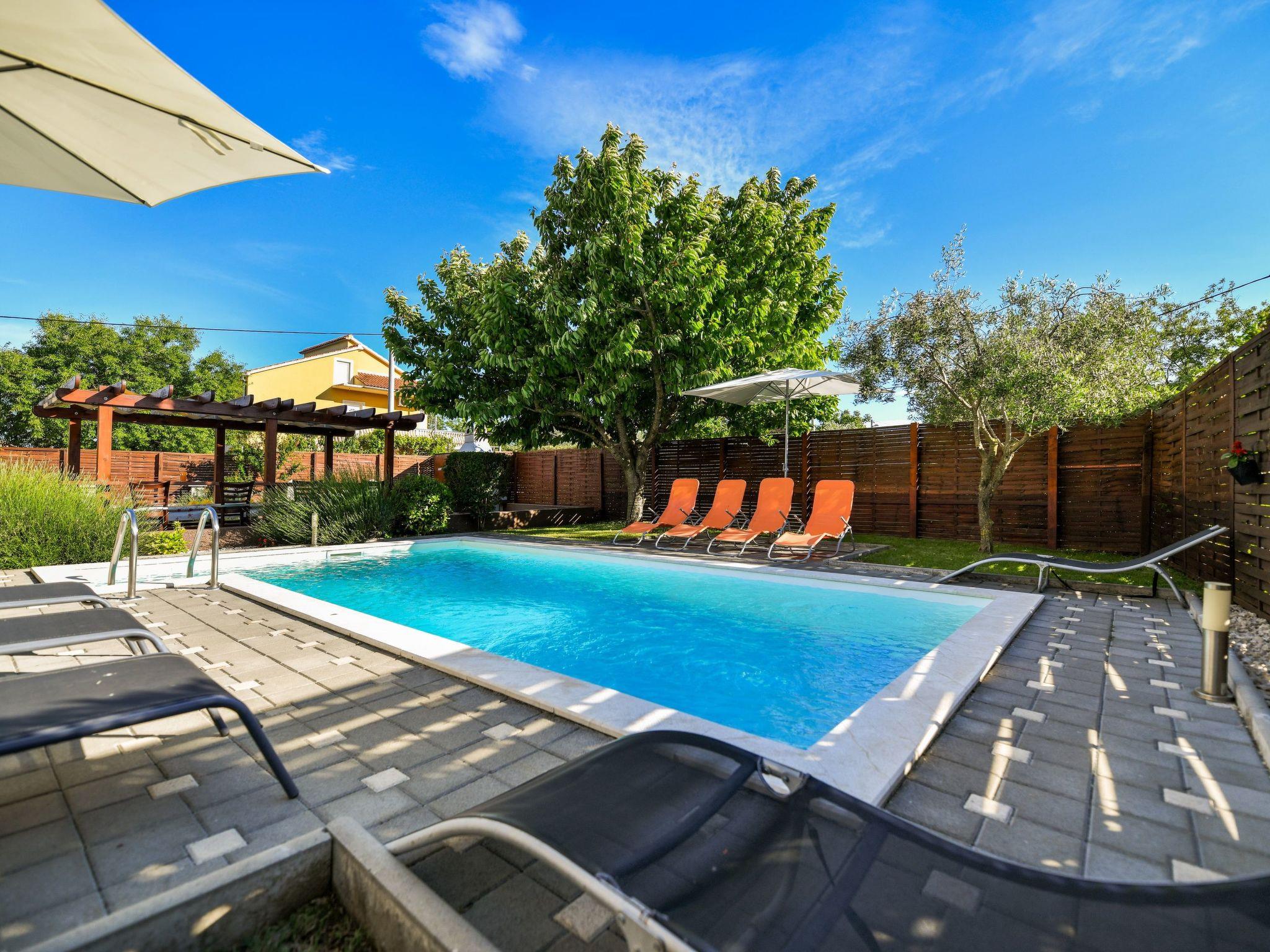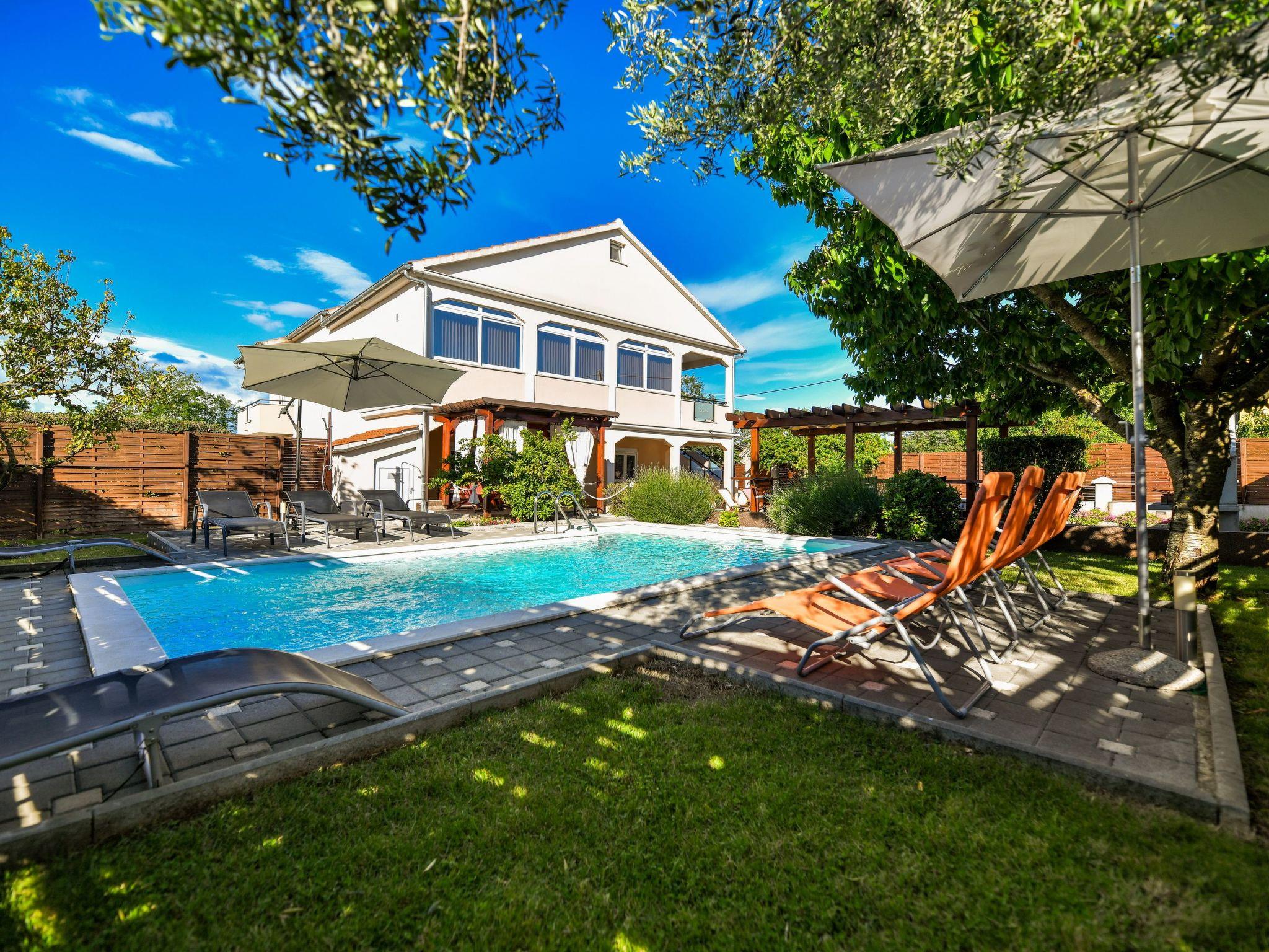Diese elegante, erst im Jahr 2010 neu erbaute Ferienvilla liegt eingebettet in ein grünes 1.000 Quadratmeter großes Grundstück in ländlicher Umgebung. Die nächsten Strände befinden sich in Sv. Petar und Biograd. Biograd ist eine Stadt reich an historischem Erbe und vielen Restaurants. Das Meer und der Strand sind nur 3 km entfernt. Komplett geschlossene Ferienvilla mit sechs Schlafzimmern, privatem beleuchtetem Pool und großer Terrasse mit traditionellem Steingrill