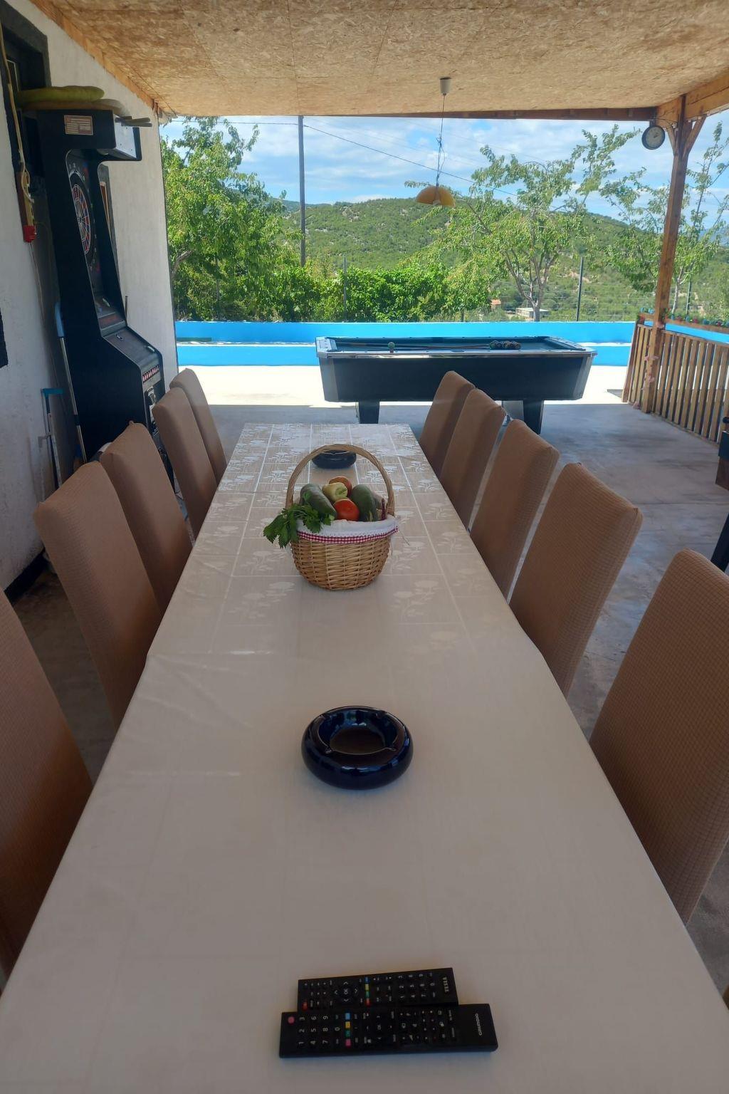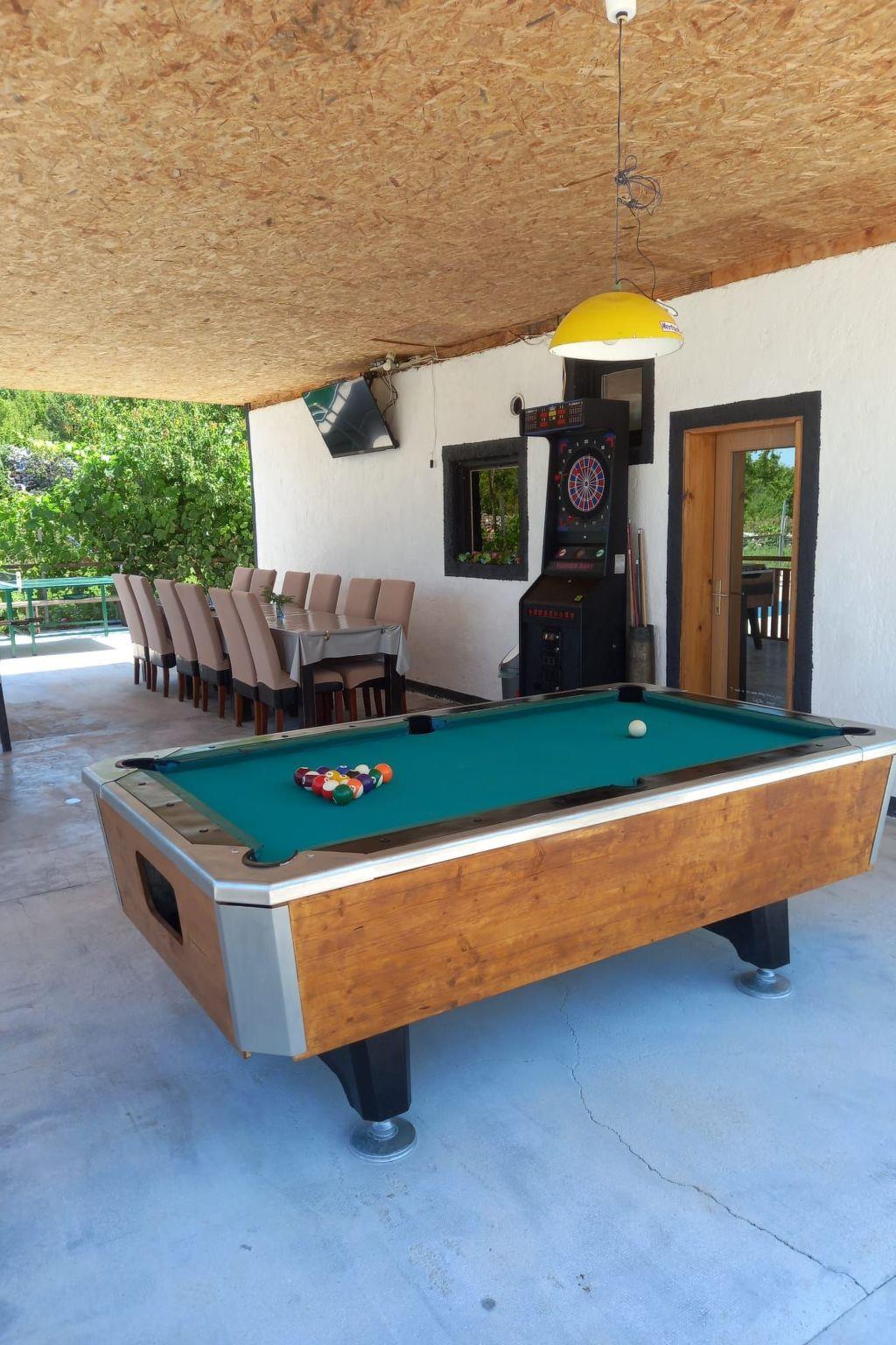 Im Inneren des Hauses finden Sie alles, was Sie für einen komfortablen und angenehmen Aufenthalt benötigen. Die Residenz verfügt über 4 gemütliche Schlafzimmer, die ausreichend Platz für alle bieten, und 3 gut ausgestattete Badezimmer für Komfort und Privatsphäre. Unverzichtbare moderne Annehmlichkeiten wie Waschmaschine, Geschirrspüler, Filterkaffeemaschine und Wasserkocher stehen Ihnen zur Verfügung, um Ihren Aufenthalt so angenehm wie möglich zu gestalten. Darüber hinaus gibt es in Teilen des Hauses eine Klimaanlage, so dass Sie an den wärmeren Tagen in Dalmatien angenehm kühl bleiben. Für Unterhaltung ist gesorgt: Billard und Ventilatoren sorgen für eine lebendige und angenehme Atmosphäre.