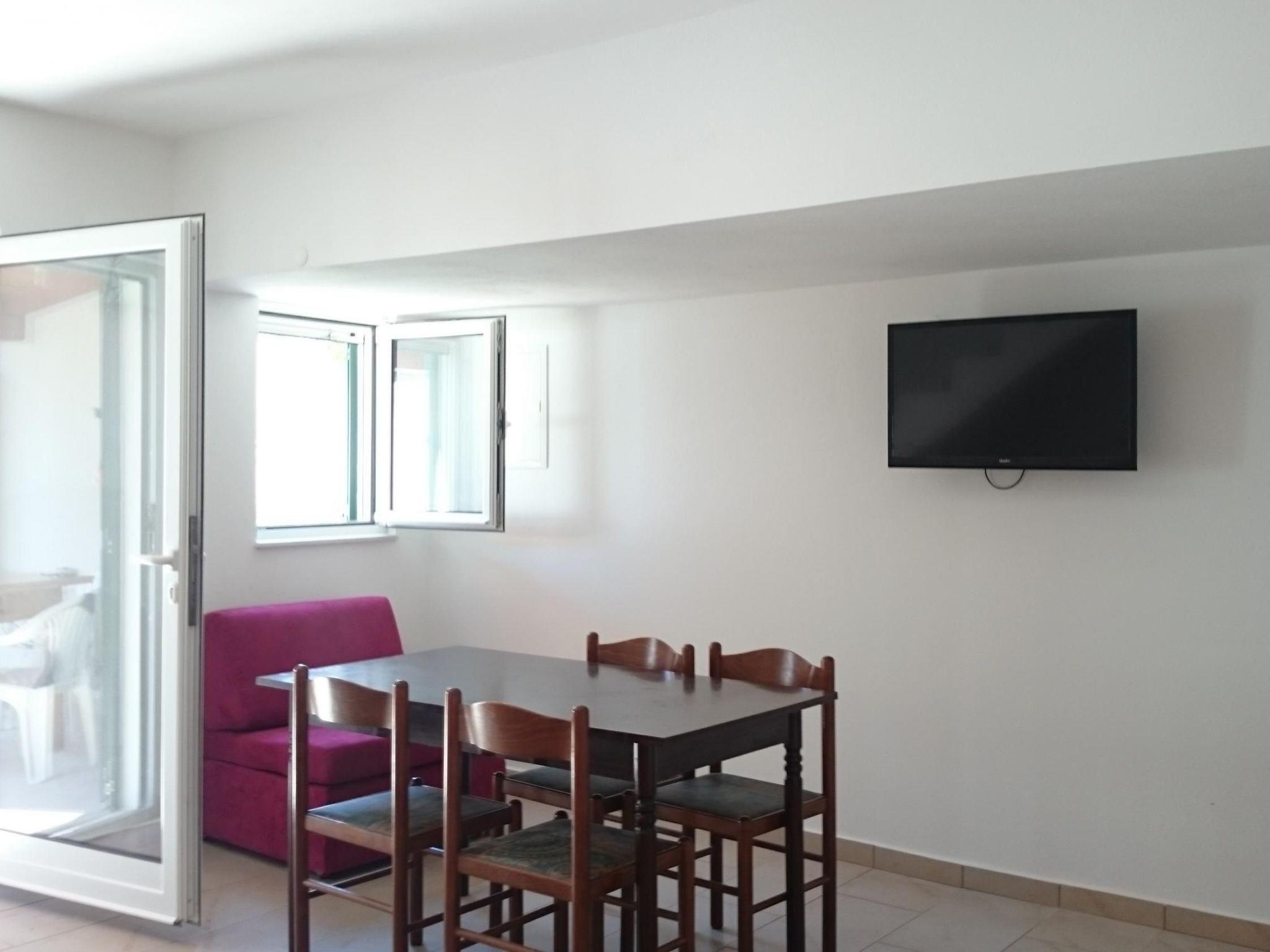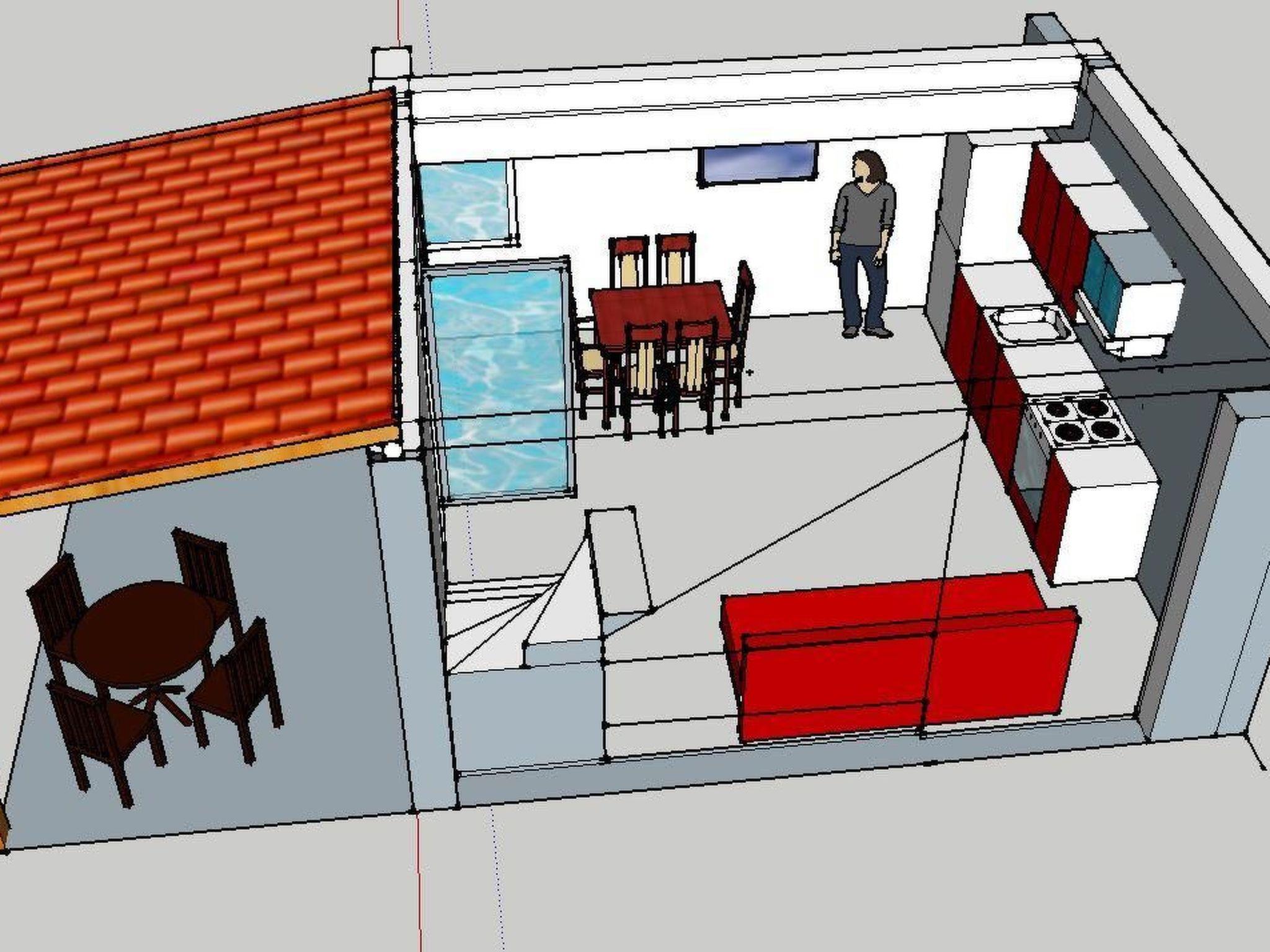 Dieses in 2015 neu gebaute Apartment mit knapp 40m² Wohnfläche erstreckt sich auf zwei Etagen und bietet zwei Erwachsenen und drei Kindern ausreichend Platz. Dreh- und Angelpunkt ist der im Erdgeschoss gelegene Wohnbereich mit Küchenzeile. Diese bietet einen Backofen, Herd und großen Kühlschrank mit Gefrierfach. Am Esstisch finden alle Gäste Platz und auf dem Sofa (Schlafsofa) können in der Nacht zwei Kinder schlafen. Ein Schlafsessel hat Kapazität für eine Person. Zur Unterhaltung dient ein Fernseher (Sat.-TV). In der oberen Etage befindet sich das klimatisierte Schlafzimmer mit Doppelbett und Kleiderschrank. En-suite liegt das kleine Badezimmer mit Dusche, WC und Waschbecken.