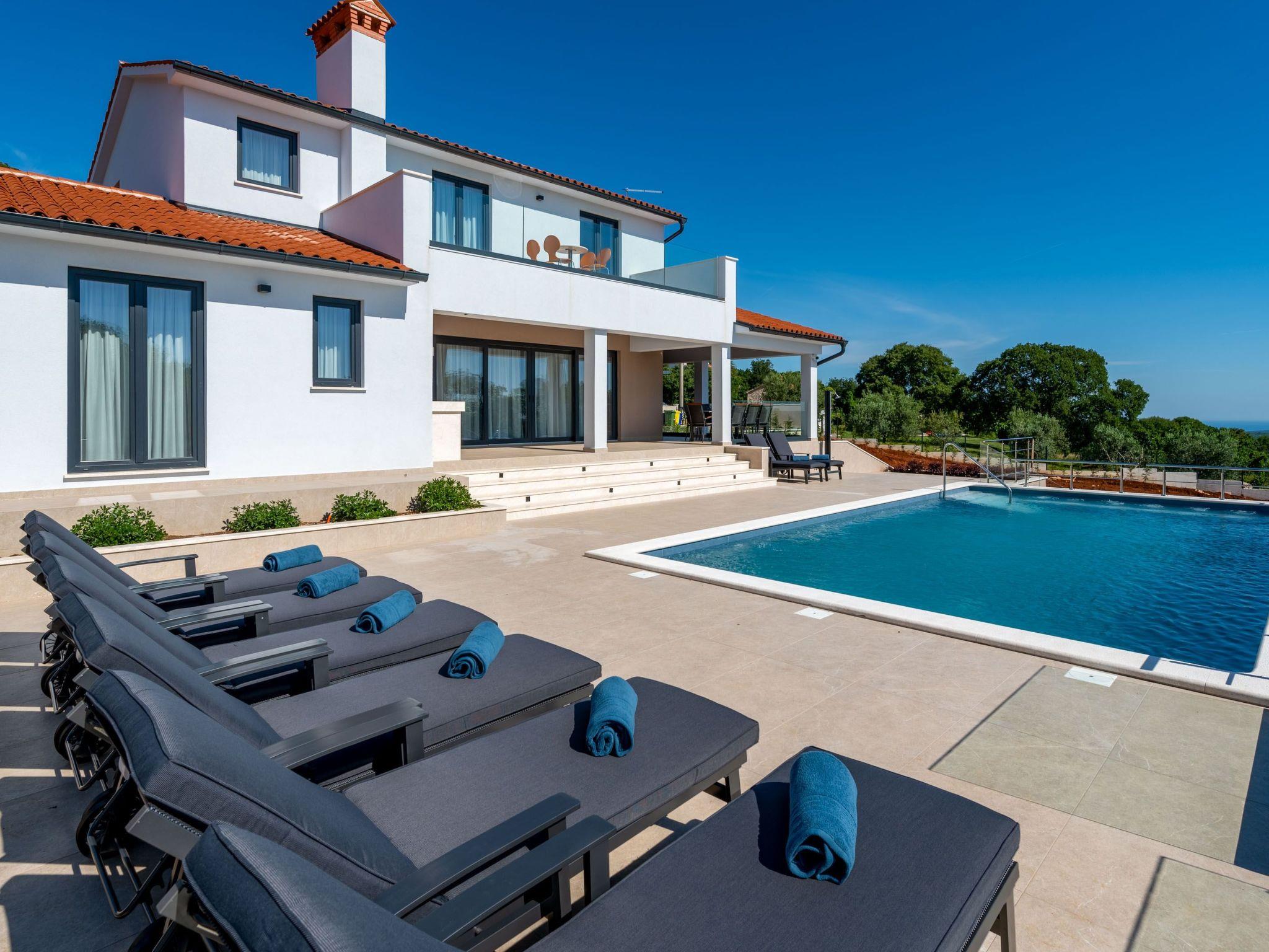 Villa Astrid***** ist eine luxuriöse Villa auf einem 2.500 m2 großen, vollständig umzäunten Grundstück in einem kleinen Ort namens Reburici in der Nähe der Stadt Labin. Unsere Gäste sind von einem herrlichen Blick auf das Meer, den Kanal des Flusses Raša und das weite Grün Istriens umgeben. Das Anwesen verfügt über eine eigene Wiese, die für verschiedene sportliche Aktivitäten geeignet ist, sowie für Haustiere und deren Aktivitäten.