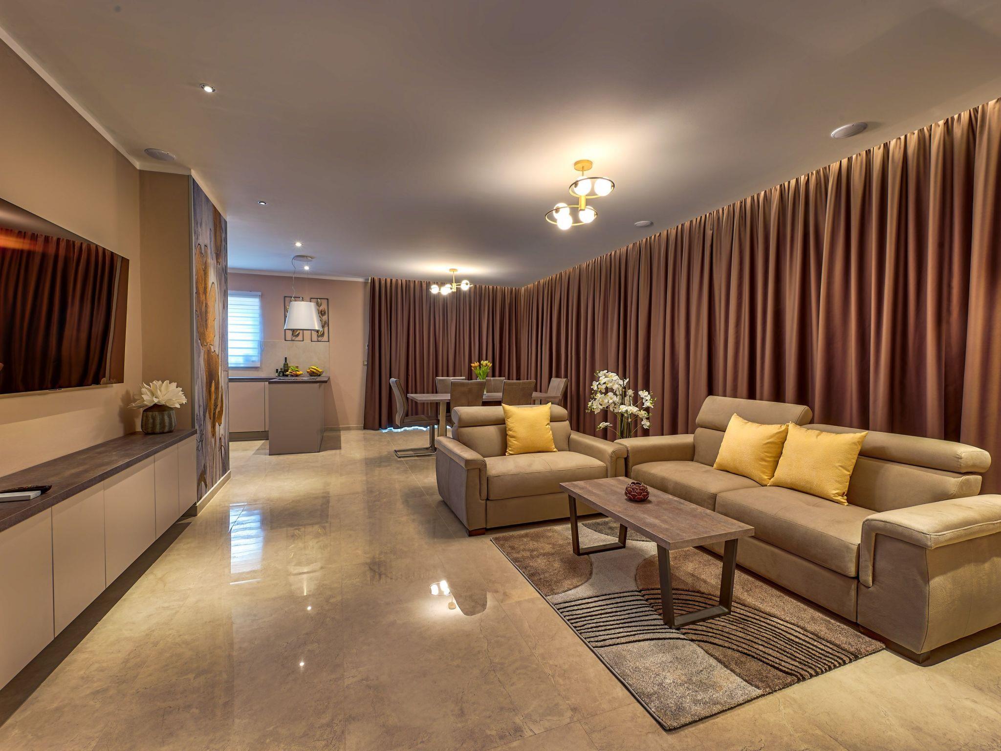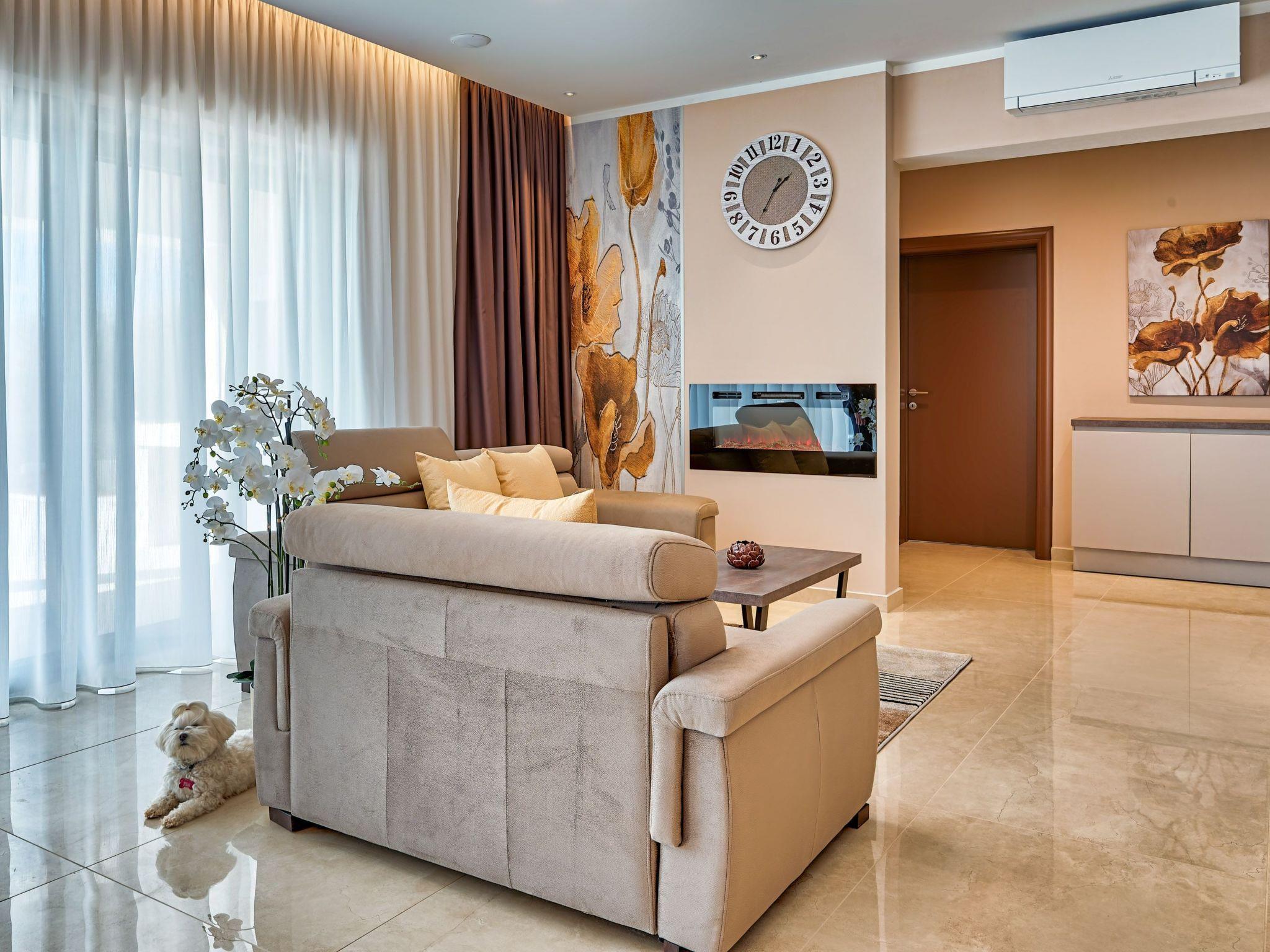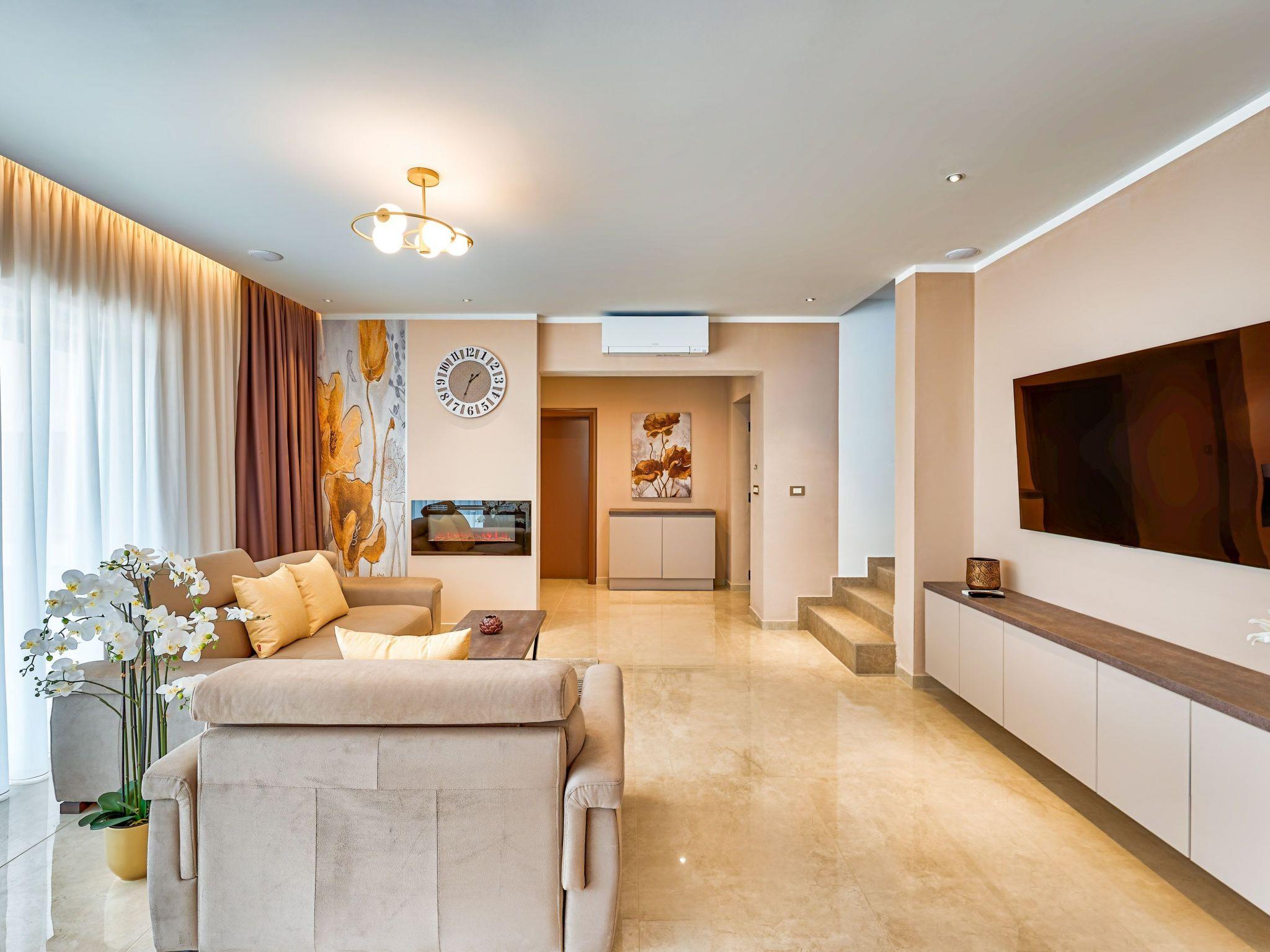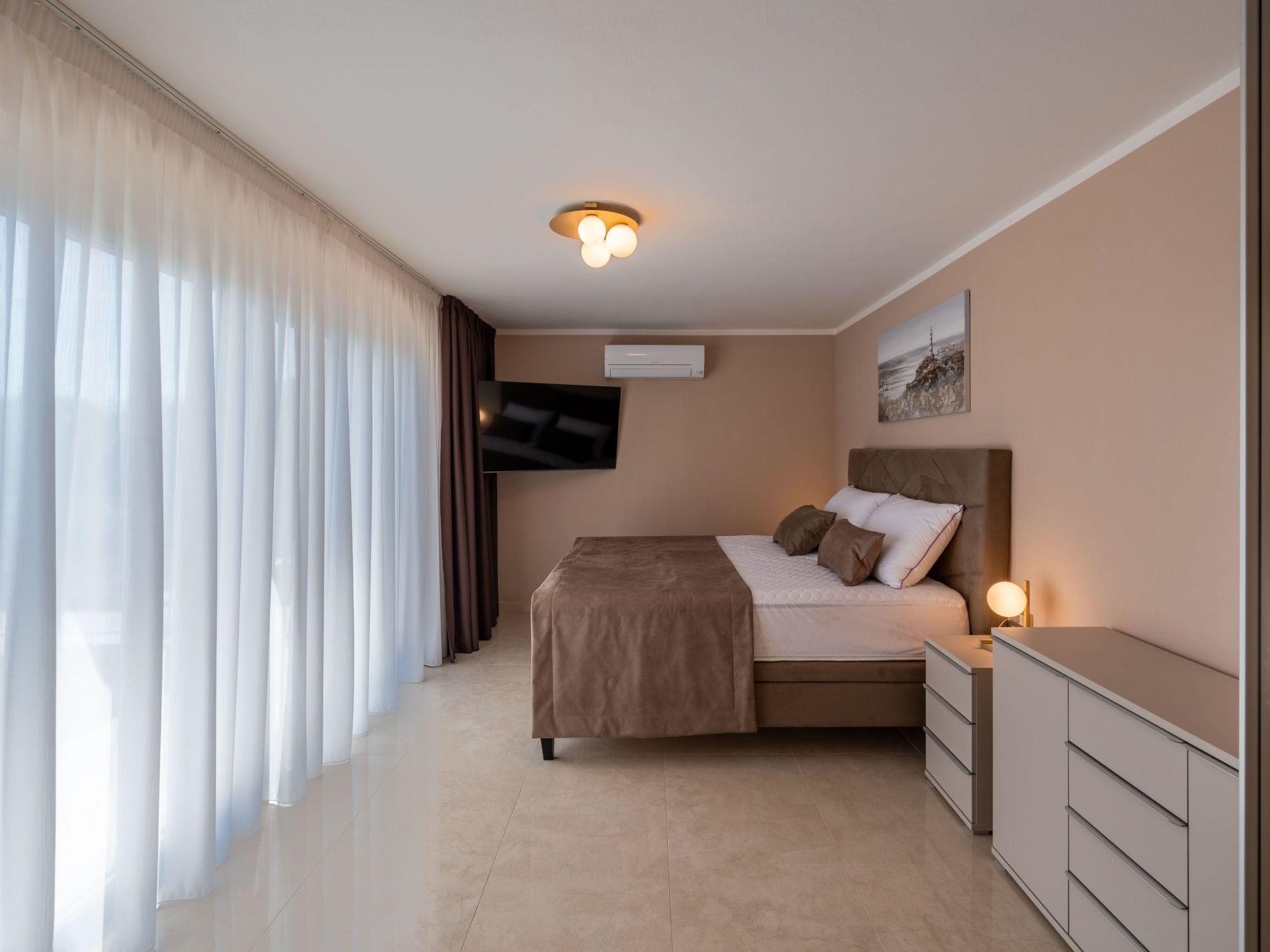Die Villa Astrid bietet Platz für 11 Personen: 2 Doppelzimmer im ersten Stock, 1 Doppelzimmer im Erdgeschoss, ausklappbare Couch und Sessel im Wohnzimmer und ein zusätzliches Doppelzimmer in einer separaten Einheit. Alle Schlafzimmer sind komfortabel und modern eingerichtet, mit Kingsize-Betten (200 x 210 cm), Klimaanlagen und Großbildfernsehern. Die Zimmer im ersten Stock teilen sich eine gemeinsame geräumige Terrasse, von der aus man einen wunderschönen Blick auf die ganze Landschaft genießen kann.