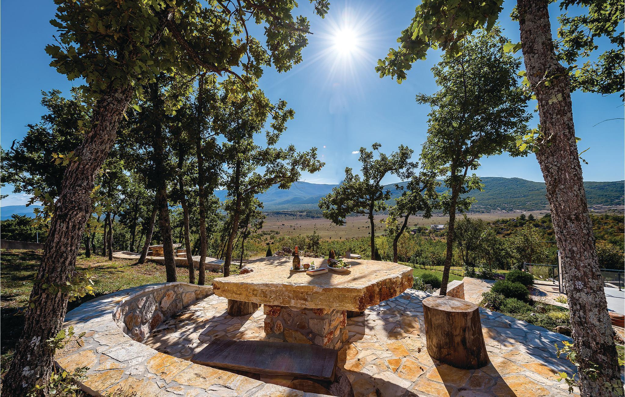 In dem kleinen Dorf Kijevo, am Fuße zweier Berge und in der Nähe der Stadt Drniš, befindet sich dieses komfortable und geschmackvoll eingerichtete Ferienhaus. Erleben Sie in dem Haus einen unvergesslichen Urlaub. An heißen Sommertagen finden Sie Erfrischung im Pool oder genießen Sie mit Familie und Freunden leckeres Essen vom Grill auf dem großen Grundstück. In 3 km Entfernung finden Sie ein Restaurant, wo Sie lokale Gerichte kosten und die kulinarischen Besonderheiten Kroatiens entdecken können.Wir empfehlen Ihnen, die Gegend von Kiew zu erkunden und die Naturschönheiten des dalmatinischen Hinterlandes zu entdecken, sowie die Stadt Vrlika mit einigen Sehenswürdigkeiten zu besuchen.