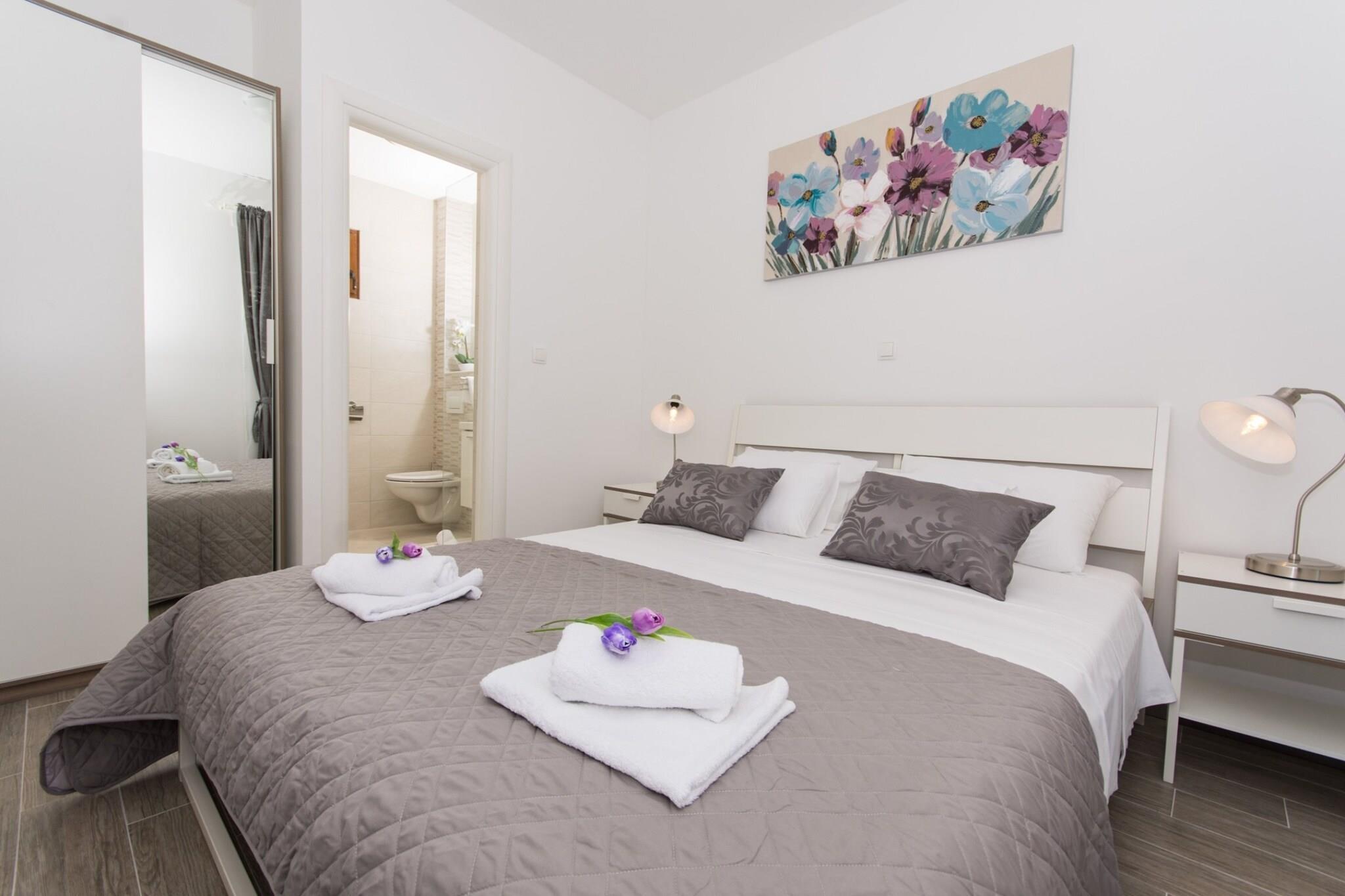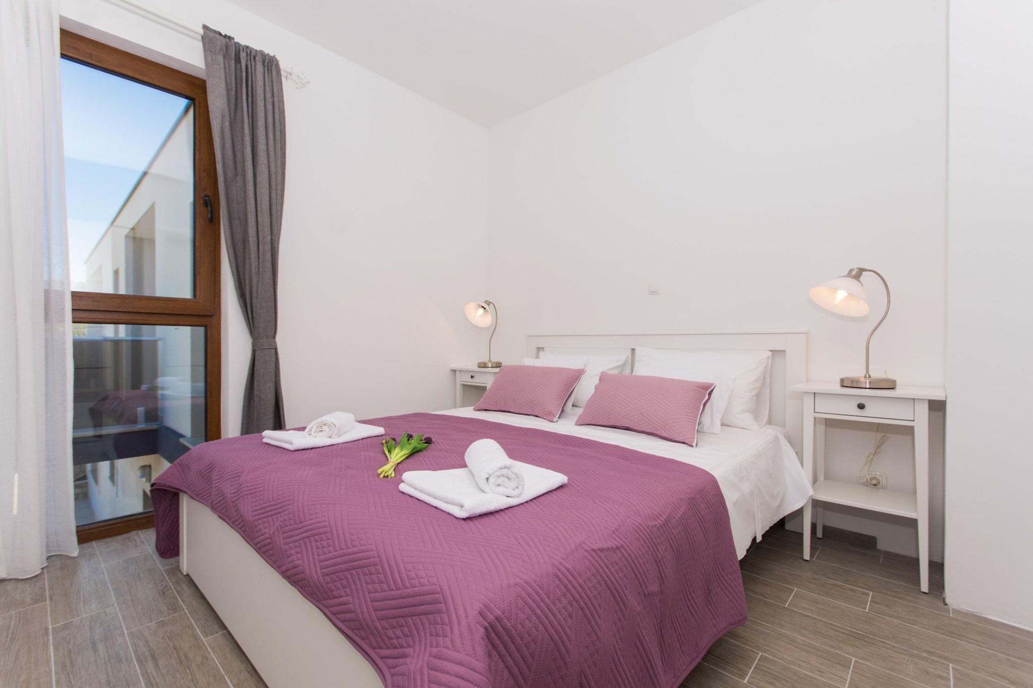 Villa LA is situated in Drvenik Veliki, a island situated in middle Dalmatia. Spacious shared sun terrace with sunbeds and parasols, outdoor swimming pool, BBQ as well as shared garden are at your disposal. Free private parking is provided. Guests have also access to the speedboat. If you are coming with a big car, the way to the apartment is not accessible. In that case park your car on the 'riva', which is approx 300 m away from the property. The owners will pick you up from there. This lovely one bedroom apartment with furnished terrace and sea view is perfectly fit for up to four people. It features free WiFi, air conditioning and SAT LCD TV. The open space living room comes with sofa and sitting area, and it is combined with the equipped kitchen and dining table. The apartment has a private bathroom with shower and hair dryer. Drvenik Veliki Island offers unspoiled nature and beautiful beaches, a peaceful environment are perfect for a quiet and intimate holiday. The coast is rugged and consists of many bays with sandy and pebbly beaches. On the south side of the island is beautiful bay Solinska, and on the east side is a nice place called Krknjaši famously known by the name of Blue Lagoon. There you will find a nice place to eat with fresh sea food or something else of your preference. Drvenik Veliki is an island located southwest from the town of Trogir (8 nautical miles). The ferry terminal is located in Trogir and leaves for Drvenik Veliki 3 times a day (takes you there in cca. 1 hour). From Trogir bus station you can reach the ferry terminal by a short walk (10 minutes’ walk). Split airport “Resnik” is only 7 km away from Trogir and Zadar airport is located 110 km away.