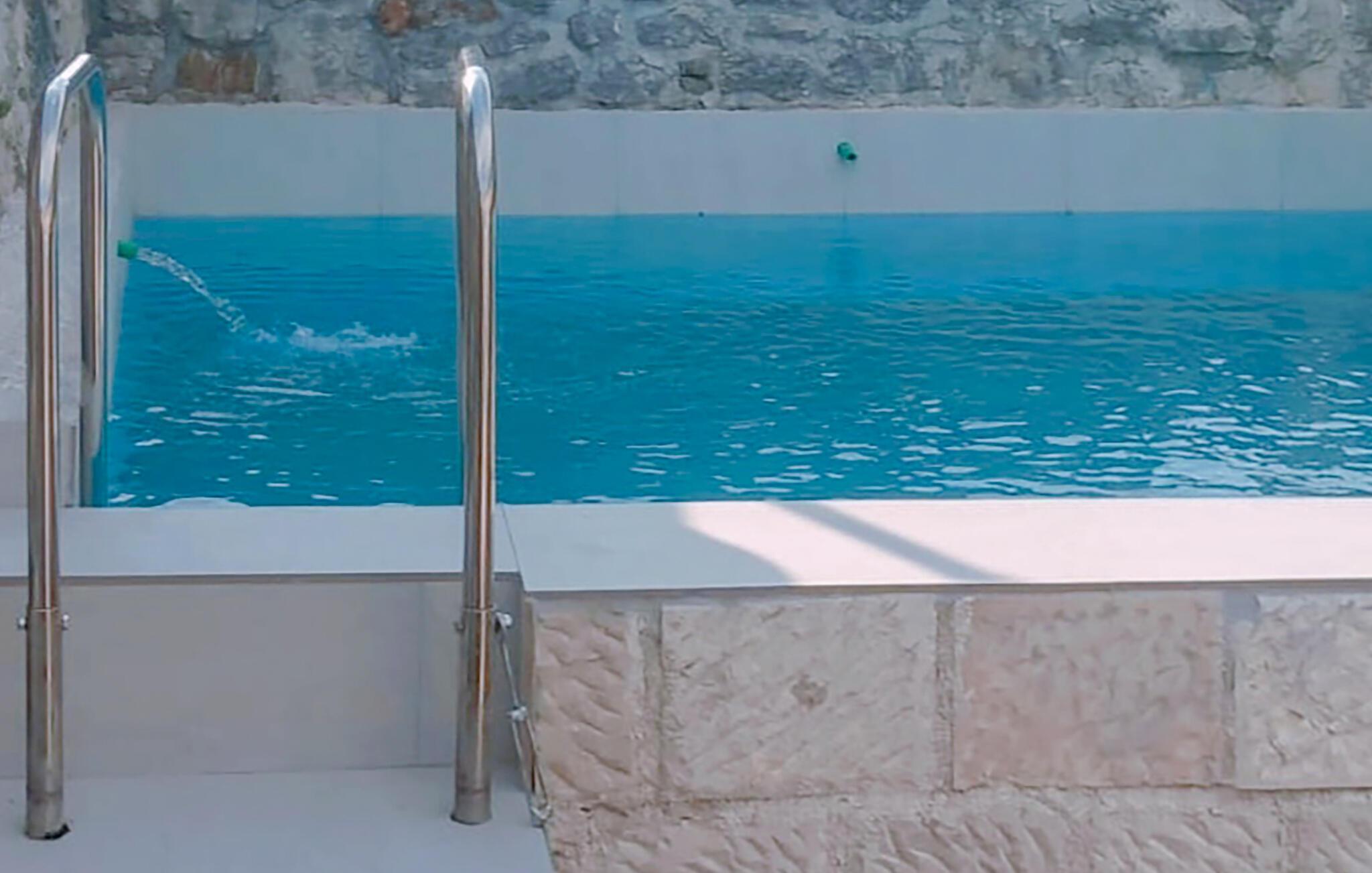 Ihre Ferienwohnung in Gruda bietet Ihnen Ruhe, Komfort und eine gute Ausgangslage für unvergessliche Erlebnisse. Hier können Sie die Schönheit der Natur genießen und sich in Ihrem gemütlichen Urlaubszuhause entspannen. Beginnen Sie den Tag mit einem Sprung in den privaten Pool, der von einer rustikalen Steinmauer umgeben ist, und genießen Sie die Sonne auf den komfortablen Liegestühlen.