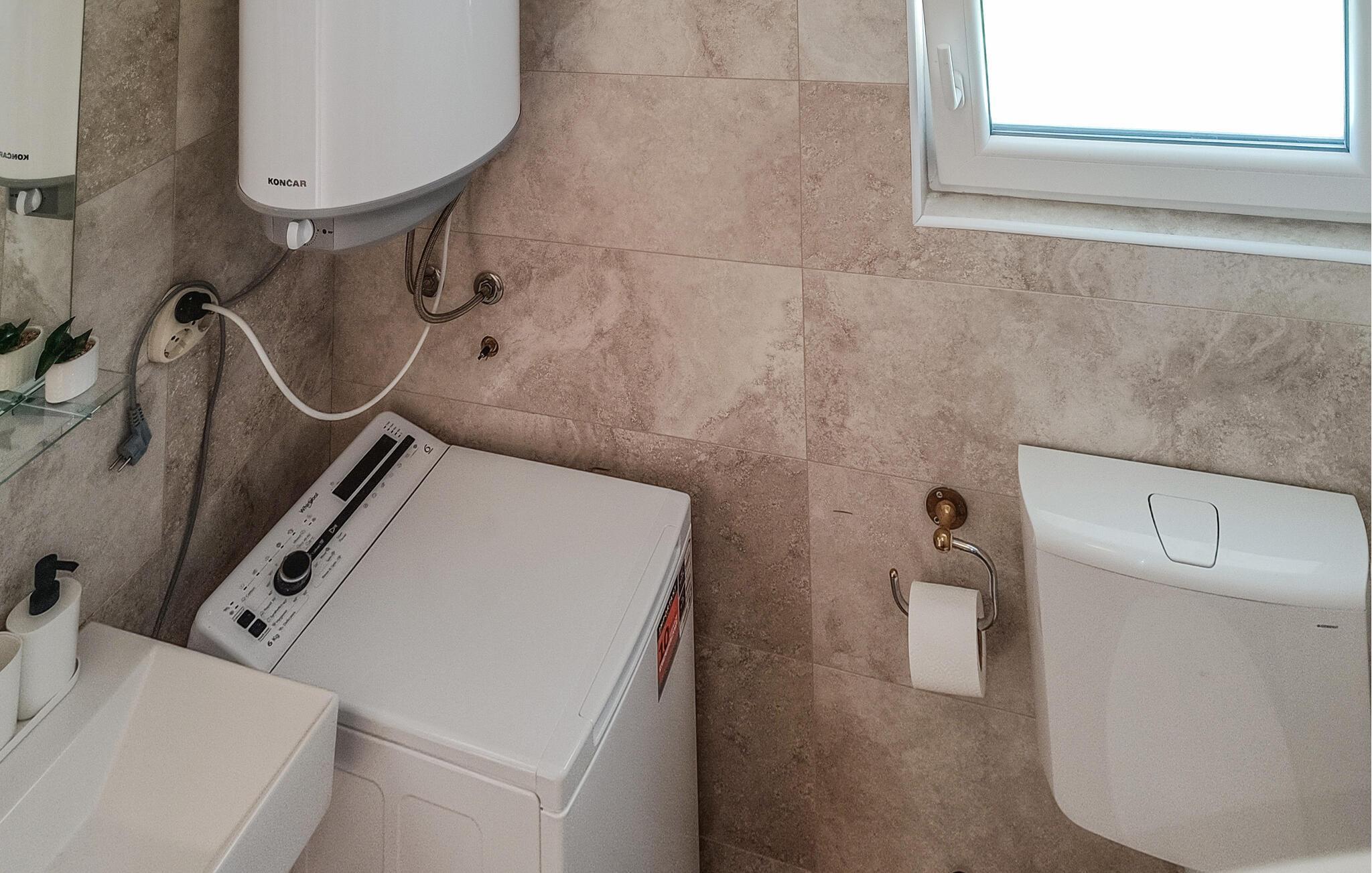 Badezimmer 4m2 (nr. 1) - WC. Warmes und kaltes Wasser. Dusche