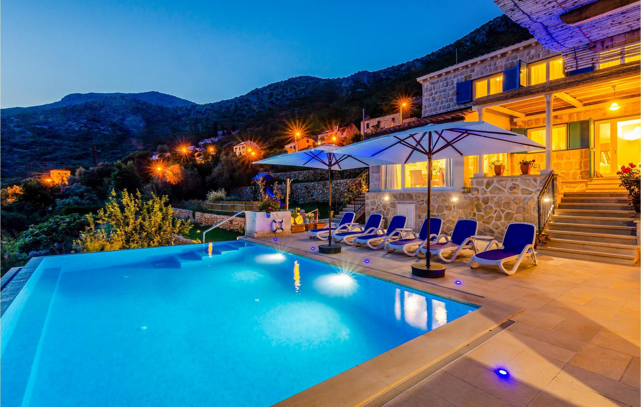 Dieses schöne Anwesen mit großem Garten liegt auf einem Hügel im kleinen Ort Brsecine nahe Dubrovnik. Es ist ein sorgfältig restauriertes, dalmatinisches Steinhaus mit einem schönen Blick auf das Meer und die Inseln. Der Innenraum ist modern und rustikal möbliert, stilvoll und mit viel Tageslicht. Im Erdgeschoss sind eine Küche, Ess- und Wohnzimmer und das Bad. Im Obergeschoss befinden sich drei Schlafzimmer und zwei Bäder. Ein Unterhaltungsraum mit Billard, Tischfußball und Darts verfügbar, während Kinderspielgeräte auf dem Rasen gelegen sind. Der schönste Teil des Hauses ist eine Poolterrasse, die ein Maximum an Komfort und Privatsphäre und einen spektakulären Blick auf den Sonnenuntergang bietet. Das Haus ist ideal für Paare oder Familien mit Kindern. Brsecine ist ein dalmatinisches Dorf in der Nähe von Dubrovnik, das viele unterhaltsame Sommerveranstaltungen hat. Ein schöner Kiesstrand ist nur 5 Minuten mit dem Auto entfernt.
