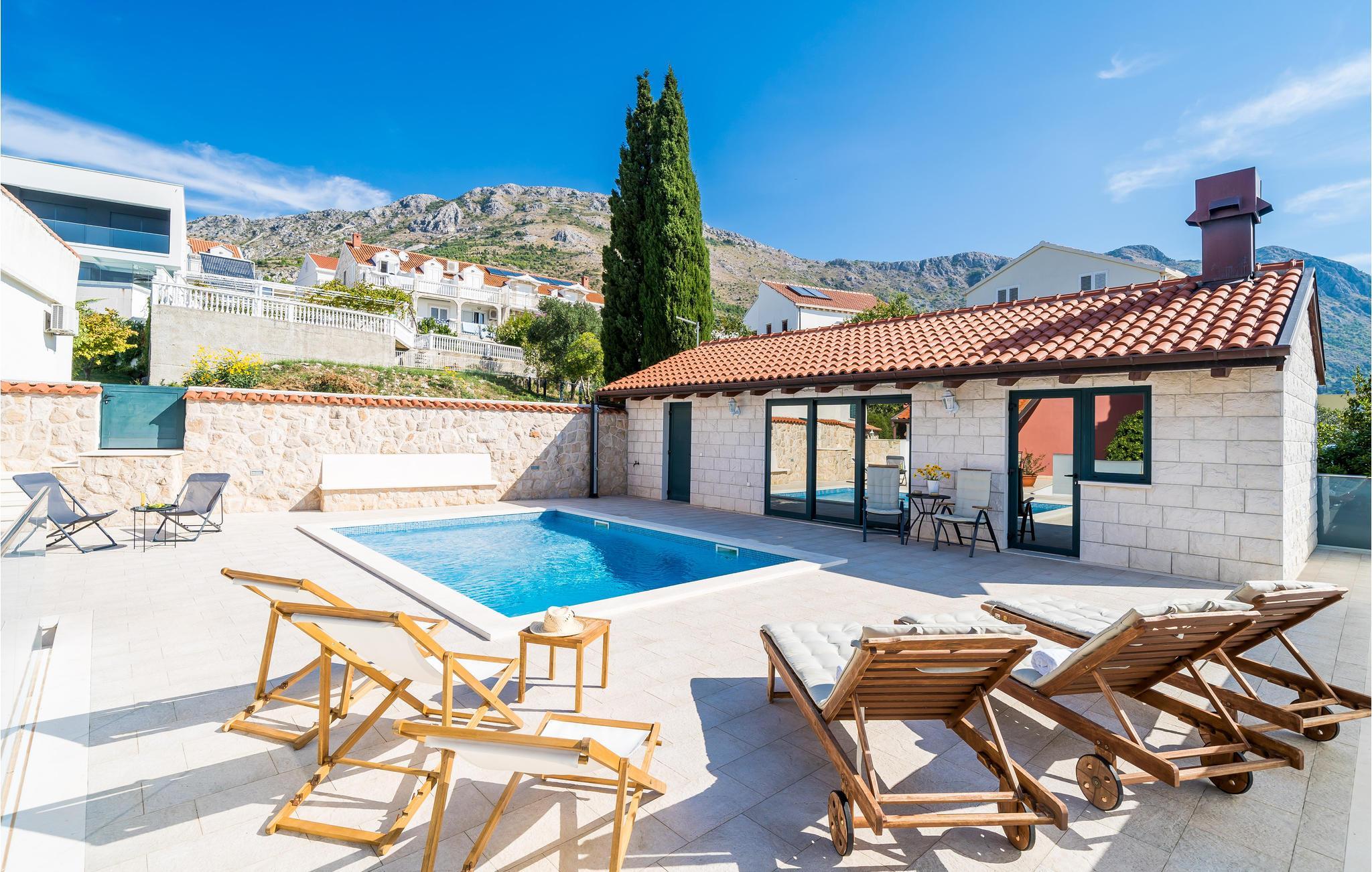 Verbringen Sie einen traumhaften Urlaub in diesem Ferienhaus mit Pool und ansprechenden Außenbereichen.