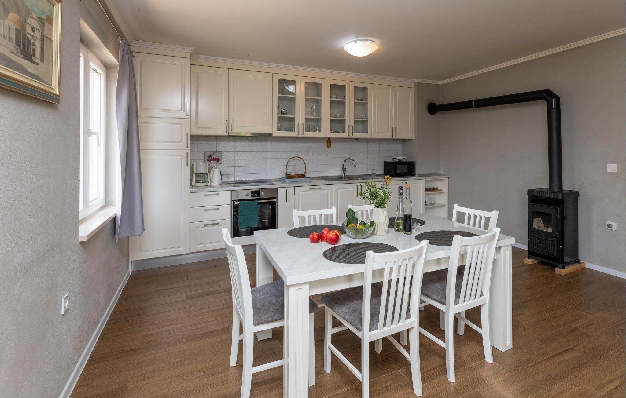 Nutzen Sie das große Sofa für entspannte Stunden oder setzen Sie sich in den gemütlichen Sessel, um ein Buch zu lesen. Die offene Küche ermöglicht Ihnen, Ihre Mahlzeiten mühelos zuzubereiten. Genießen Sie gemeinsame Momente am Esstisch, der ausreichend Platz bietet und direkt am Fenster liegt.