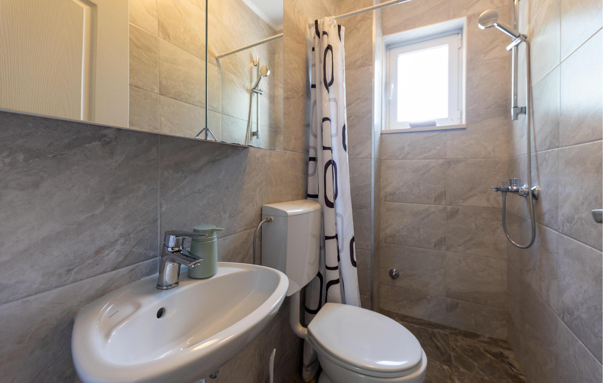Badezimmer 4m2 (nr. 2) - WC. Warmes und kaltes Wasser. Dusche