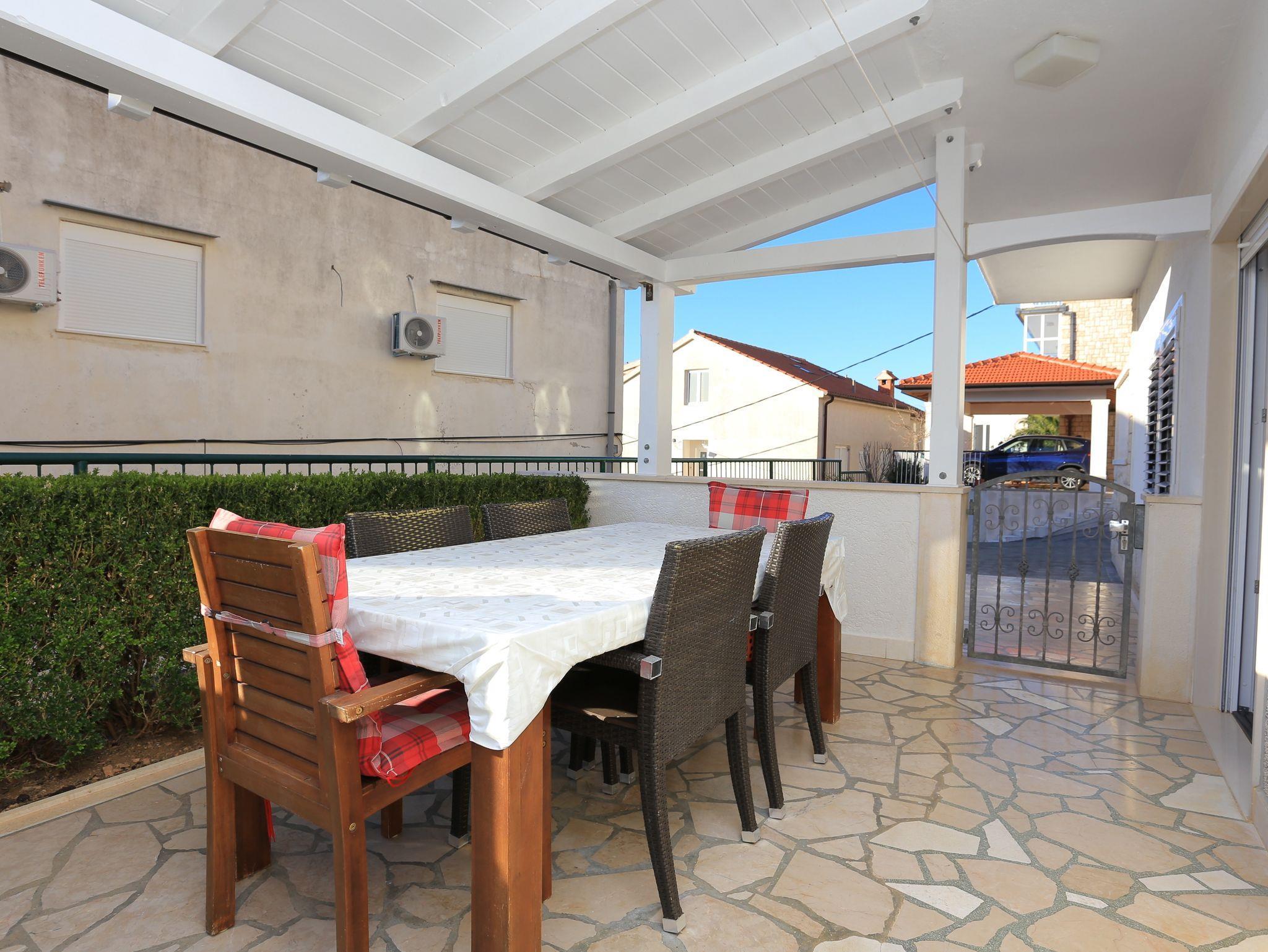Ferienwohnung bietet Platz für 4 Gäste. Die Betten sind in Schlafzimmern, die es 2 gibt, innerhalb einer Gesamtfläche von 70m2, angeordnet. Die Gäste haben eine eigene Terrasse zur Verfügung, auf der sie in warmen Sommernächten genießen können. Das Apartment bietet Meerblick. Für vollen Genuss und Entspannung gibt es einen privaten Grill für Gäste dieser Unterkunft. IM PREIS INBEGRIFFEN: Kurtaxe, Endreinigung, Parkplatz, Internet, Wäschewaschen, Bügeleisen, Bügelbrett. UNVERBINDLICHE ZUSÄTZLICHE KOSTEN: Klimatisierung (5,00 € pro Nacht), 2 Kinderbettchen (5,00 € Person/Tag). Die Verfügbarkeit zusätzlicher Dienstleistungen in Ihrem reservierten Termin und die Preise derselben (falls nicht aufgeführt) müssen im Voraus überprüft werden. Zusätzliche Dienstleistungen die in der Zahlungsaufforderung nicht aufgeführt sind werden direkt beim Vermieter bezahlt, angenommen der Gast nutzt auch diese.