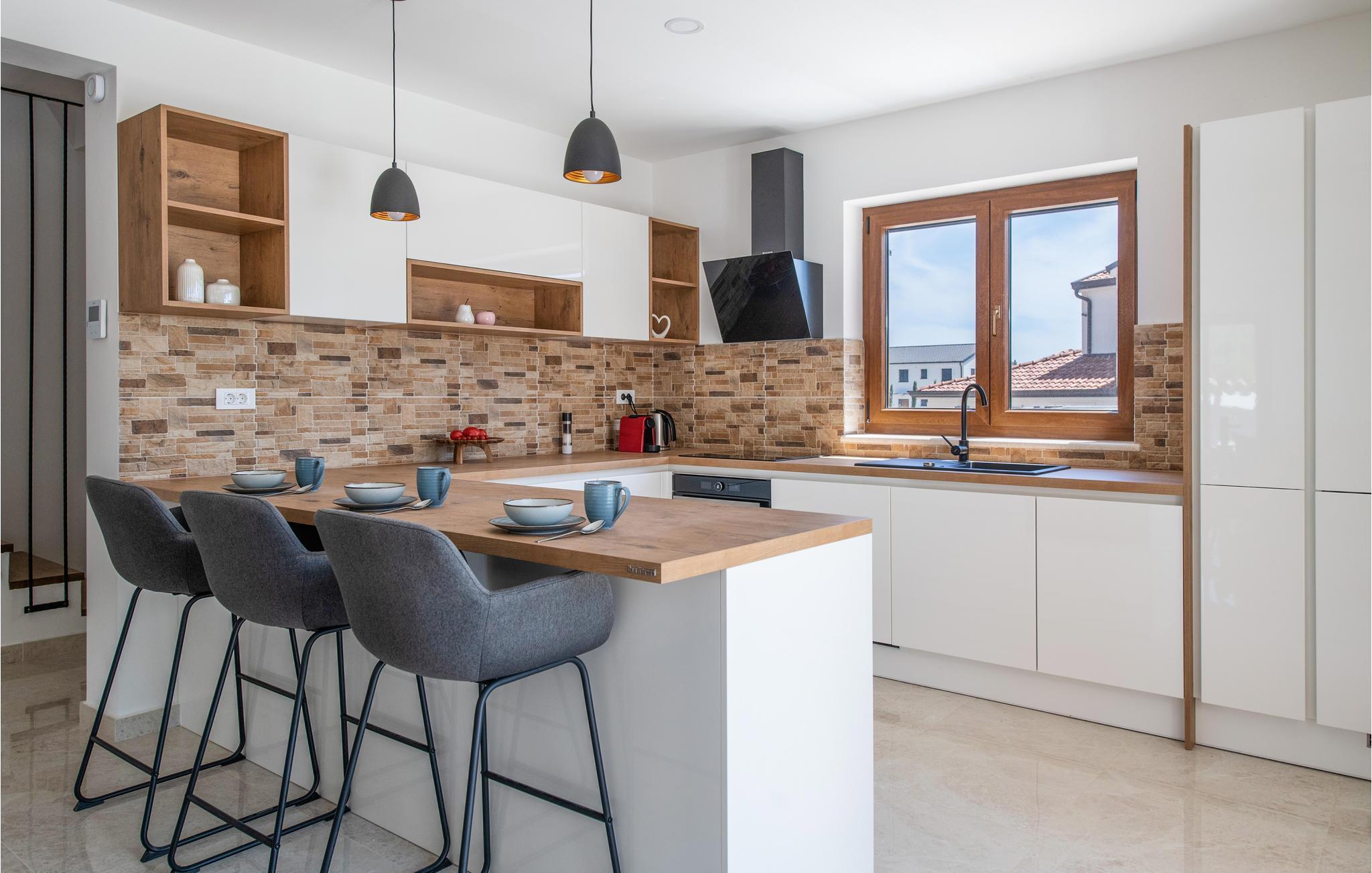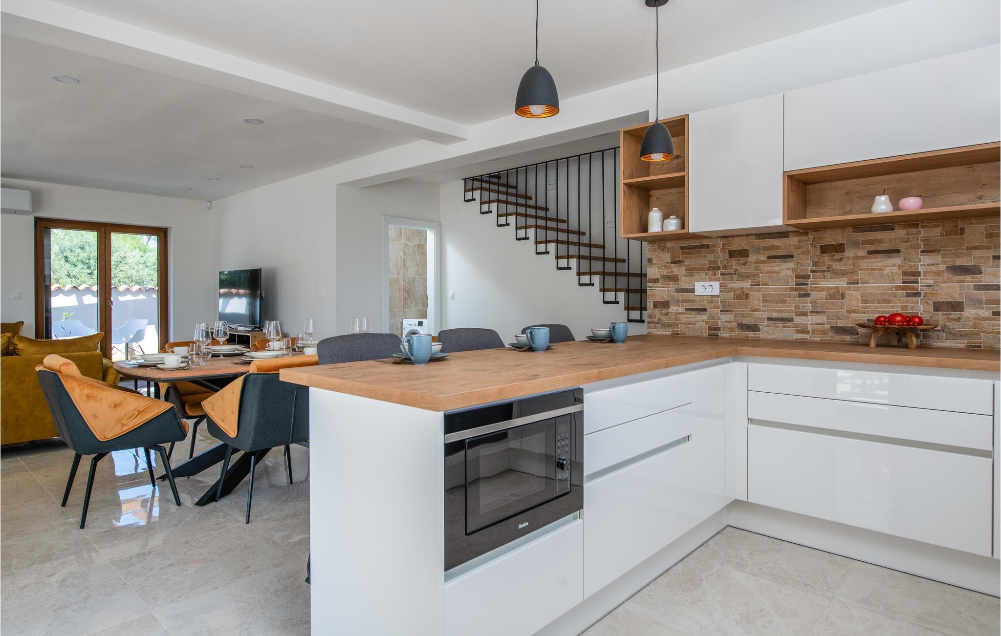Reisen Sie gemeinsam mit Ihrer Großfamilie nach Kavran und genießen den Komfort, das Design und die lichtdurchfluteten Räume der Villa Lilliana in vollen Zügen. Hier können Sie sich entspannen, sich in den gemütlichen Schlafzimmern entspannen und im Erdgeschoss zum Relaxen auf den Sofas, Filmschauen, Spielen am Esstisch oder gemeinsam Kochen in der offenen Küche zusammenkommen. Hochwertige Materialien und geschmackvolle Möbel schaffen ein herrliches Wohngefühl.