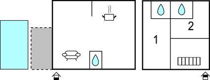 Badezimmer (nr. 2) - WC. Warmes und kaltes Wasser. Dusche