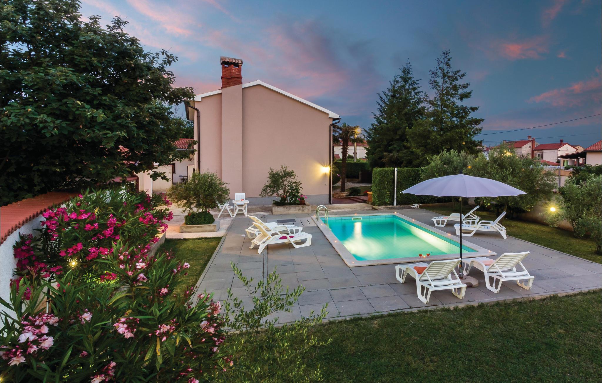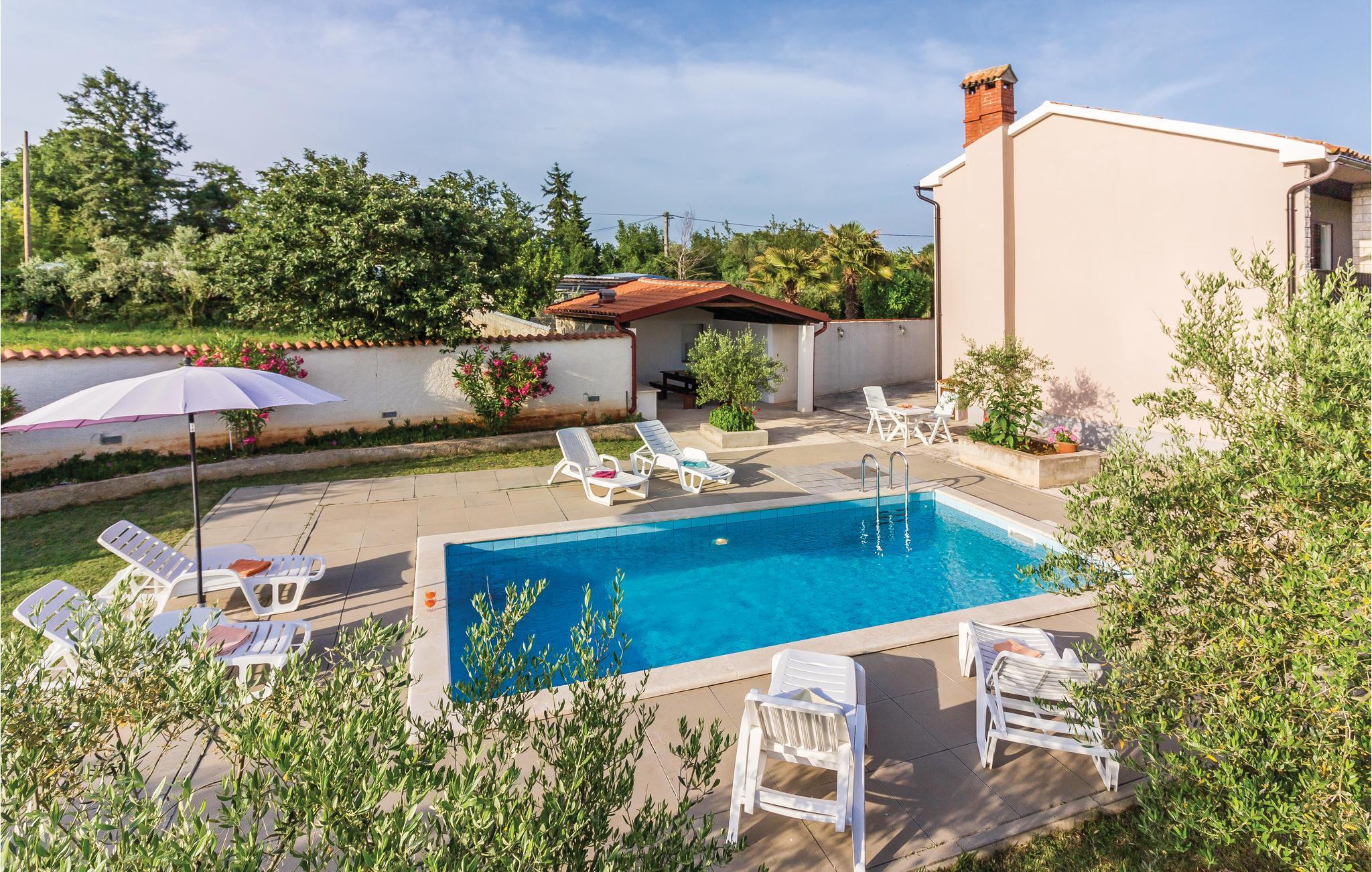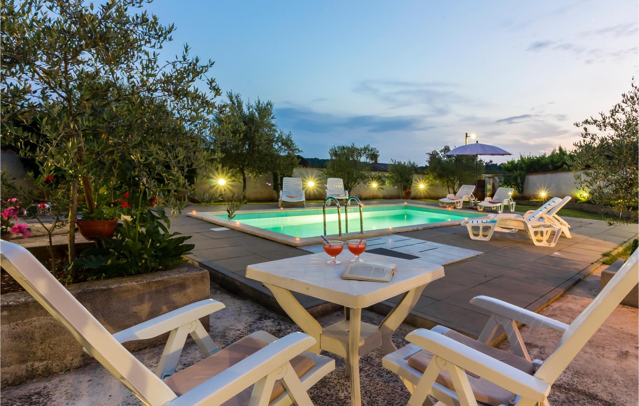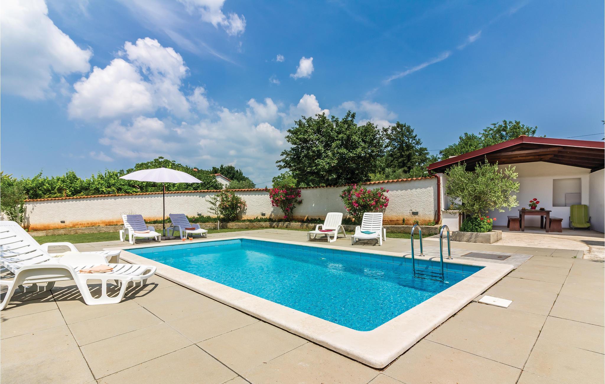 Dieses schöne Ferienhaus mit Pool, umgeben von mediterranen Pflanzen, befindet sich in Šegotici in der Nähe von Duga Uvala. Vor dem Haus befindet sich ein traditioneller istrischer Brunnen, der einst eine wichtige Rolle in der Wasserversorgung übernahm, heute aber nur noch zum Andenken an vergangene Zeiten dient. Das Haus ist nett und komfortabel eingerichtet und besteht aus einer Küche, einem Wohnzimmer, zwei Bädern und drei Schlafzimmern. Im schön angelegten Garten finden Sie den Swimmingpool und eine überdachte Terrasse, auf der Sie abends mit Ihrer Familie oder Freunden gemütlich zusammensitzen können. Die nächsten Strände befinden sich in Duga Uvala. Besuchen Sie unbedingt die antike Stadt Pula mit zahlreichen kulturell-historischen Denkmälern, Museen und Galerien, die einen Besuch wert sind. Für Tagesausflüge empfehlen wir den National Park auf der Brioni Insel, der Sie mit seiner wunderschönen Natur begeistern wird.