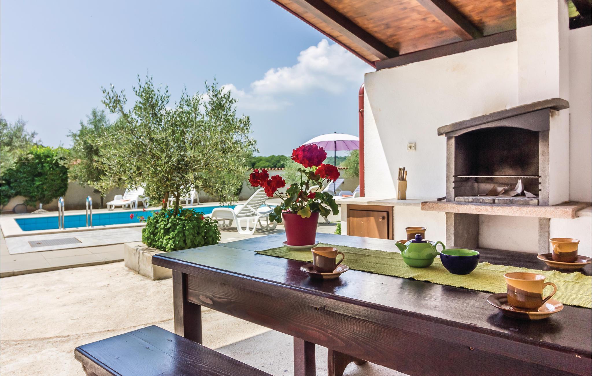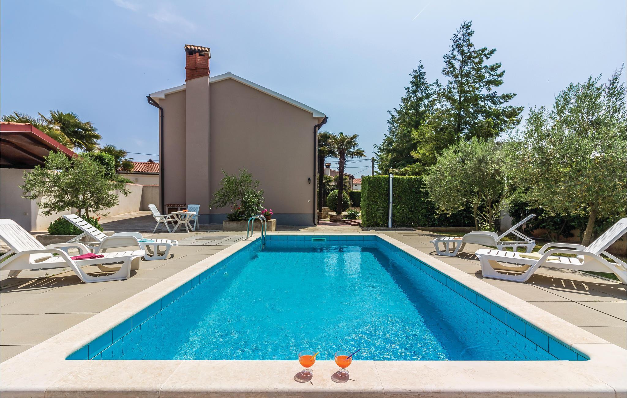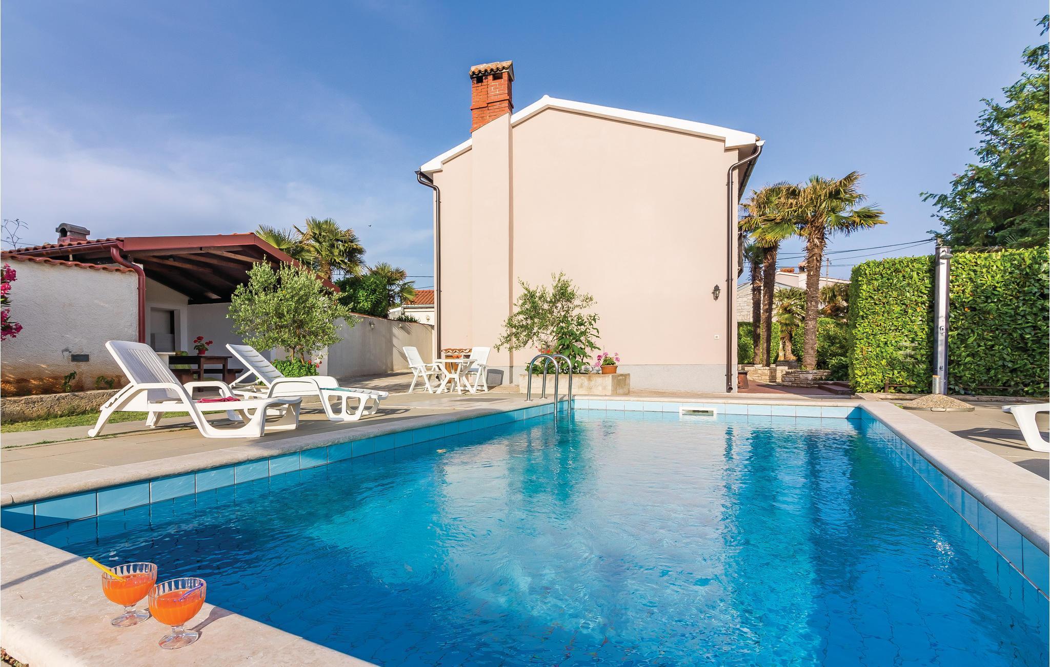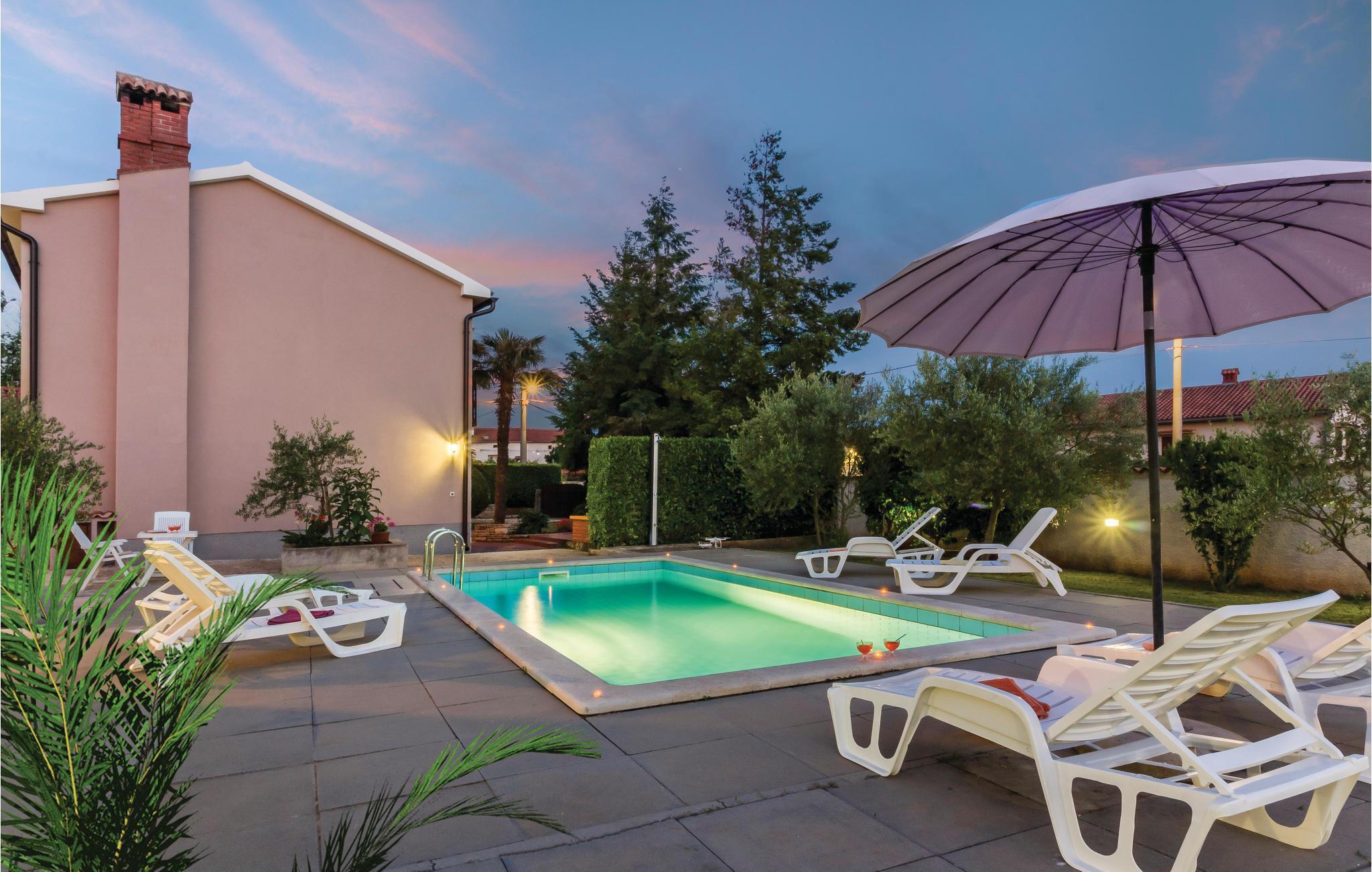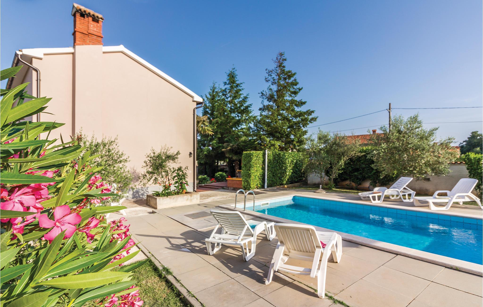 Dieses schöne Ferienhaus mit Pool, umgeben von mediterranen Pflanzen, befindet sich in Šegotici in der Nähe von Duga Uvala. Vor dem Haus befindet sich ein traditioneller istrischer Brunnen, der einst eine wichtige Rolle in der Wasserversorgung übernahm, heute aber nur noch zum Andenken an vergangene Zeiten dient. Das Haus ist nett und komfortabel eingerichtet und besteht aus einer Küche, einem Wohnzimmer, zwei Bädern und drei Schlafzimmern. Im schön angelegten Garten finden Sie den Swimmingpool und eine überdachte Terrasse, auf der Sie abends mit Ihrer Familie oder Freunden gemütlich zusammensitzen können. Die nächsten Strände befinden sich in Duga Uvala. Besuchen Sie unbedingt die antike Stadt Pula mit zahlreichen kulturell-historischen Denkmälern, Museen und Galerien, die einen Besuch wert sind. Für Tagesausflüge empfehlen wir den National Park auf der Brioni Insel, der Sie mit seiner wunderschönen Natur begeistern wird.