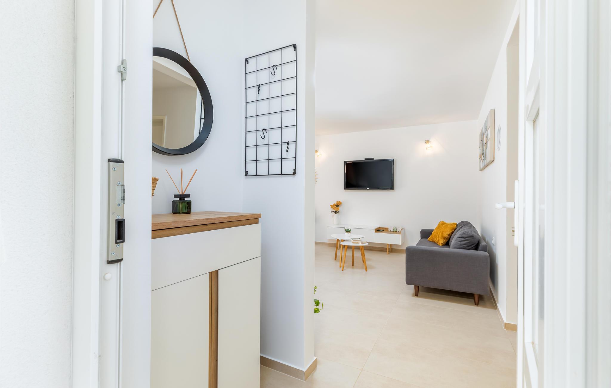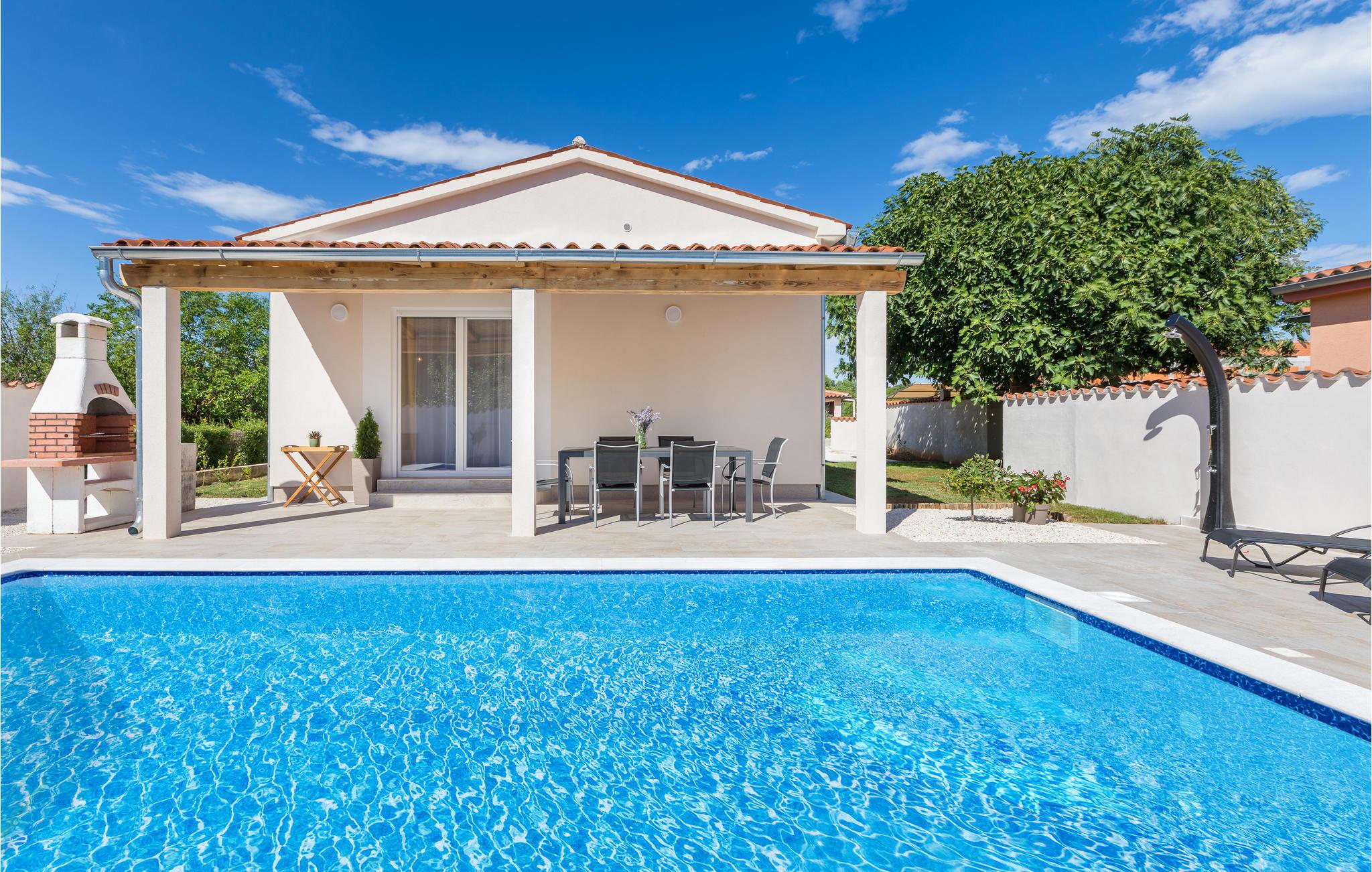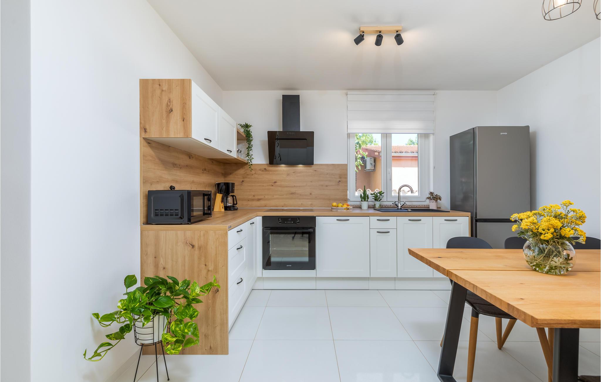 Hier begrüßt Sie ein unglaublich helles Ferienhaus mit einem besonders freundlichen Ambiente, welches Ihren Urlaub neben Entspannung und Ruhe noch um eine Ecke verbessern wird. Die Einrichtung ist modern, und aufeinander abgestimmt, sodass die gelben Farbakzente harmonisch mit dem Rest des Inventars mischen. Genießen Sie auch den großen Bereich im Freien, den Sie vom Wohnraum aus erreichen. Hier waren Sonnenliegen, ein privater Außenpool und ein Grill auf Sie, um sich jederzeit erfrischen zu können, gemeinsam Sommerabende ausklingen zu lassen und die Zeit mit einem Nickerchen oder einem spannenden Roman zu verbringen.