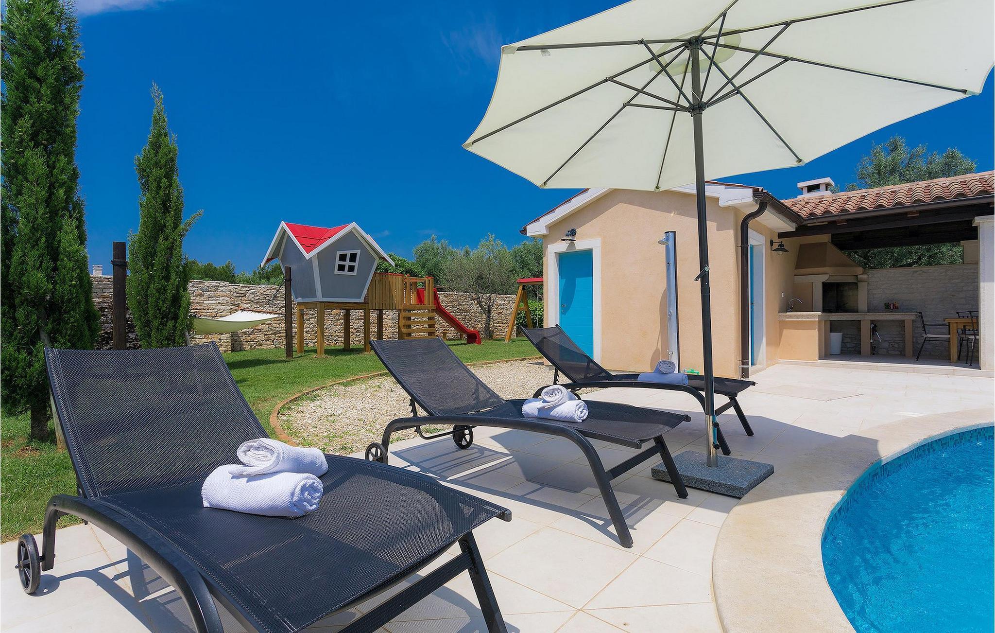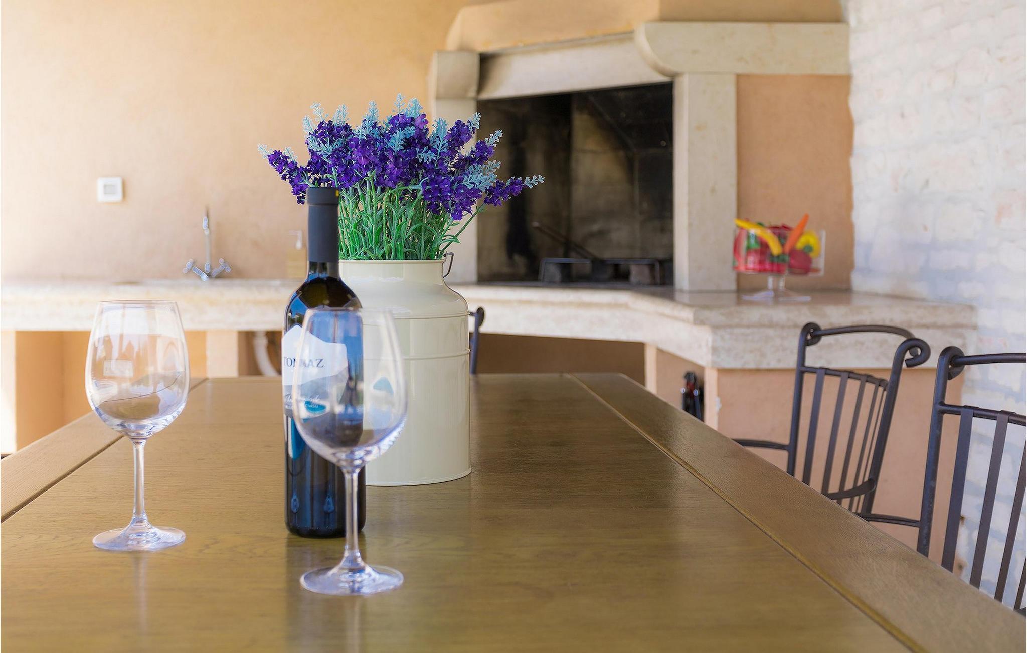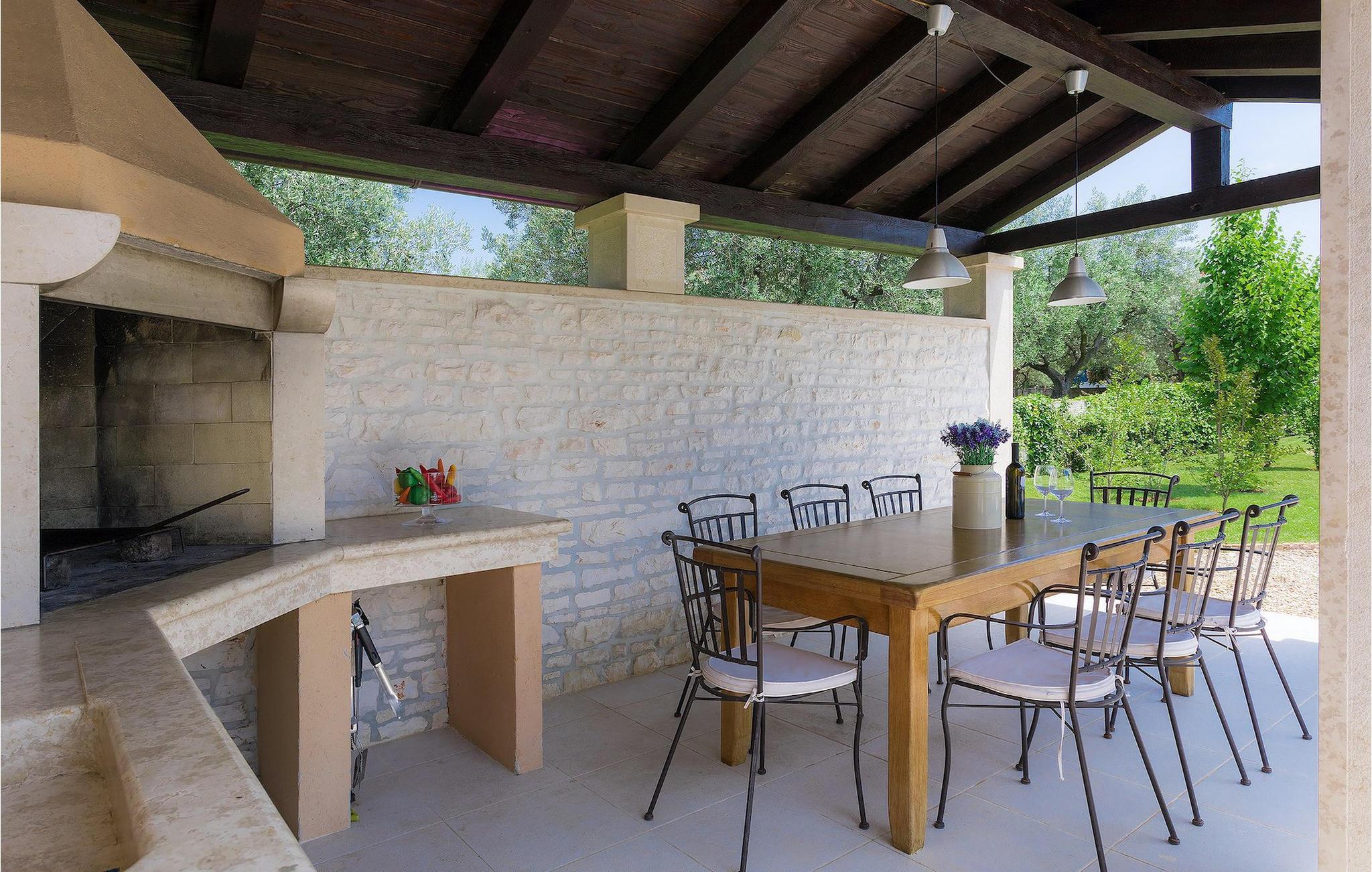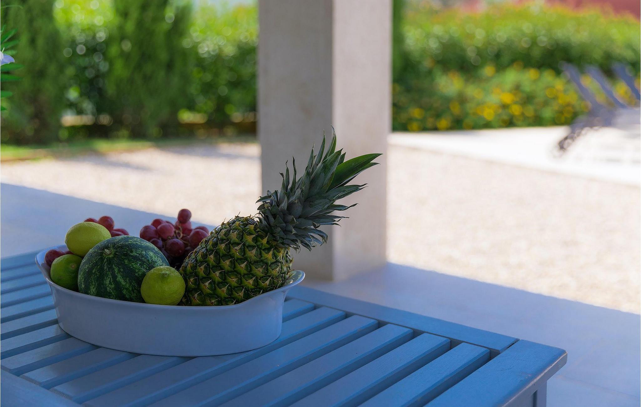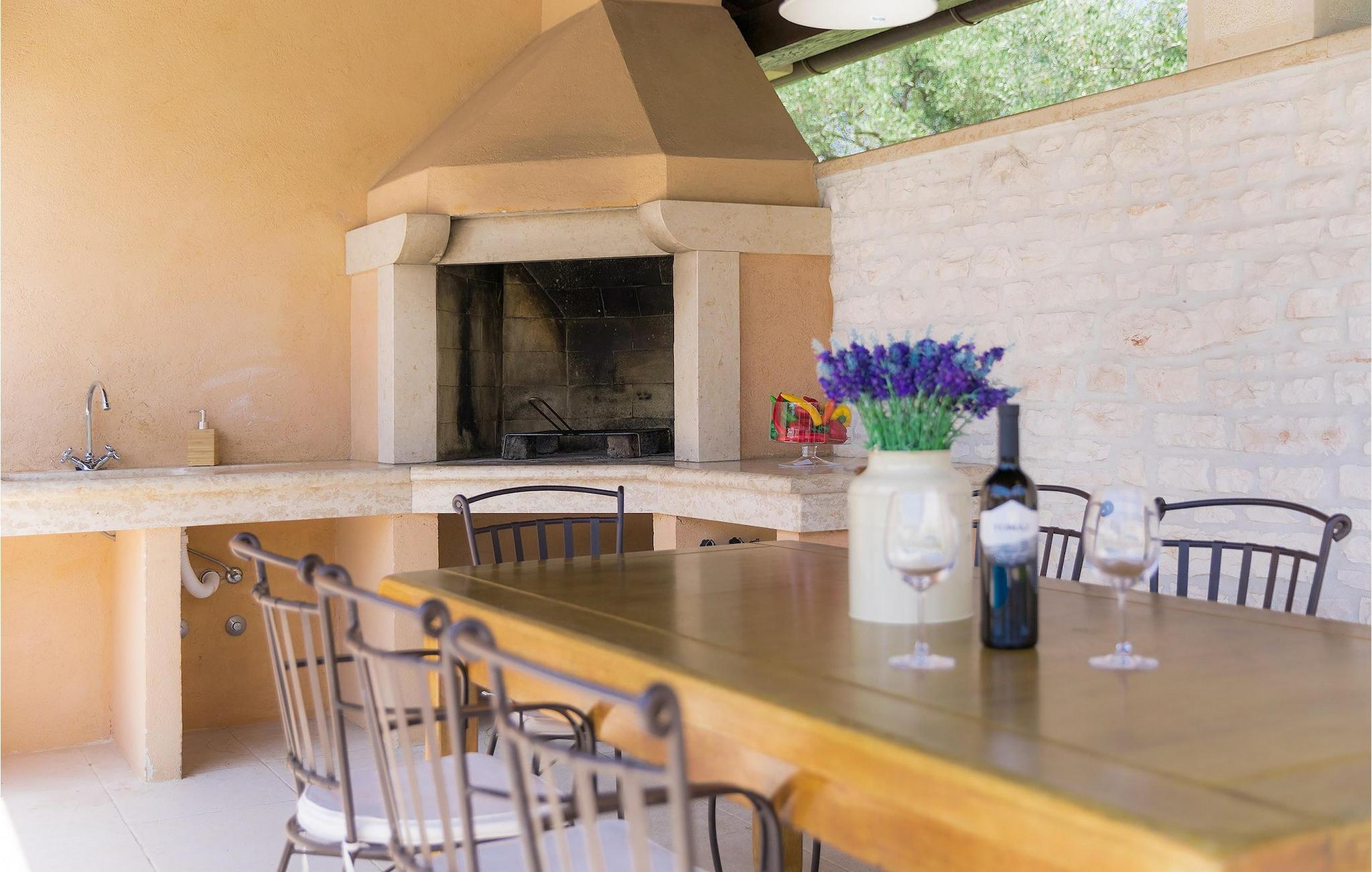 Die Küche ist mit allem ausgestattet, was Sie für die Zubereitung köstlicher Mahlzeiten benötigen. Wenn Sie Ihre Mahlzeiten im Freien einnehmen möchten, können Sie dies sehr gerne tun. Außerhalb der Villa ist ein Grill, sowie ein großer Essbereich vorhanden. Genießen Sie Ihren Kaffee oder Tee auf der Terrasse und entspannen Sie am Pool auf den Liegestühlen.