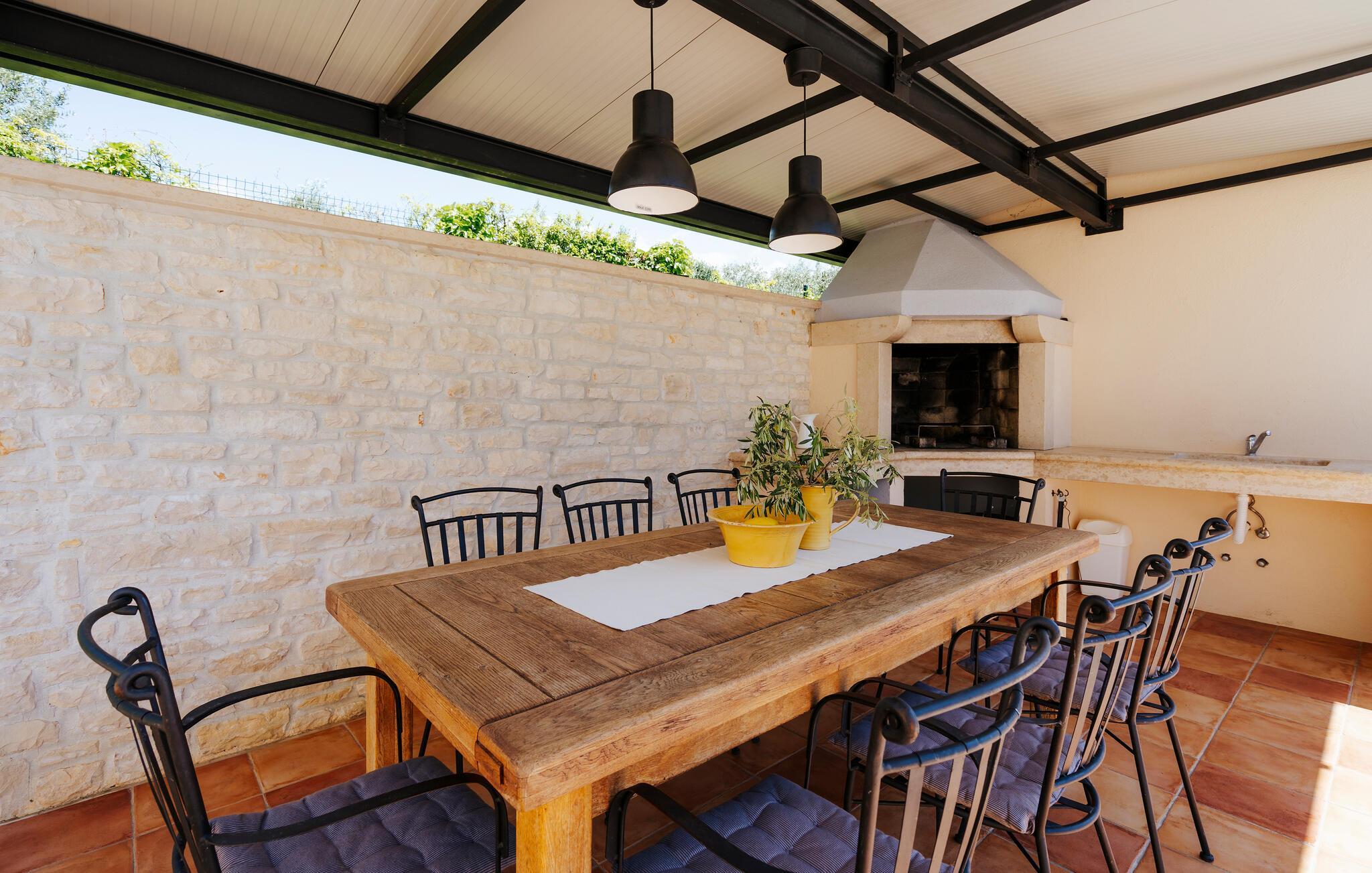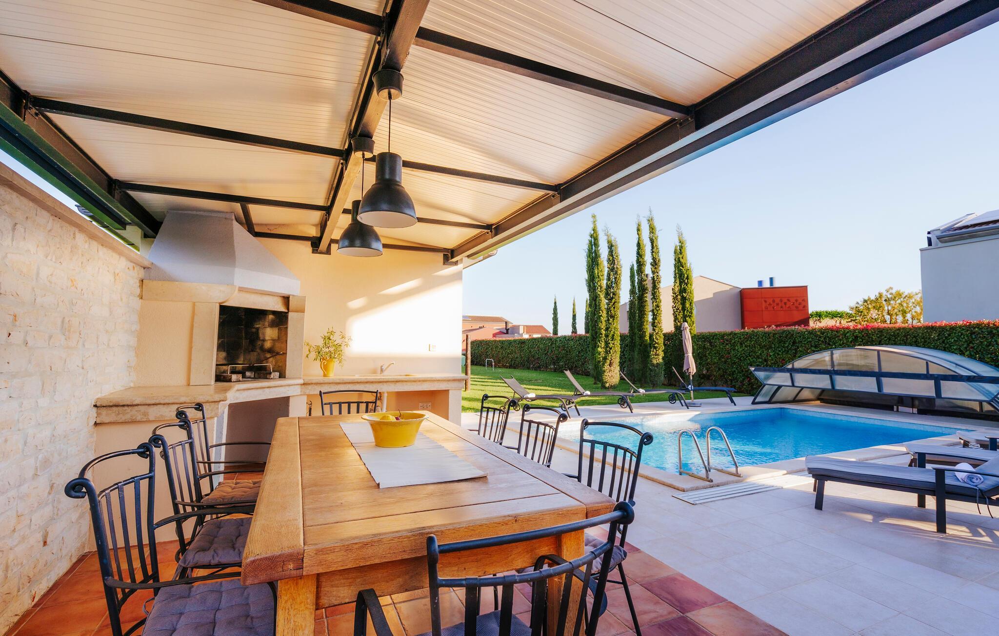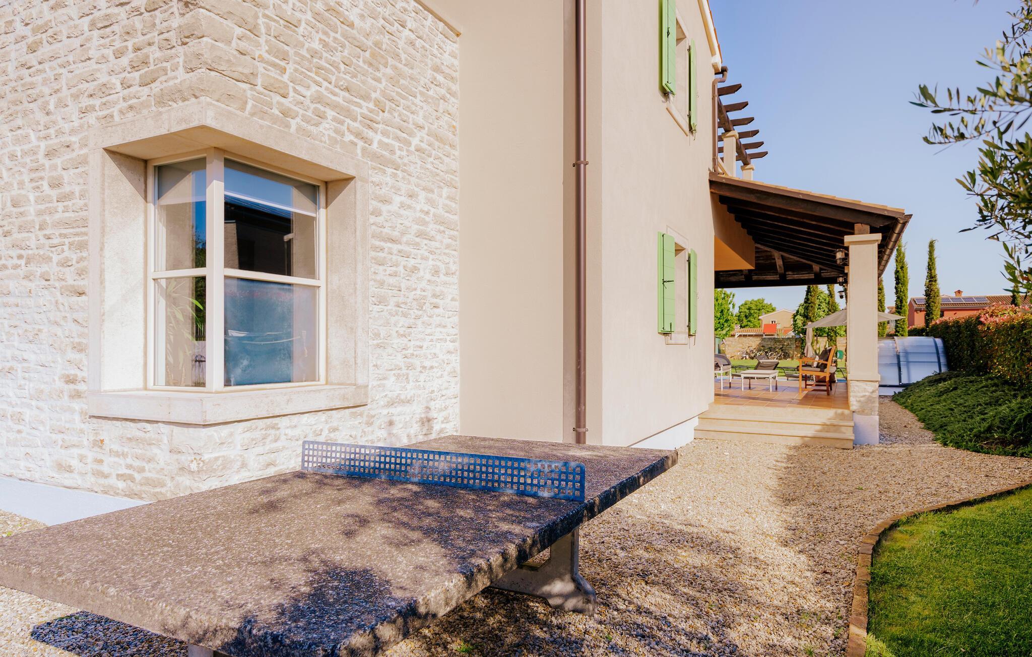 Diese außergewöhnliche Villa befindet sich in der kleinen schönen Stadt Fazana, nur einen Katzensprung von Pula und dem Nationalpark Brijuni entfernt. Die Villa Matia bietet Platz für bis zu 8 Personen in vier hübsch eingerichteten Schlafzimmern. Das schön eingerichtete offene Erdgeschoss besteht aus einer voll ausgestatteten Küche mit rustikalen Elementen, einem Essbereich und einem hellen Wohnbereich. Im Erdgeschoss finden Sie auch ein gut ausgestattetes Schlafzimmer mit eigenem Bad. Die Treppe führt Sie in den ersten Stock, wo Sie die anderen drei Schlafzimmer mit eigenem Bad finden. Von einem Schlafzimmer aus haben Sie direkten Zugang zu einer kleinen Terrasse, einem privaten Ort, von dem aus Sie die schöne Aussicht auf die Umgebung genießen können. Wenn Sie Ihre Zeit gerne draußen verbringen, ist der Außenbereich der perfekte Ort. Vor dem Haus finden Sie einen einladenden Poolbereich und Sonnenliegen, auf denen Sie an warmen Sommertagen bei einem kalten Getränk entspannen können. Die Villa Matia bietet einen kleinen Wellnessraum neben dem Haupthaus, in dem Sie einfach in der Sauna entspannen können. Der Außenbereich verfügt auch über einen überdachten Essbereich, der sich perfekt für ein Familientreffen eignet, und einen Holzkohlengrill, auf dem Sie köstliche Mahlzeiten für Ihre Lieben zubereiten können. Während Sie mit Ihren Freunden zu Abend essen, können Ihre Kinder auf dem großen Rasen und dem Kinderspielplatz spielen. Die Villa Matia bietet Ihnen viele Möglichkeiten, aktiv zu bleiben. Hier finden Sie Tischtennis, Darts, aber auch 4 Fahrräder, mit denen Sie die weitere Umgebung entdecken können. Diese charmante Villa ist der perfekte Ort für einen Familienurlaub, wo Sie sich entspannen, aber auch aktiv bleiben können, während Sie die verborgenen Schätze Istriens erkunden.Fazana: Man hat Herzklopfen in diesem steinernen Nest, man ist stolz auf die lange Fischertradition und erfreut über die Stimmung beim ersten Händeschütteln, bei dem jeder Gast zum Nachbarn und Freund und somit Teil einer großen Familie wird! Die Stadt Fazana, die sich in der Nähe von Pula befindet, ist mit seinen Stränden, Pinienwäldern, Strandboulevards, Restaurants am Meer ist der perfekte Ort für Erholung und Vergnügen: Es ist auch der Ausgangshafen für die Inseln Brijuni – den Nationalpark mit den Attributen eines irdischen Paradieses. Der Zauber, den einst der Dichter und Regisseur Pier Paolo Pasolini verspürte, zeugt von der spontanen Lebensweise, der bekannten Gastfreundschaft und einem herzlichen Willkommen!