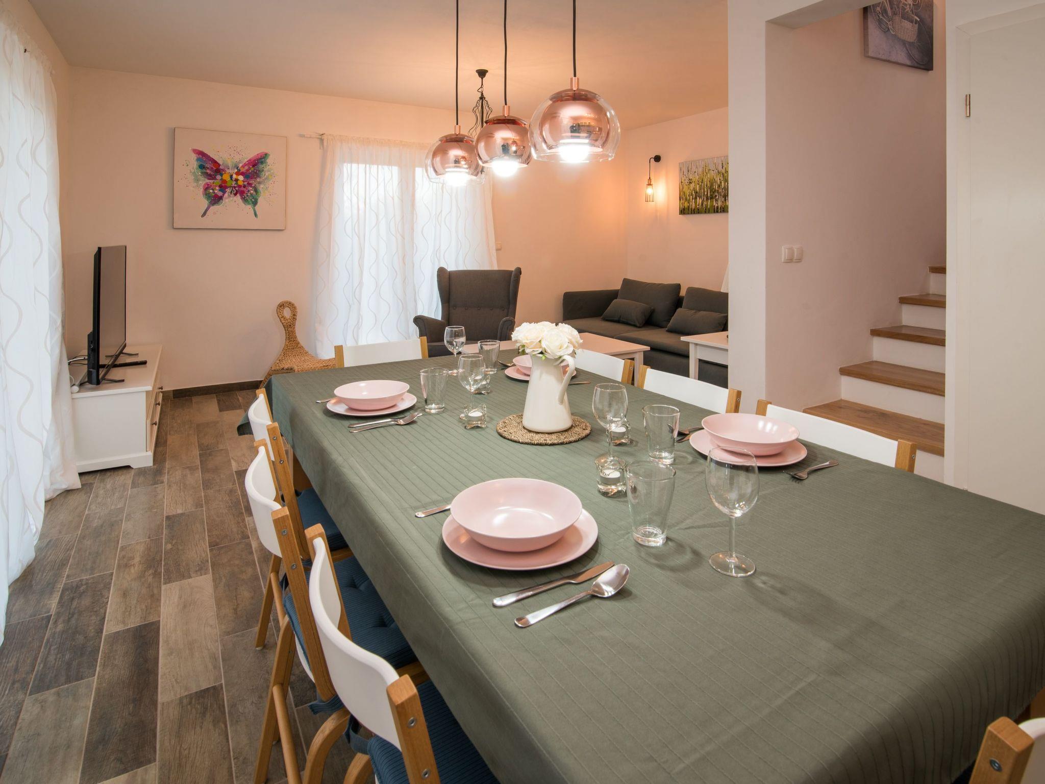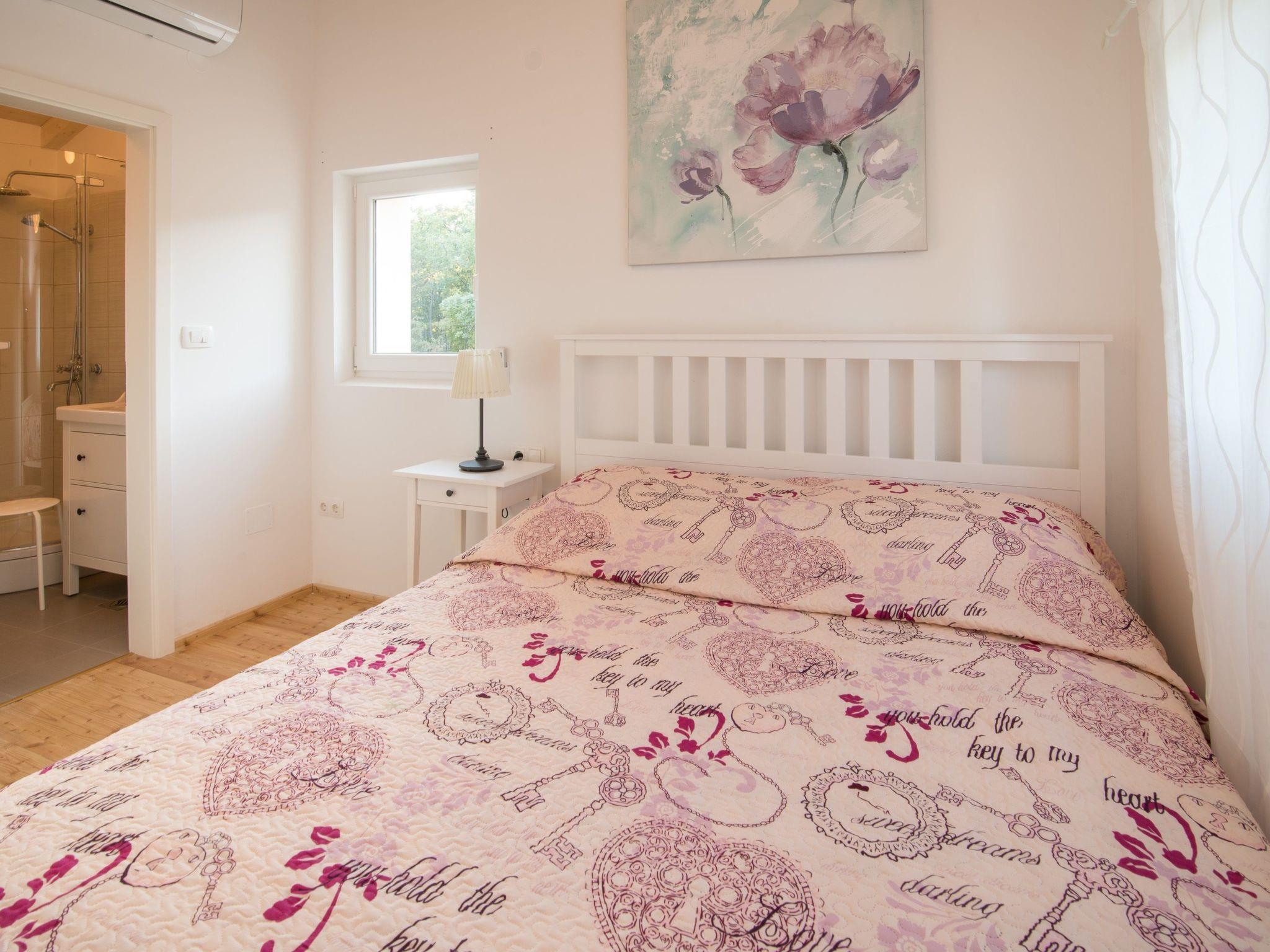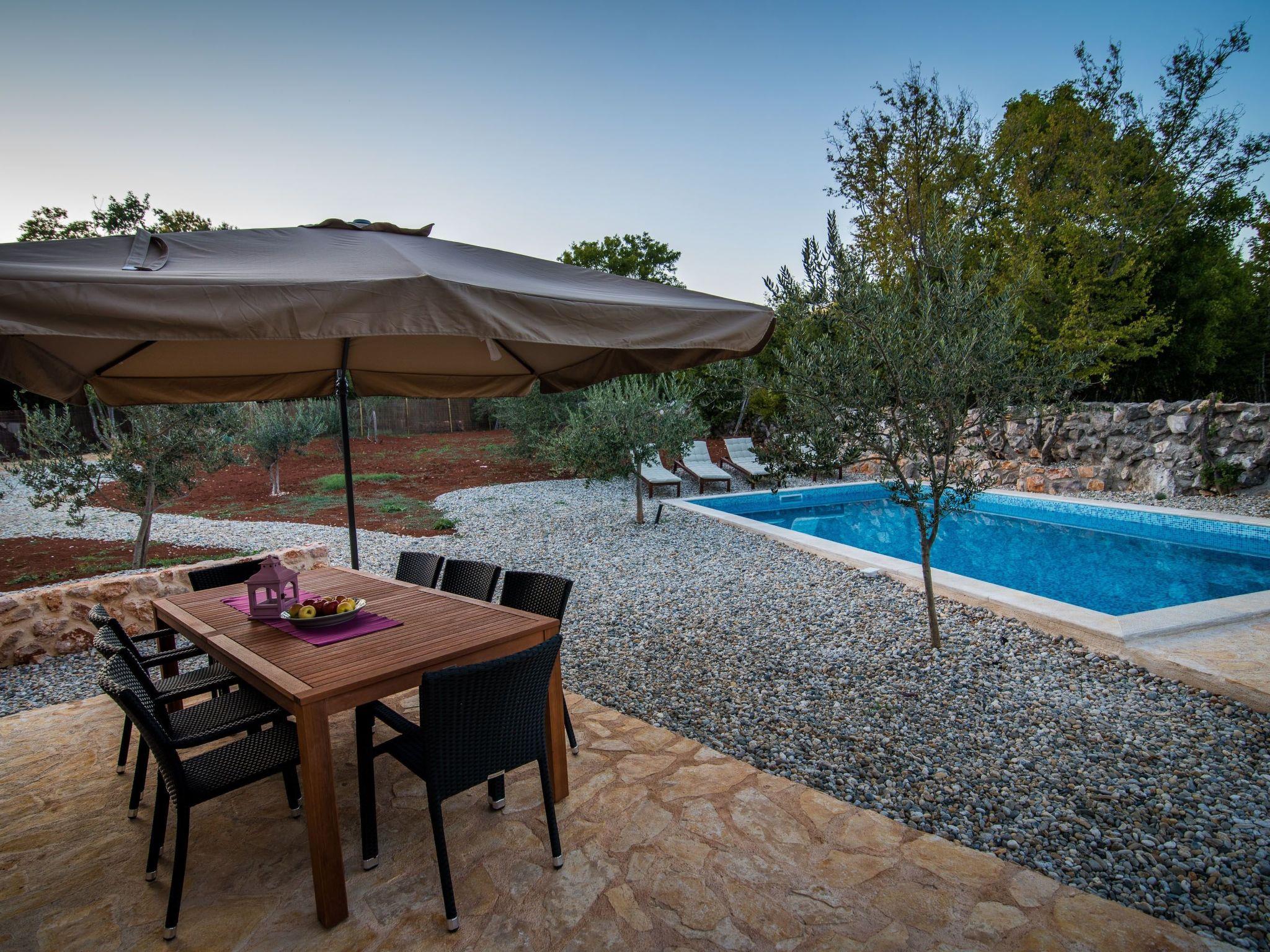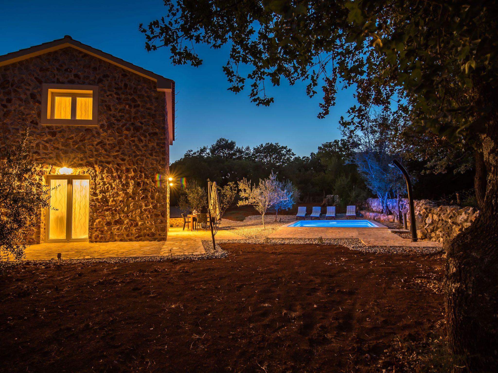Im Dorf Risika, auf der Insel Krk, finden Sie diese romantische Steinvilla. Die Villa befindet sich in einer ruhigen Gegend und ist von hohen Bäumen und Olivenbäumen umgeben.