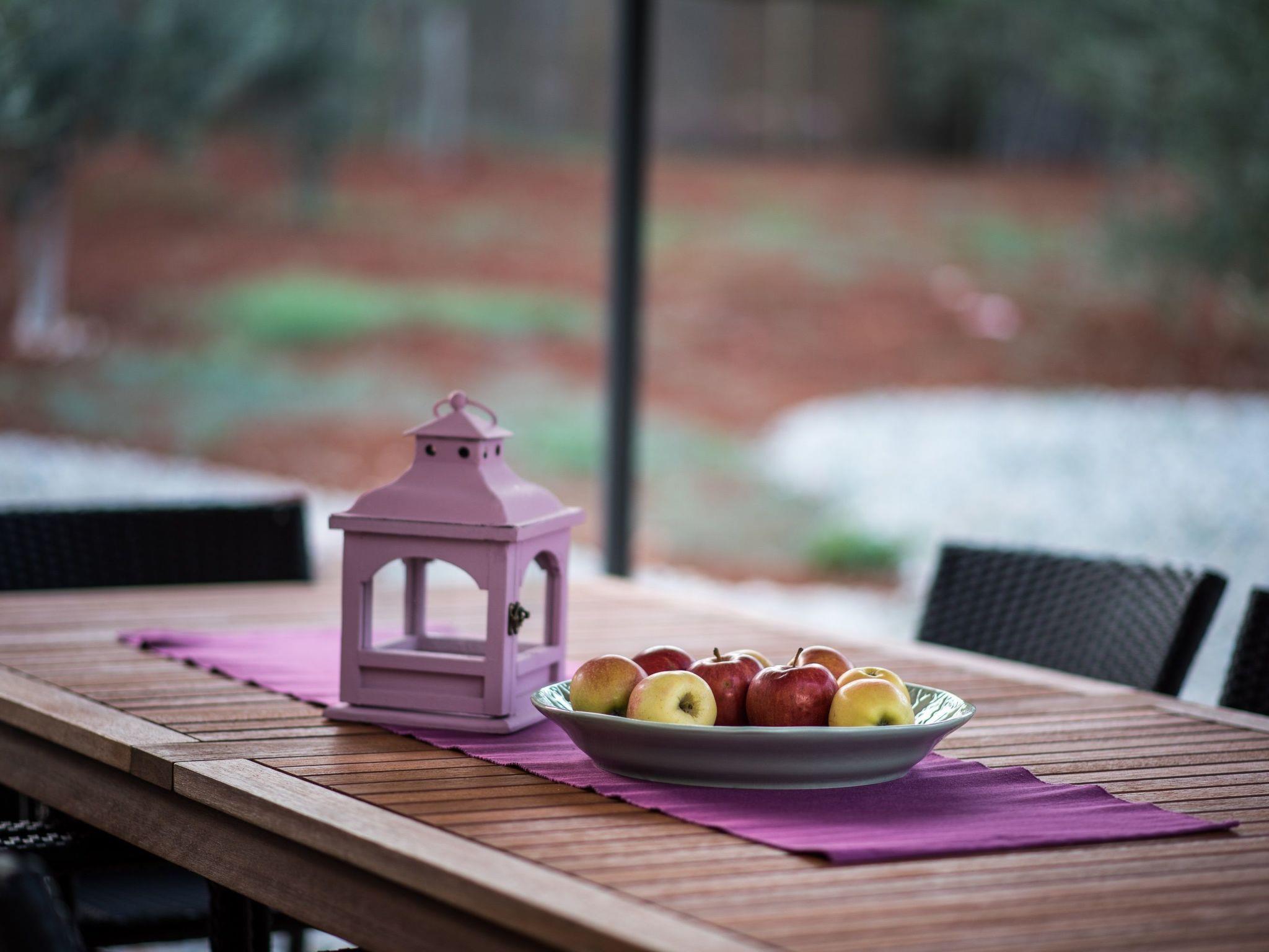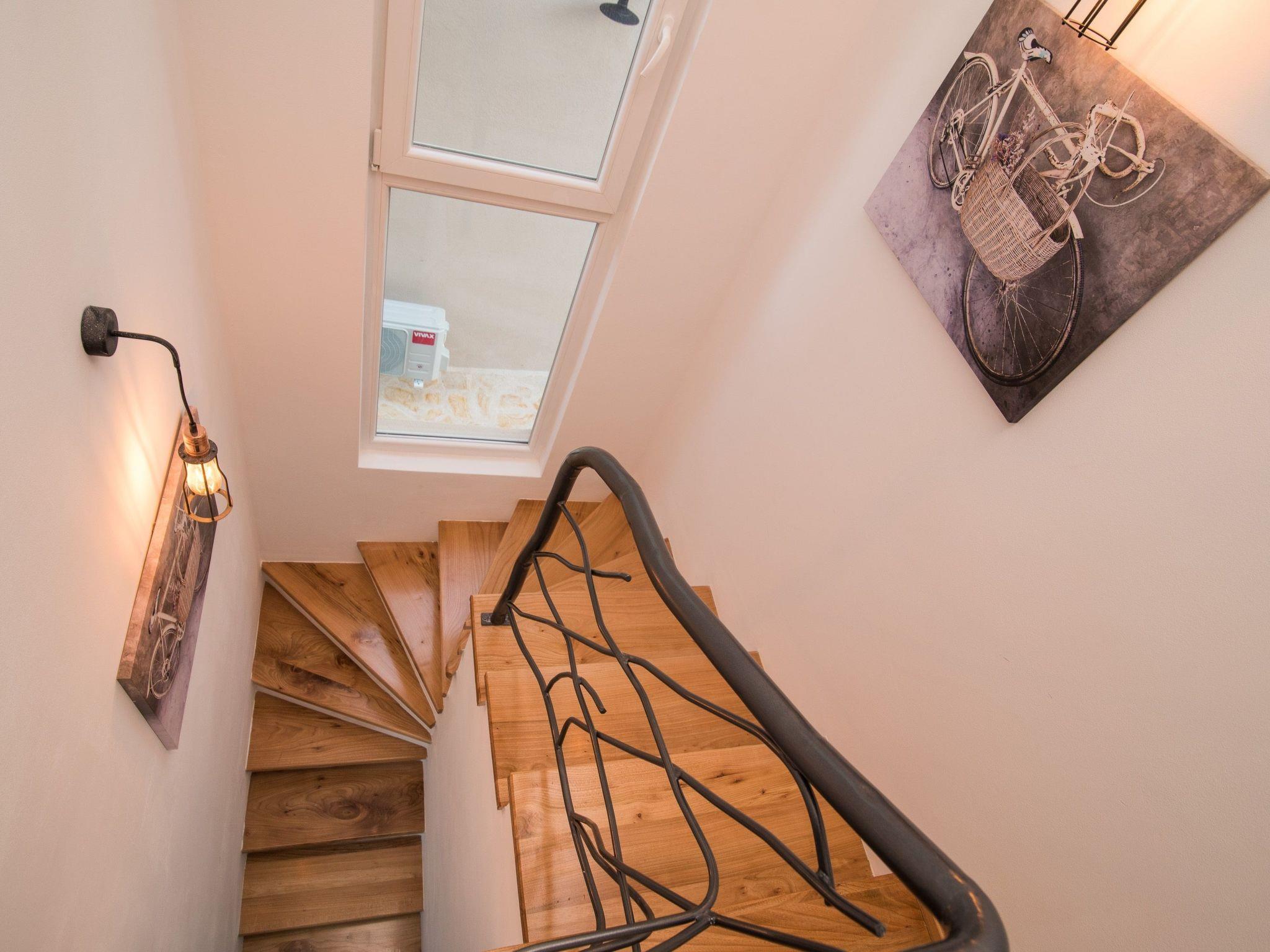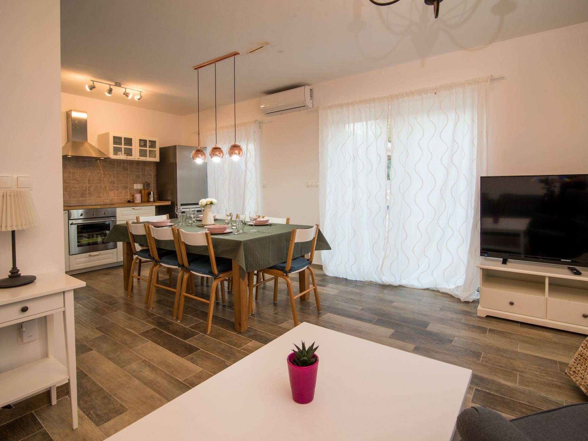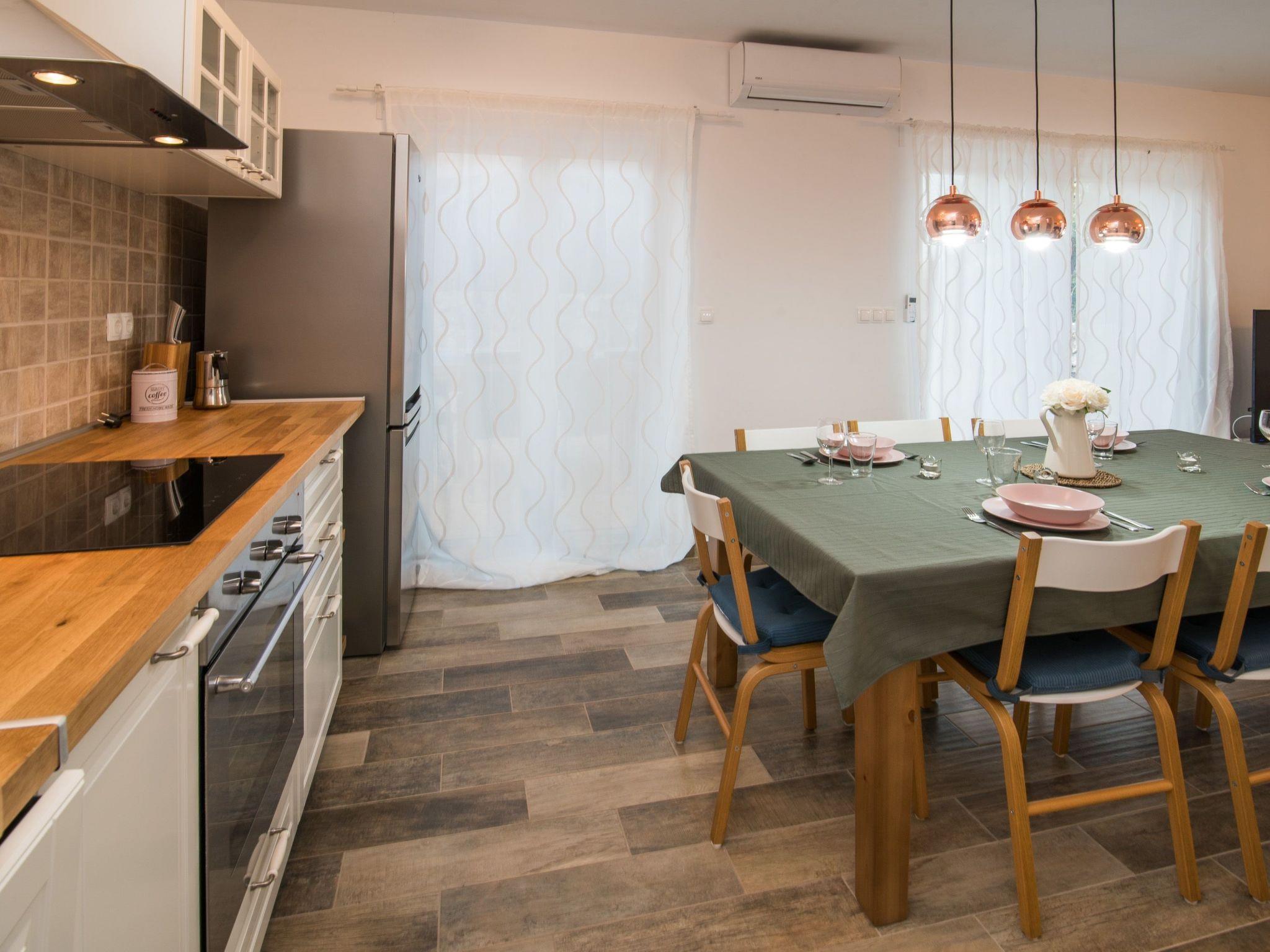 Im Dorf Risika, auf der Insel Krk, finden Sie diese romantische Steinvilla. Die Villa befindet sich in einer ruhigen Gegend und ist von hohen Bäumen und Olivenbäumen umgeben.