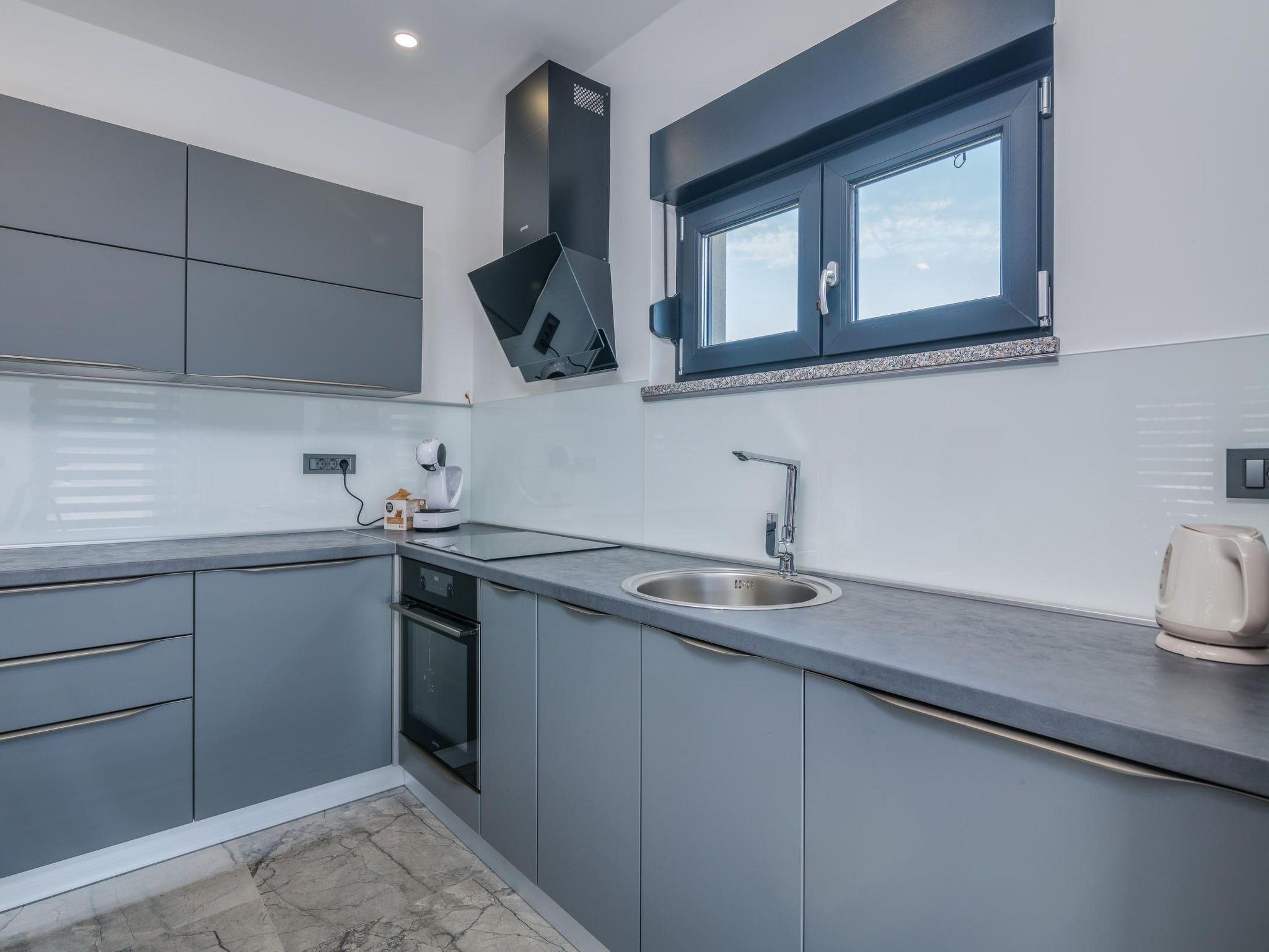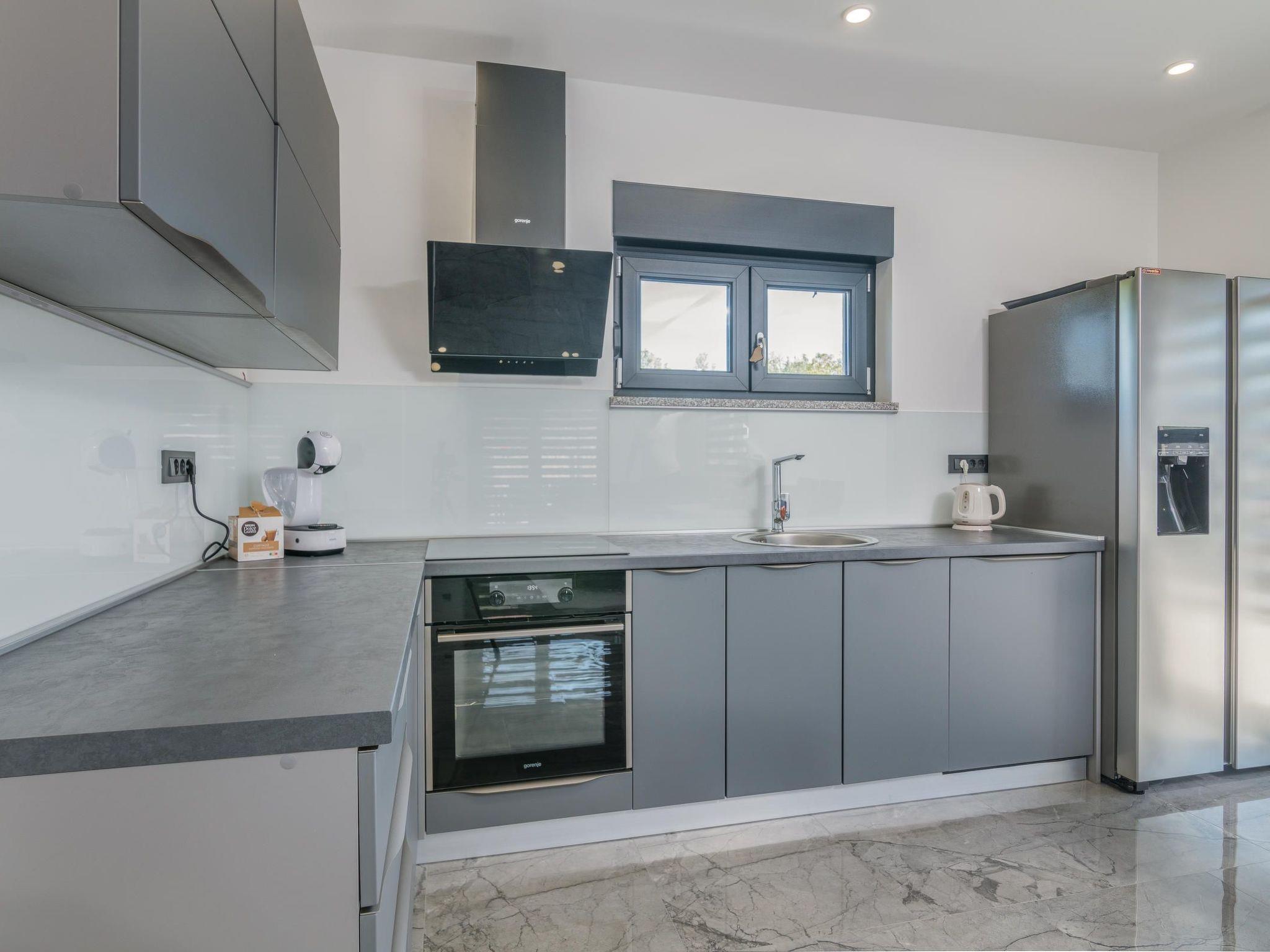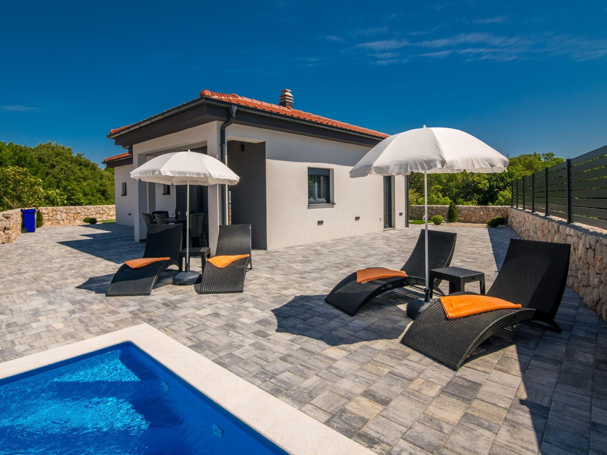 Villa Enie, eine neu gebaute, moderne Villa in Garica in der Nähe von Vrbnik, verfügt über einen eigenen Swimmingpool und bietet Platz für bis zu sechs Personen. Sie liegt nur wenige Autominuten von der schönen Stadt Krk entfernt, wo Sie die Altstadt und die schönen Strände besuchen können, und von Vrbnik, das für seine lokalen Weine und lokalen Souvenirläden bekannt ist. Die Villa Enie befindet sich vollständig im Erdgeschoss und bietet einen herrlichen Blick auf das Grün und den Wald, den Sie am meisten genießen werden, wenn Sie Ihren Morgenkaffee in dieser friedlichen Umgebung trinken. Das Haus besteht aus einer geräumigen Küche mit Esszimmer und Wohnzimmer, zwei Doppelschlafzimmern, einem Einzelzimmer und zwei kompletten Badezimmern mit Dusche. Es gibt auch eine überdachte Terrasse mit Blick auf den Pool. Im Innenhof der Villa Enie gibt es einen privaten Swimmingpool und einen Bereich mit Liegestühlen, sowie eine Außendusche und einen Grill. Villa Enie ist klimatisiert, hat WiFi und einen privaten Parkplatz für mehrere Autos.