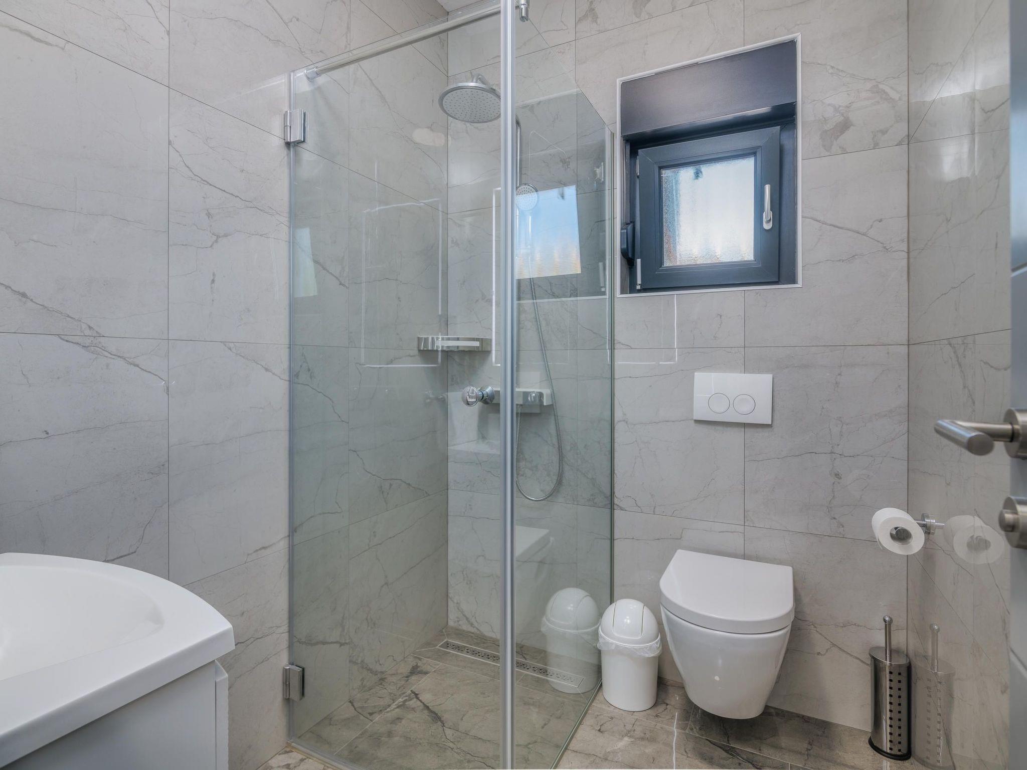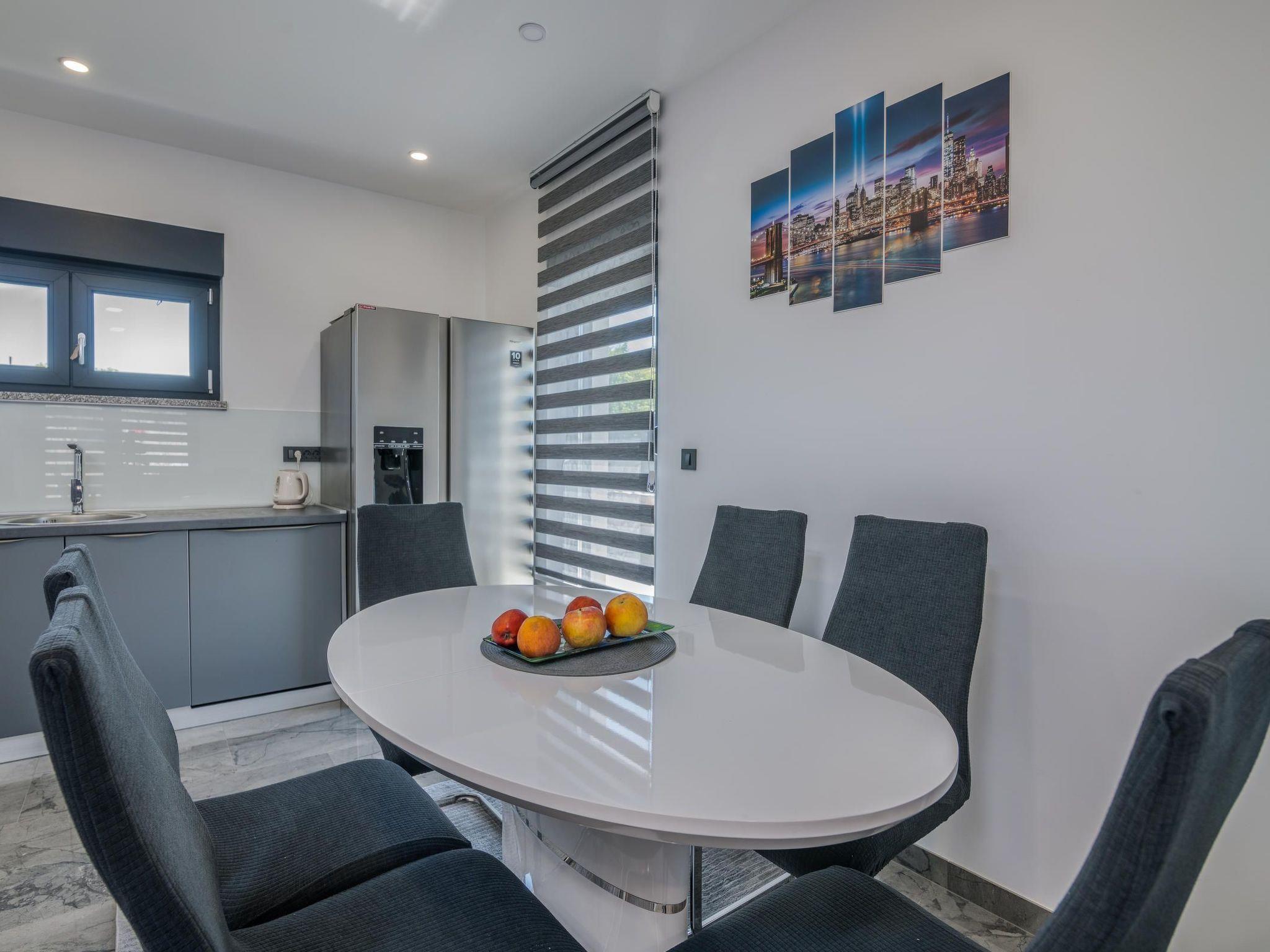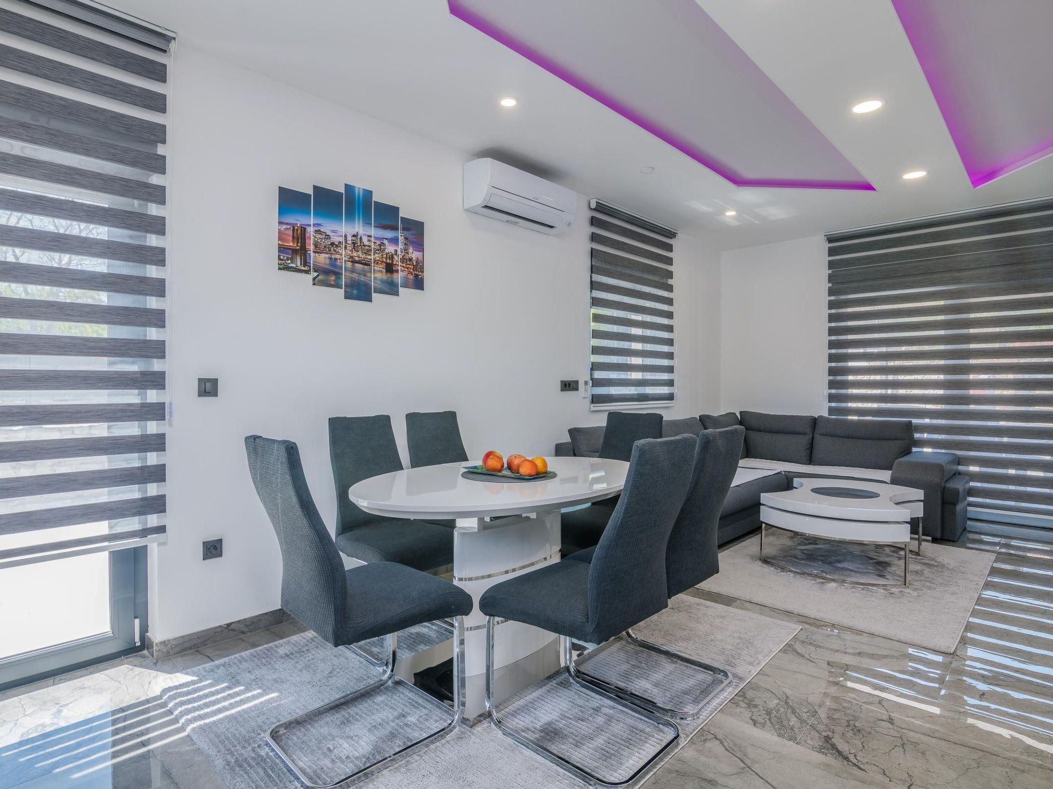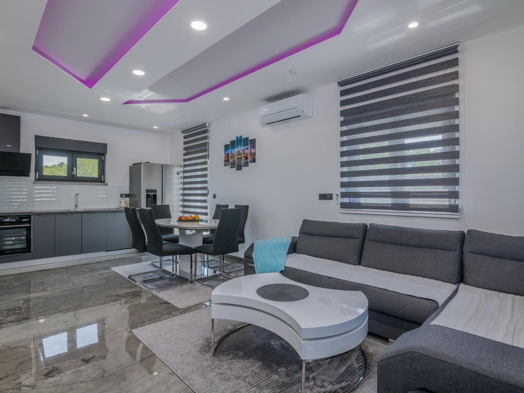 Villa Enie, eine neu gebaute, moderne Villa in Garica in der Nähe von Vrbnik, verfügt über einen eigenen Swimmingpool und bietet Platz für bis zu sechs Personen. Sie liegt nur wenige Autominuten von der schönen Stadt Krk entfernt, wo Sie die Altstadt und die schönen Strände besuchen können, und von Vrbnik, das für seine lokalen Weine und lokalen Souvenirläden bekannt ist. Die Villa Enie befindet sich vollständig im Erdgeschoss und bietet einen herrlichen Blick auf das Grün und den Wald, den Sie am meisten genießen werden, wenn Sie Ihren Morgenkaffee in dieser friedlichen Umgebung trinken. Das Haus besteht aus einer geräumigen Küche mit Esszimmer und Wohnzimmer, zwei Doppelschlafzimmern, einem Einzelzimmer und zwei kompletten Badezimmern mit Dusche. Es gibt auch eine überdachte Terrasse mit Blick auf den Pool. Im Innenhof der Villa Enie gibt es einen privaten Swimmingpool und einen Bereich mit Liegestühlen, sowie eine Außendusche und einen Grill. Villa Enie ist klimatisiert, hat WiFi und einen privaten Parkplatz für mehrere Autos.