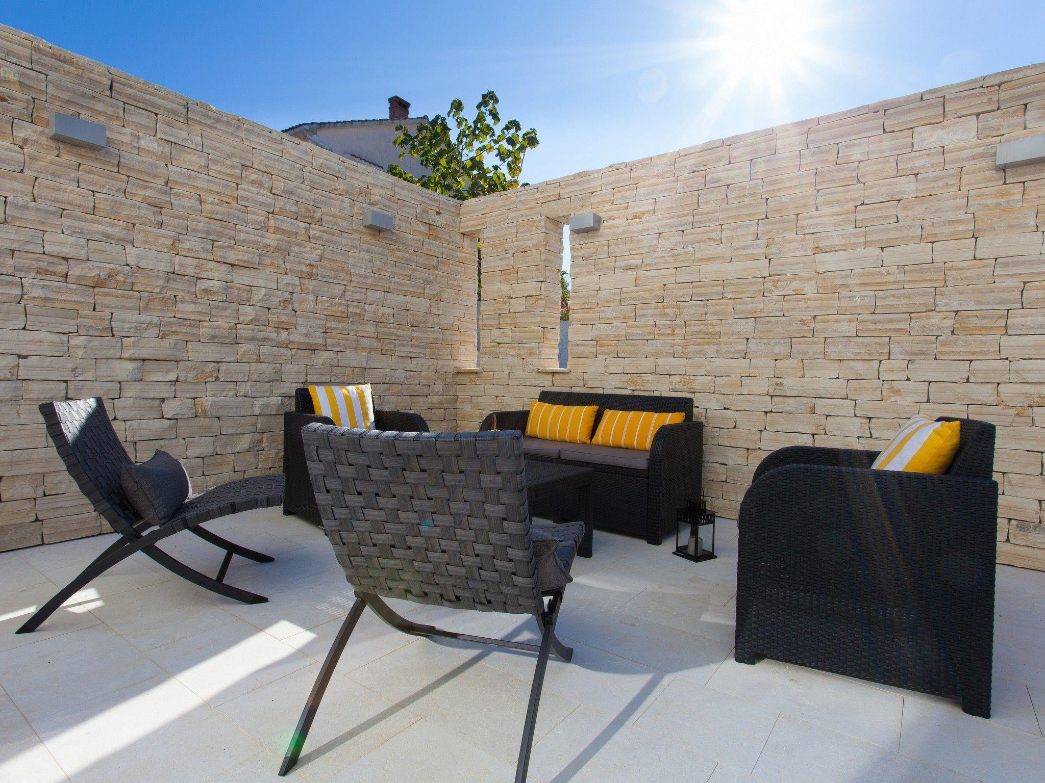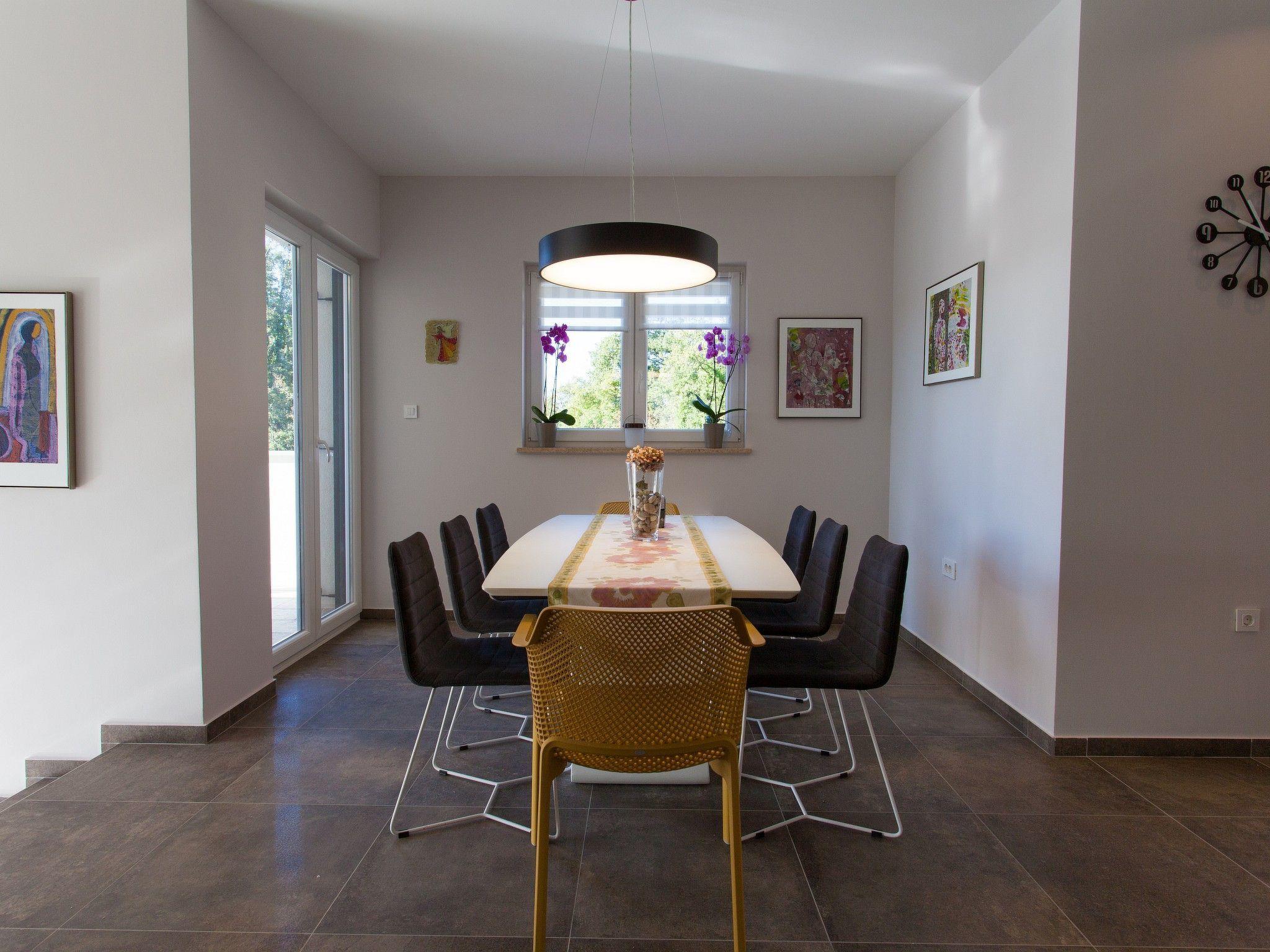 Dieses schön eingerichtete moderne Haus im Grünen befindet sich in Risika, einem kleinen Dorf in der Nähe von Vrbnik, in einer ruhigen Umgebung, ideal für einen erholsamen Urlaub. In einem 1000 m2 großen Hof befindet sich ein geräumiges Haus auf 180 m2 mit Schwimmbad, Laube mit Grill und Versammlungsplatz. Eine große Terrasse ist mit einem gemütlichen Wohnzimmer mit Kamin, Essbereich und voll ausgestatteter Küche verbunden. Im Erdgeschoss gibt es eine zusätzliche Toilette sowie ein Schlafzimmer mit eigenem Bad. Im ersten Stock befindet sich der Schlafbereich mit zwei Doppelschlafzimmern, zwei Bädern mit Duschen und einem Schlafsofa für zwei Kinder. Den Gästen steht ein Parkplatz zur Verfügung. Alle Zimmer sind klimatisiert und die Gäste haben auch WI-FI, TV-SAT, Geschirrspüler und Waschmaschine zur Verfügung. Die Entfernung zum Sandstrand Sveti Marak in Risika beträgt ca. 2000 m. Haustiere sind auf Anfrage und gegen Aufpreis erlaubt.