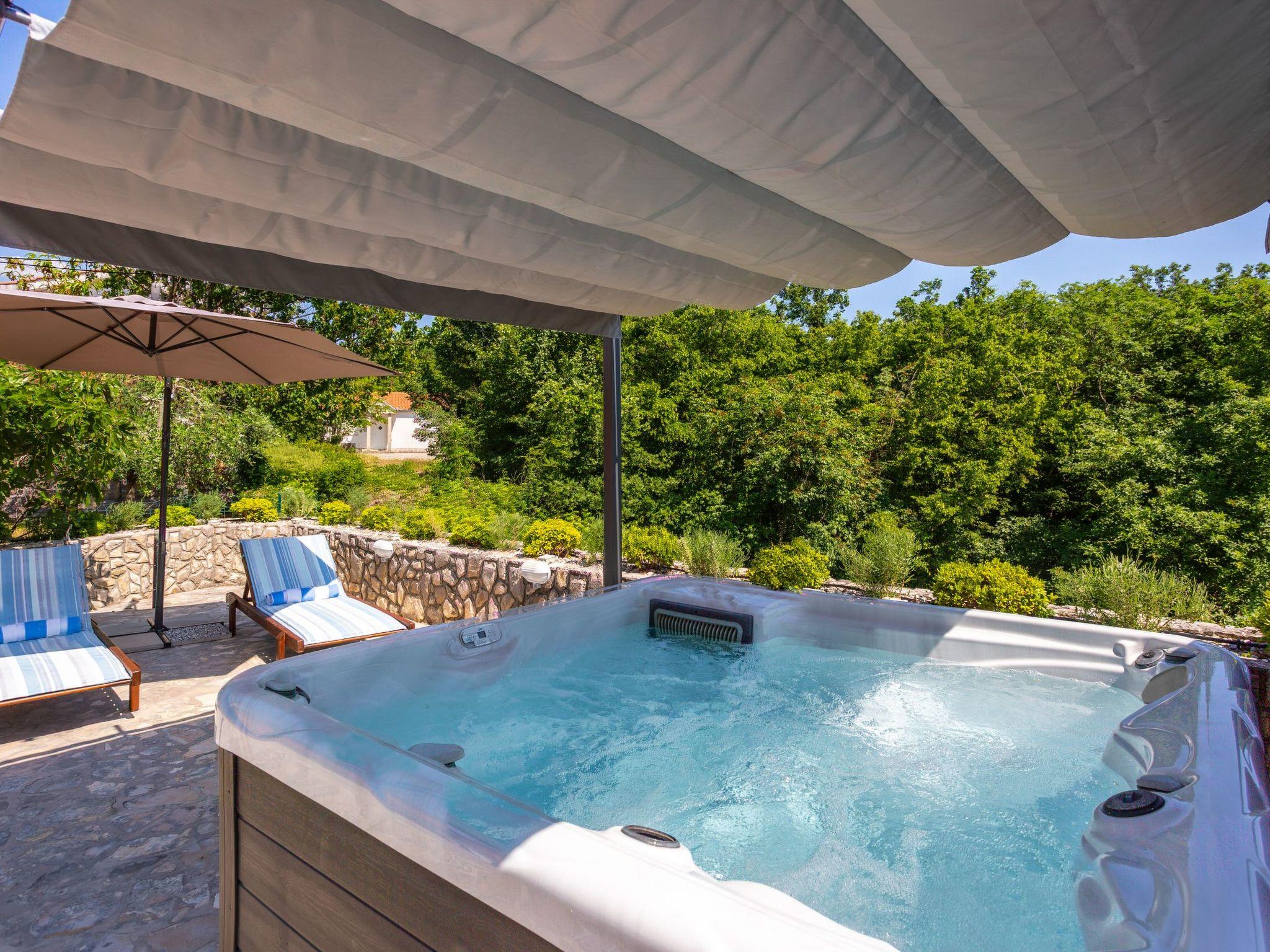 Die charmante, rustikale Villa Oleandra mit beheiztem Pool und Whirlpool befindet sich in Risika auf der Insel Krk, nur 2 km vom beliebten Sandstrand Sv. Marak entfernt. Die Villa wurde als Einzelobjekt bestehend aus zwei miteinander verbundenen Zwei- Etagenhäuser, daher ist es ideal für 2 Familien, die gemeinsam einen Urlaub verbringen und gleichzeitig ihre Privatsphäre genießen möchten. Jedes Haus besteht aus einem Wohnzimmer mit Küche und Esszimmer, zwei Schlafzimmern, Badezimmer und Toilette. Das Haus verfügt außerdem über zwei große Terrasse und eine Taverne als idealer Ort für geselliges Beisammensein an warmen Sommerabenden. Tagsüber können Sie den Pool oder Whirlpool genießen oder einfach im Schatten mit Blick auf den wunderschönen mediterranen Garten entspannen, und für Kinder gibt es auch einen Spielplatz. Das Haus ist klimatisiert, verfügt über WLAN, Satellit TV und Haustiere sind nach vorheriger Ankündigung und gegen Aufpreis willkommen.
