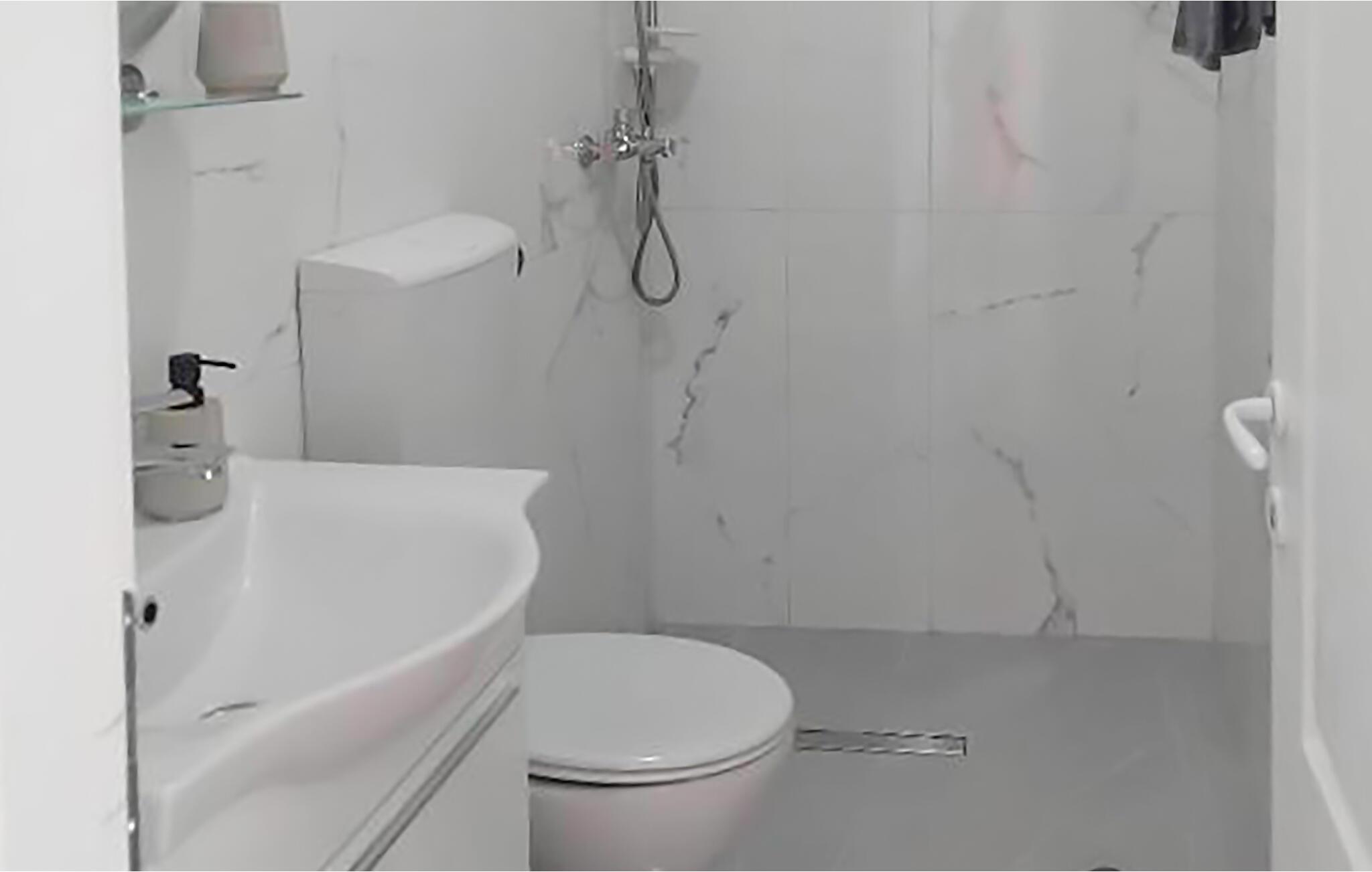 - WC mit warmem und kaltem Wasser, Dusche